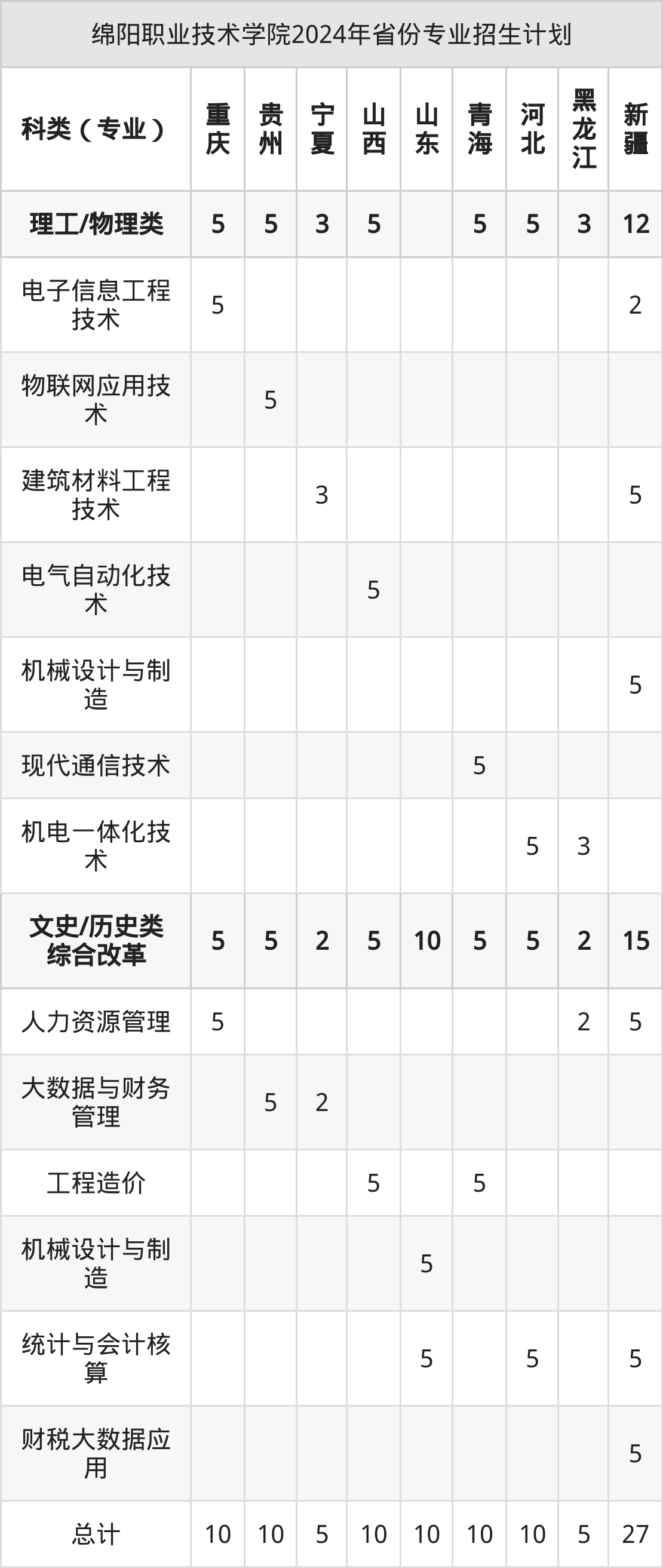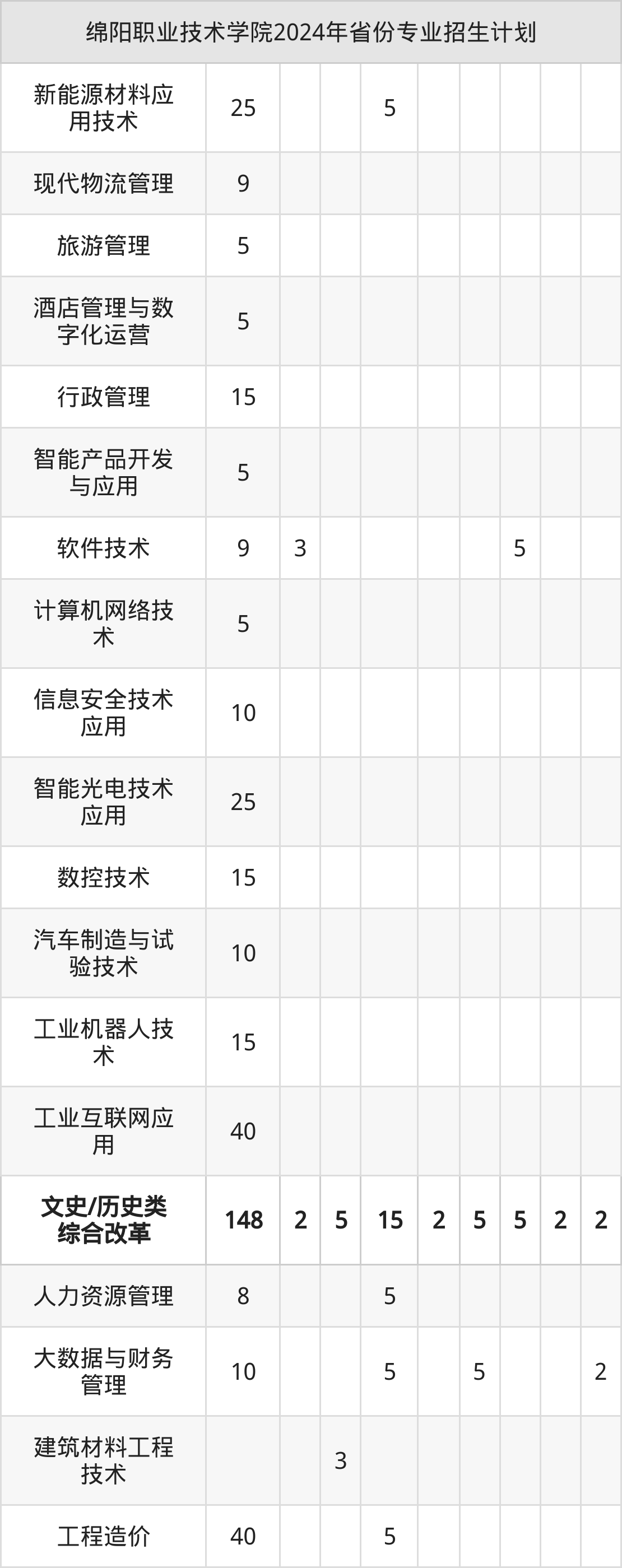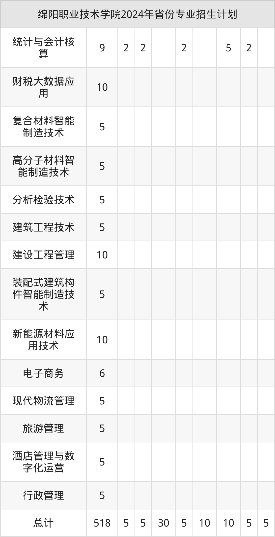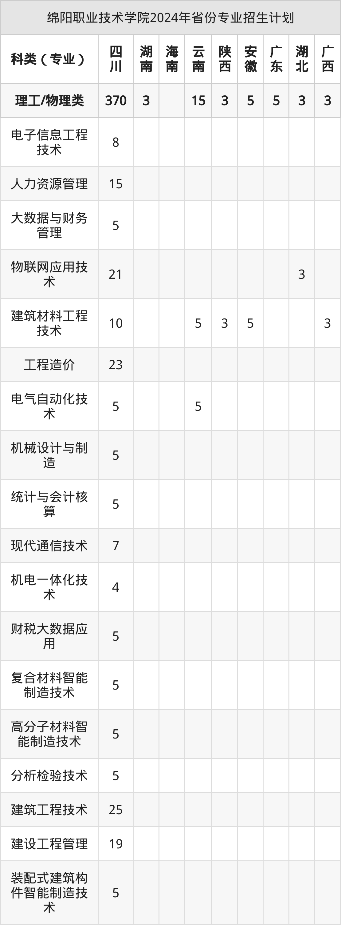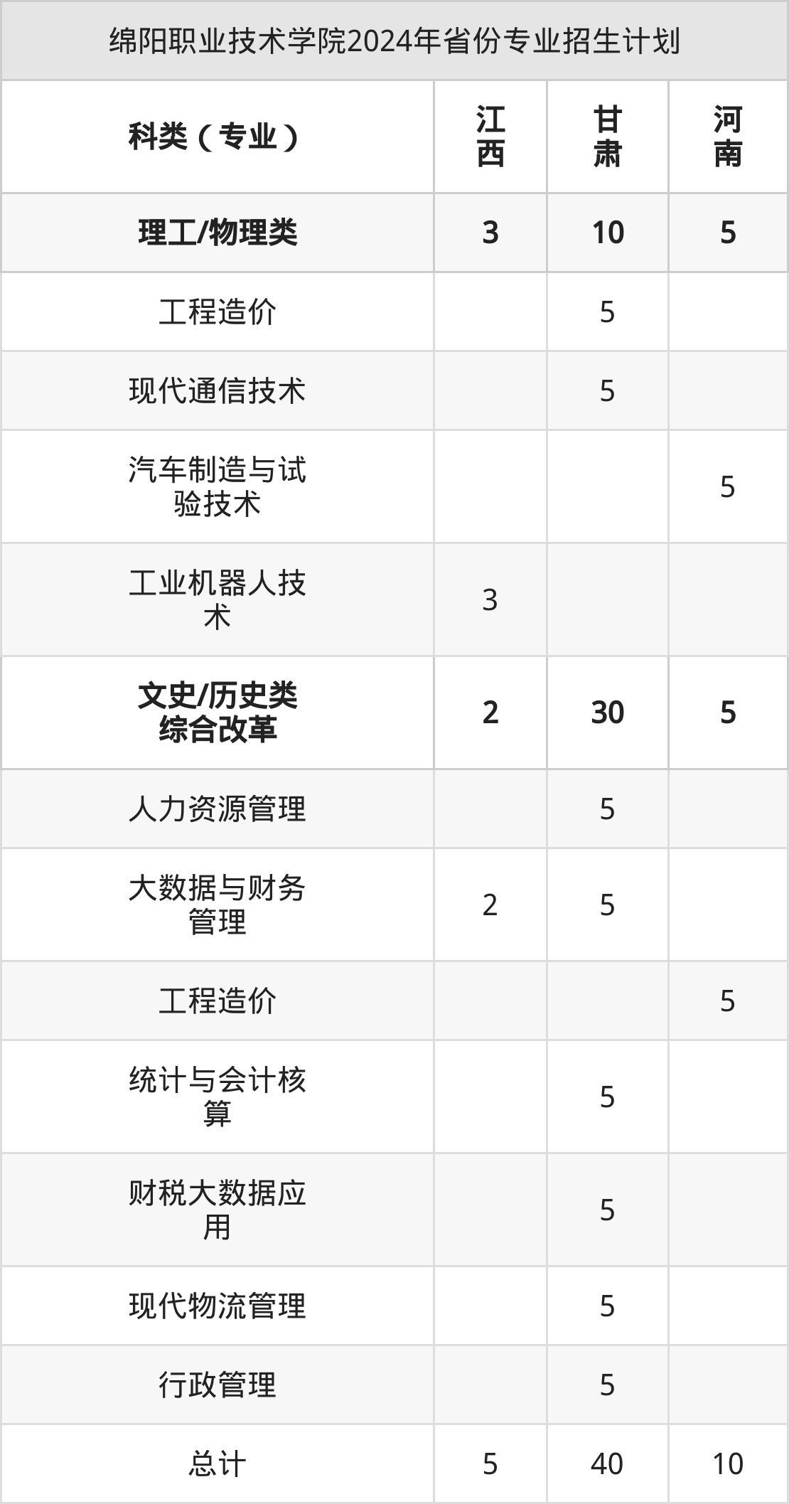 2025年绵阳职业技术学院专科招生计划待公布,下面附上2024年数据,暂供参考: