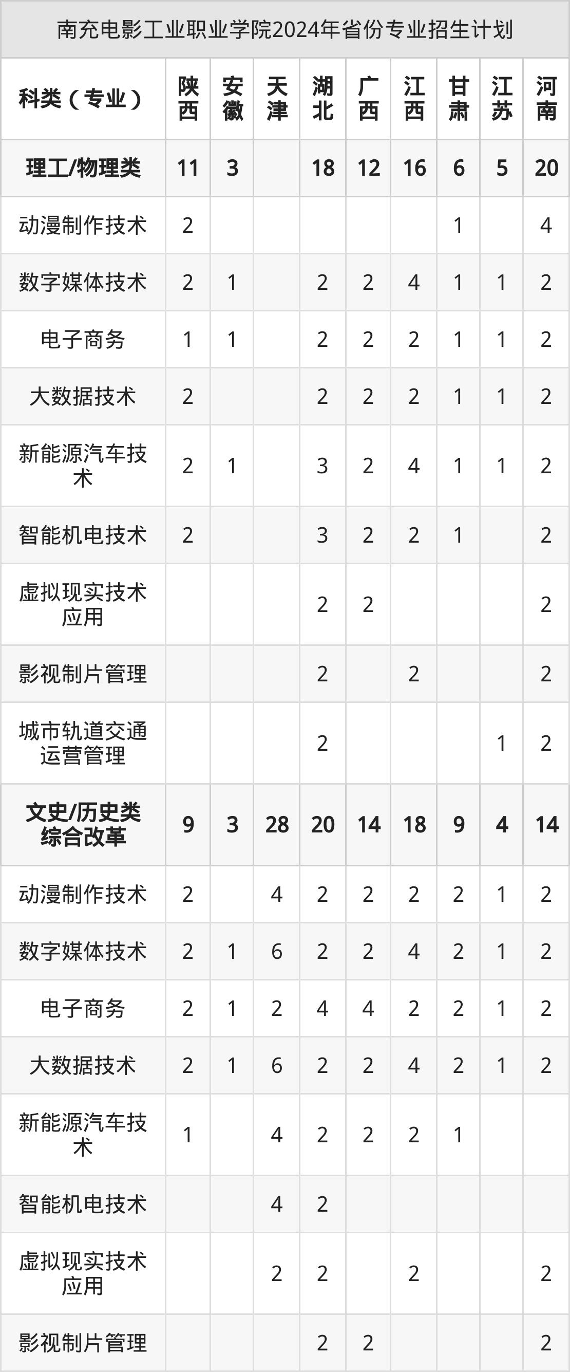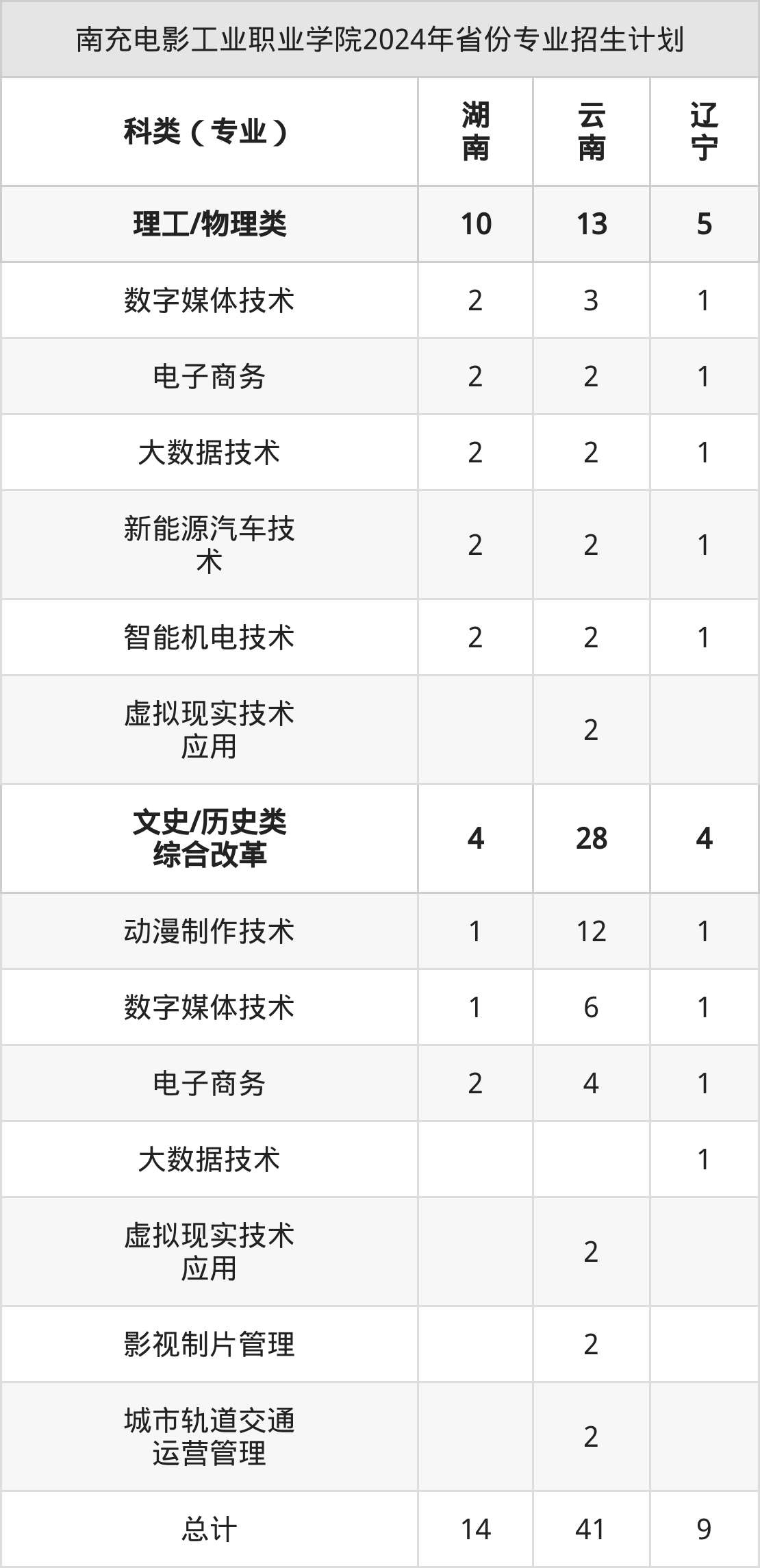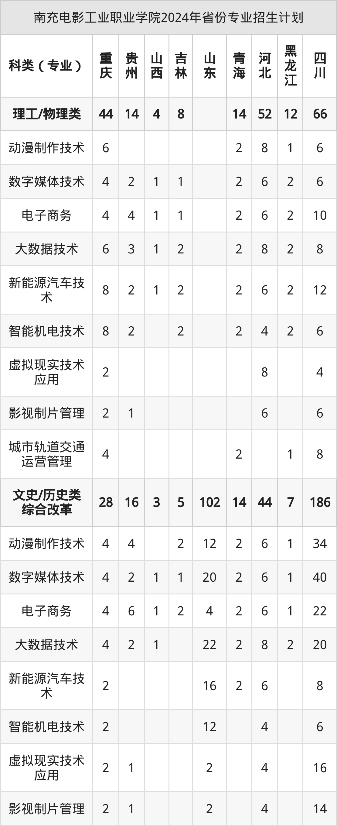 2025年南充电影工业职业学院专科招生计划待公布,下面附上2024年数据,暂供参考: