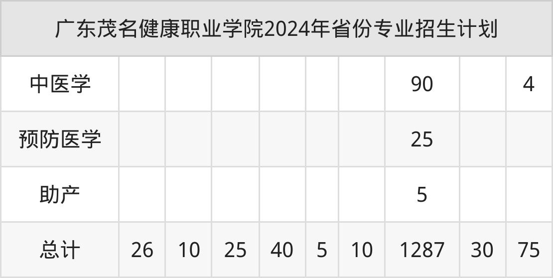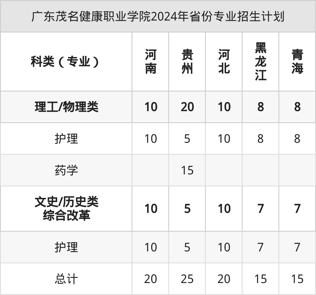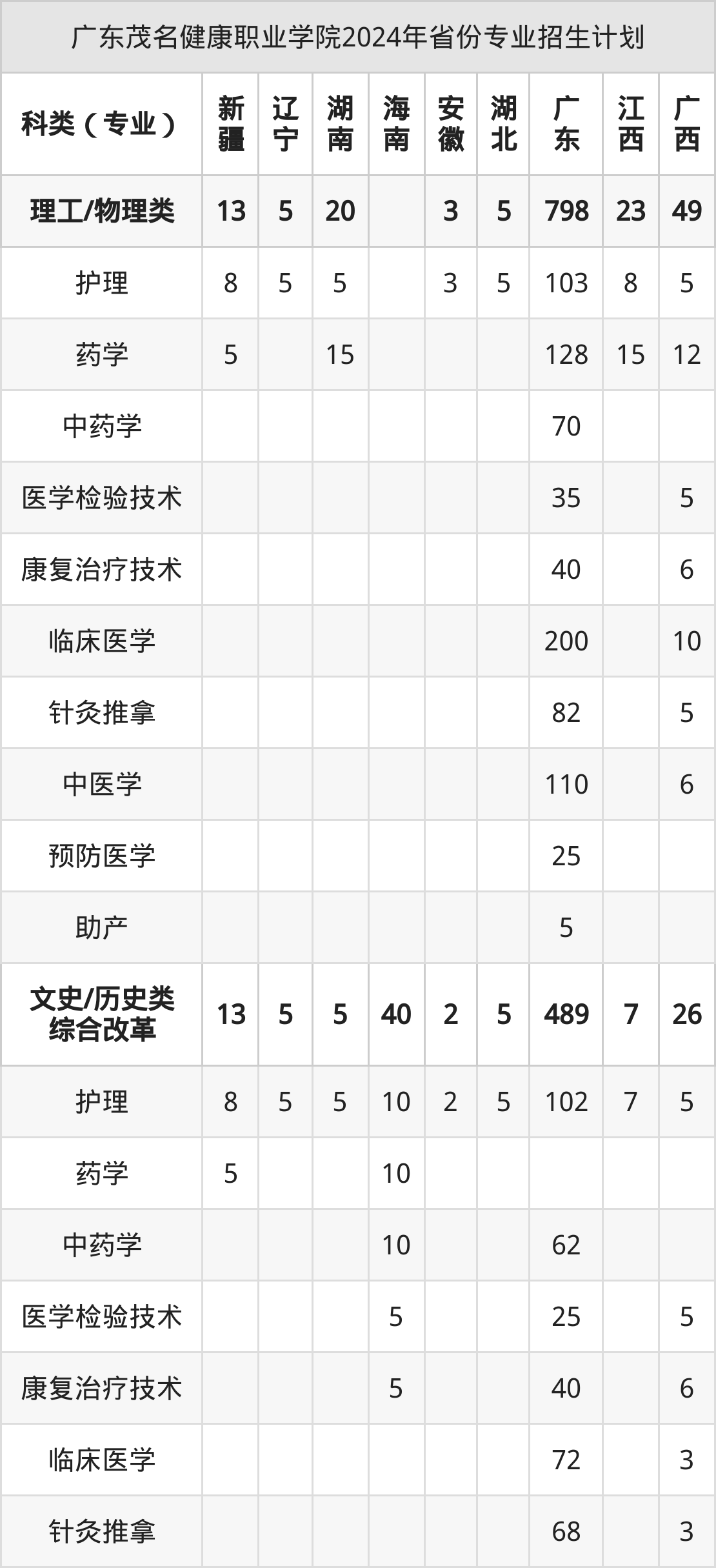2025年广东茂名健康职业学院专科招生计划待公布,下面附上2024年数据,暂供参考: