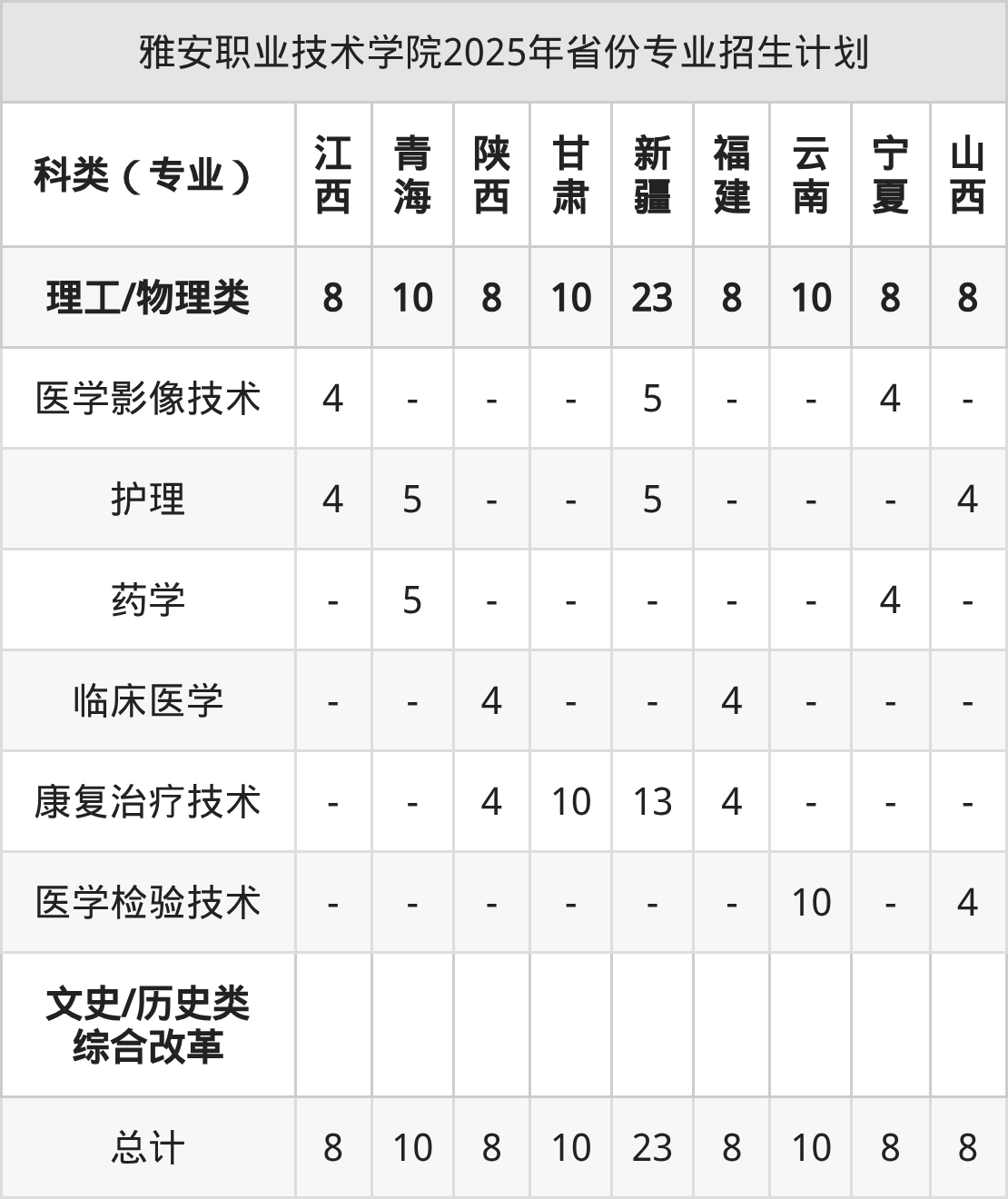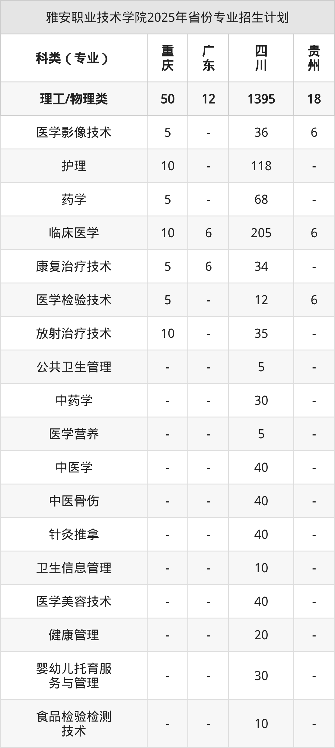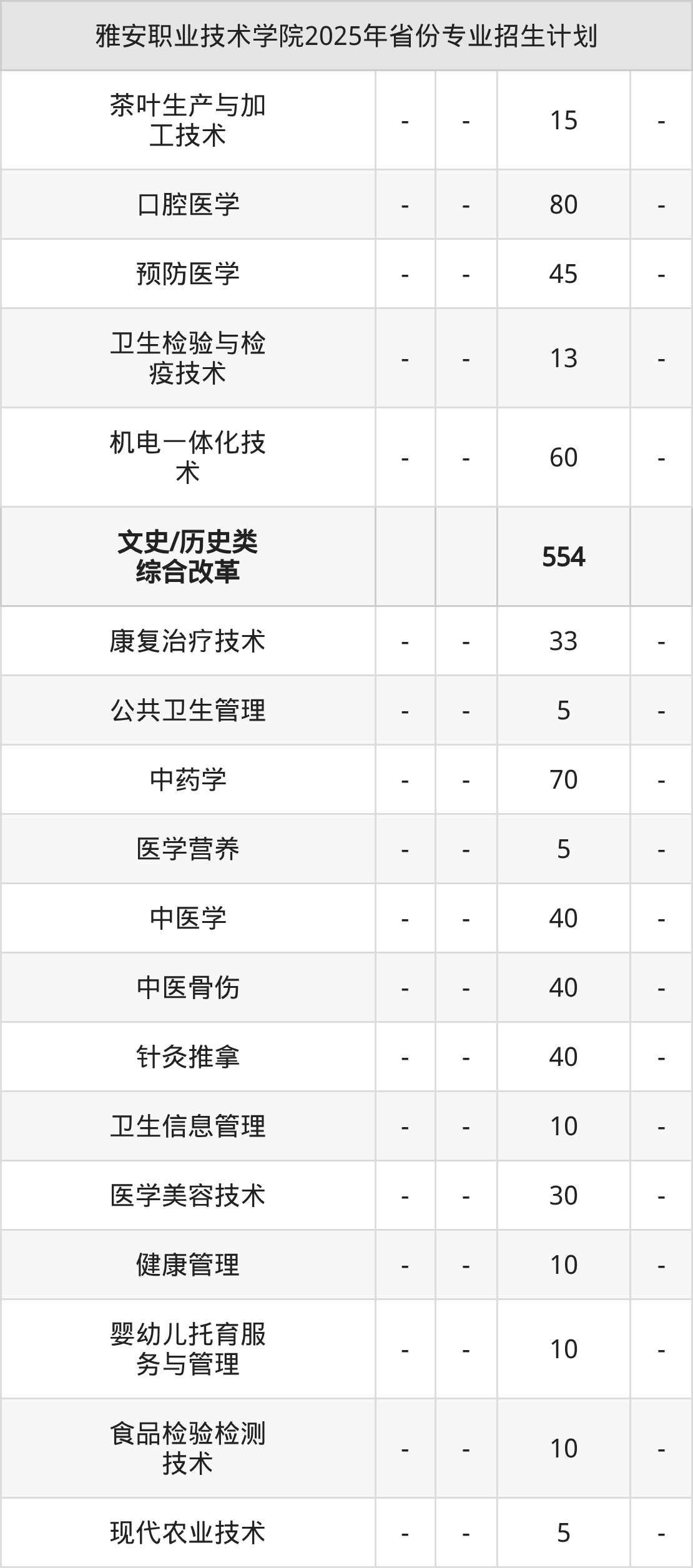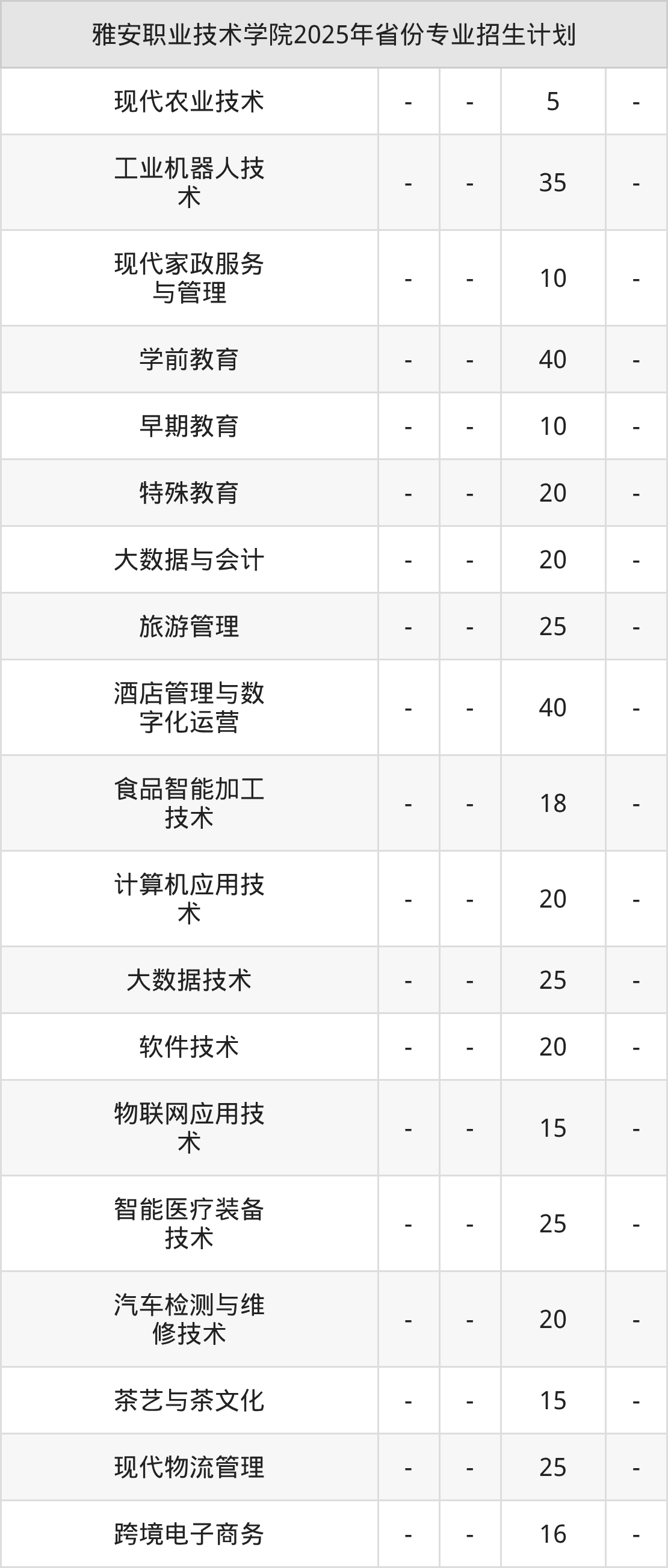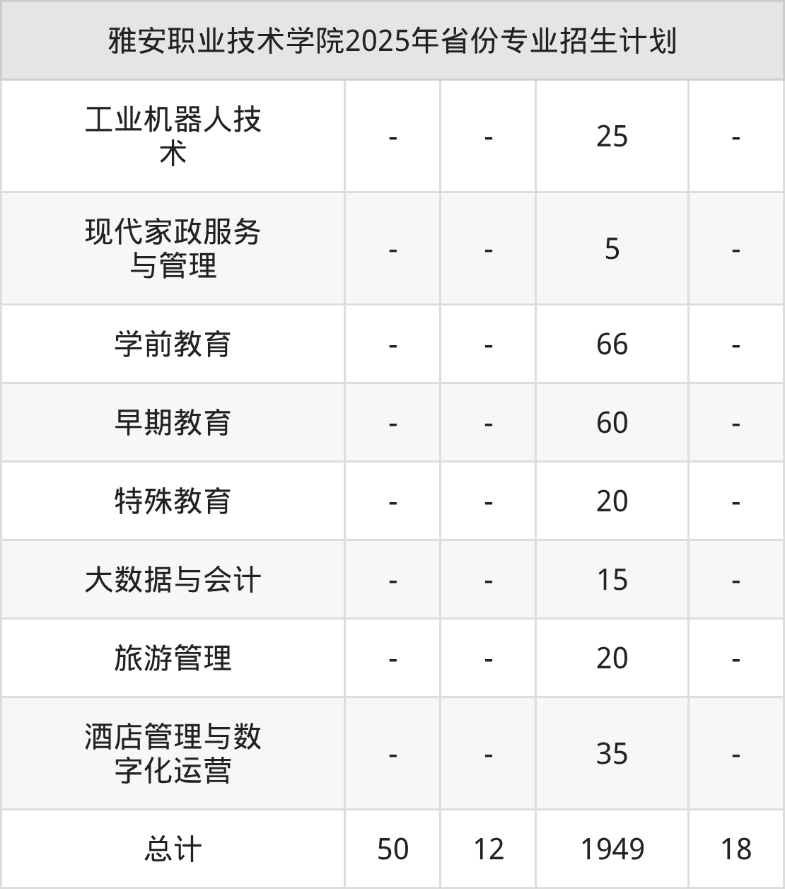 2026年雅安职业技术学院专科招生计划待公布,下面附上2025年数据,暂供参考:
