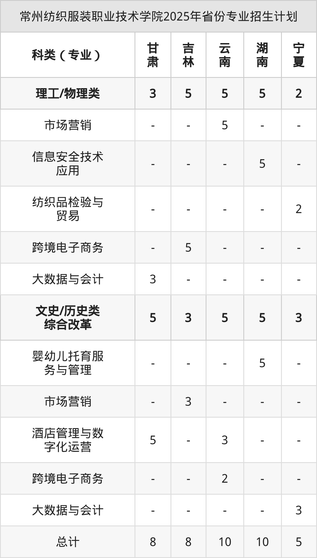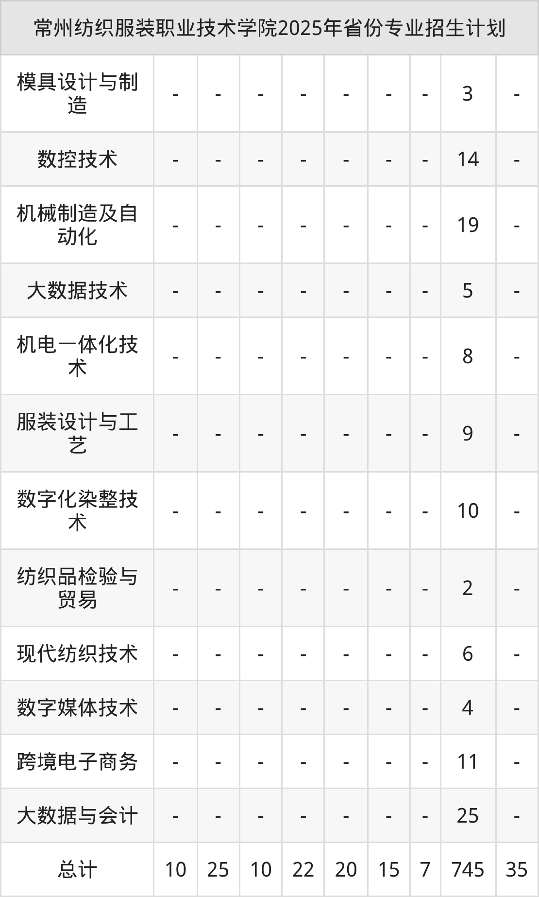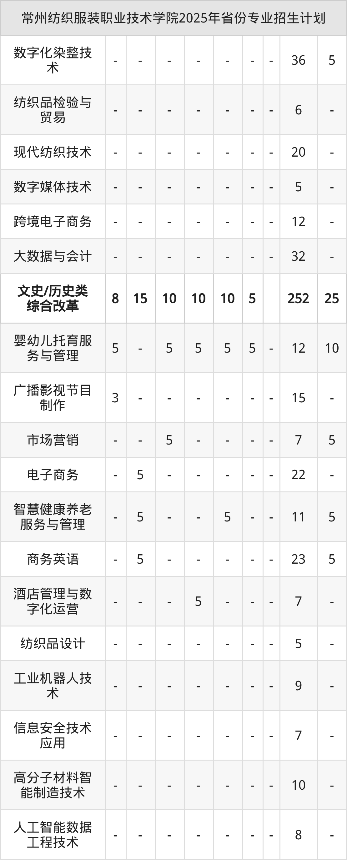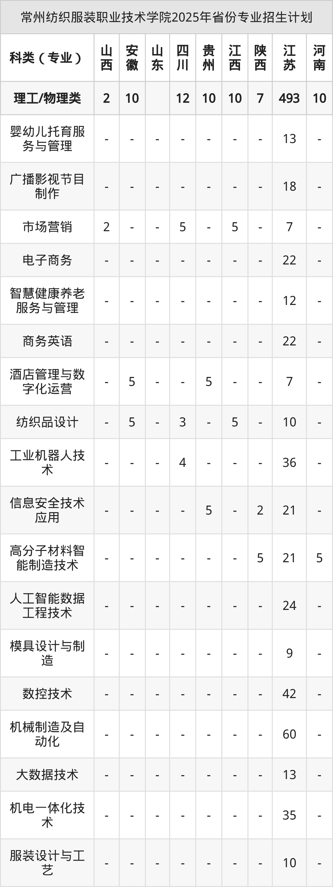 2026年常州纺织服装职业技术学院专科招生计划待公布,下面附上2025年数据,暂供参考: