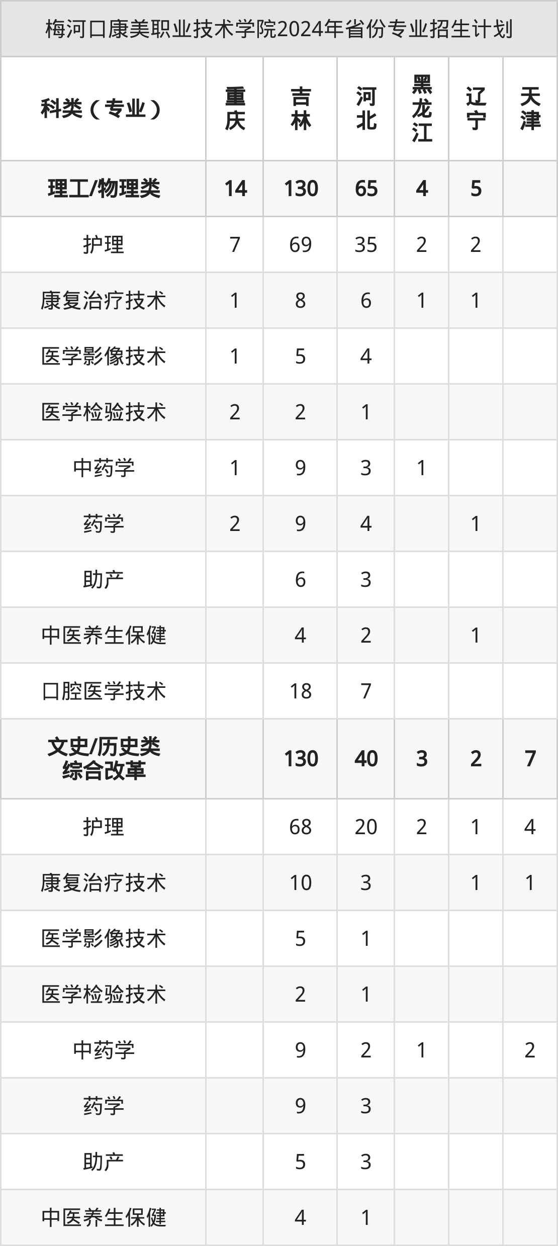 2025年梅河口康美职业技术学院专科招生计划待公布,下面附上2024年数据,暂供参考: