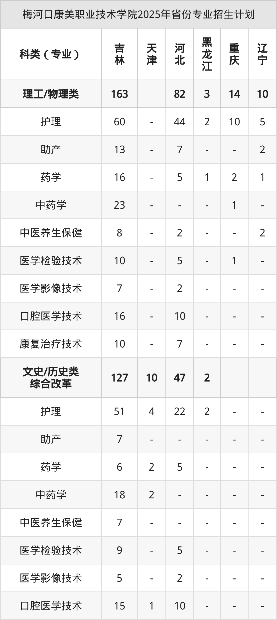 2026年梅河口康美职业技术学院专科招生计划待公布,下面附上2025年数据,暂供参考: