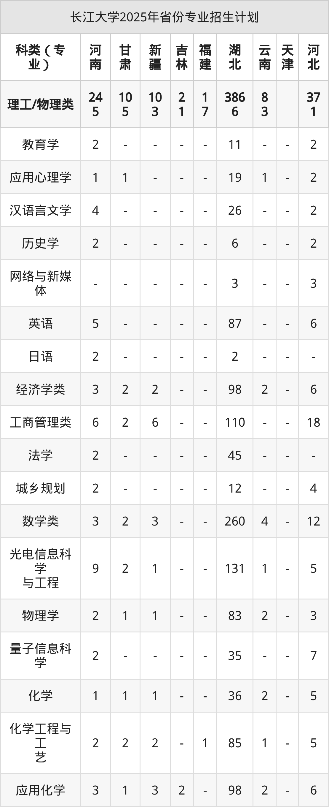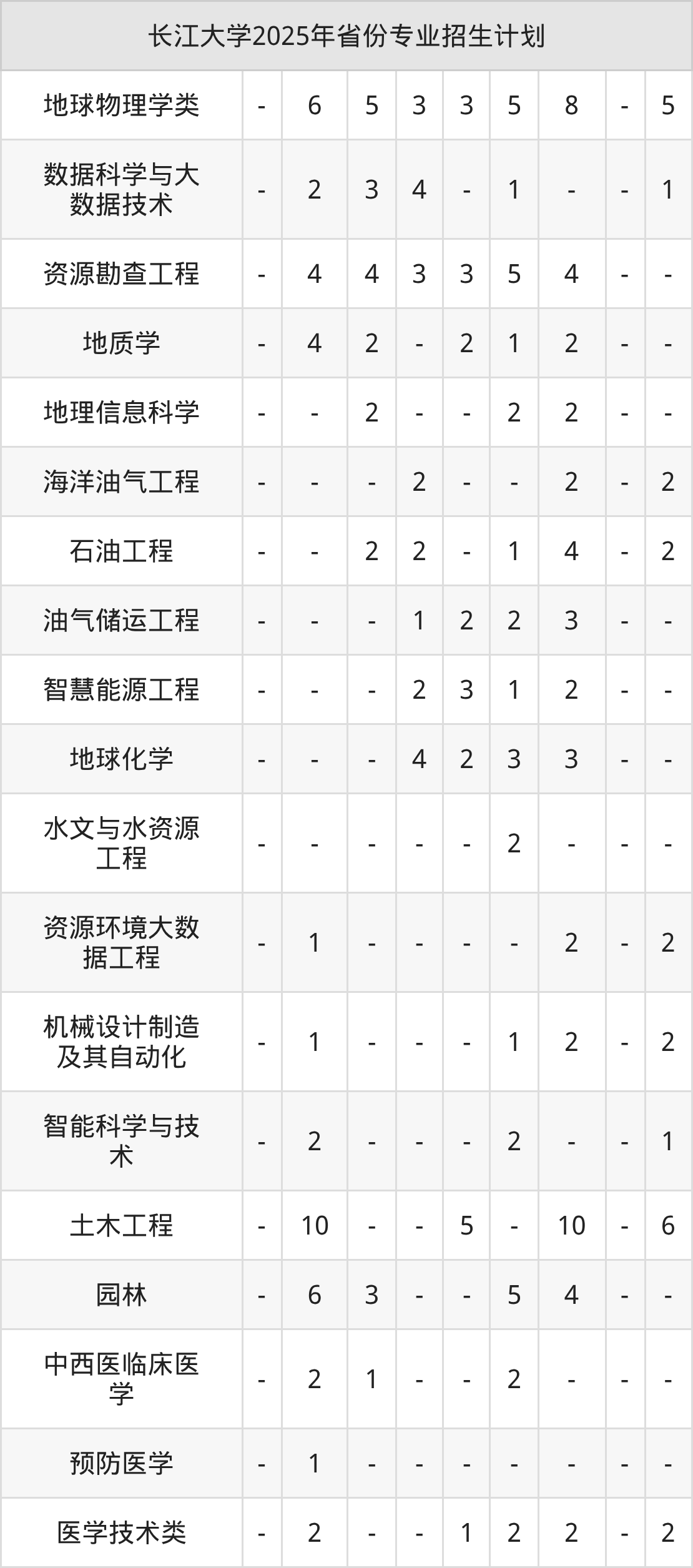 2026年长江大学本科招生计划待公布,下面附上2025年数据,暂供参考: