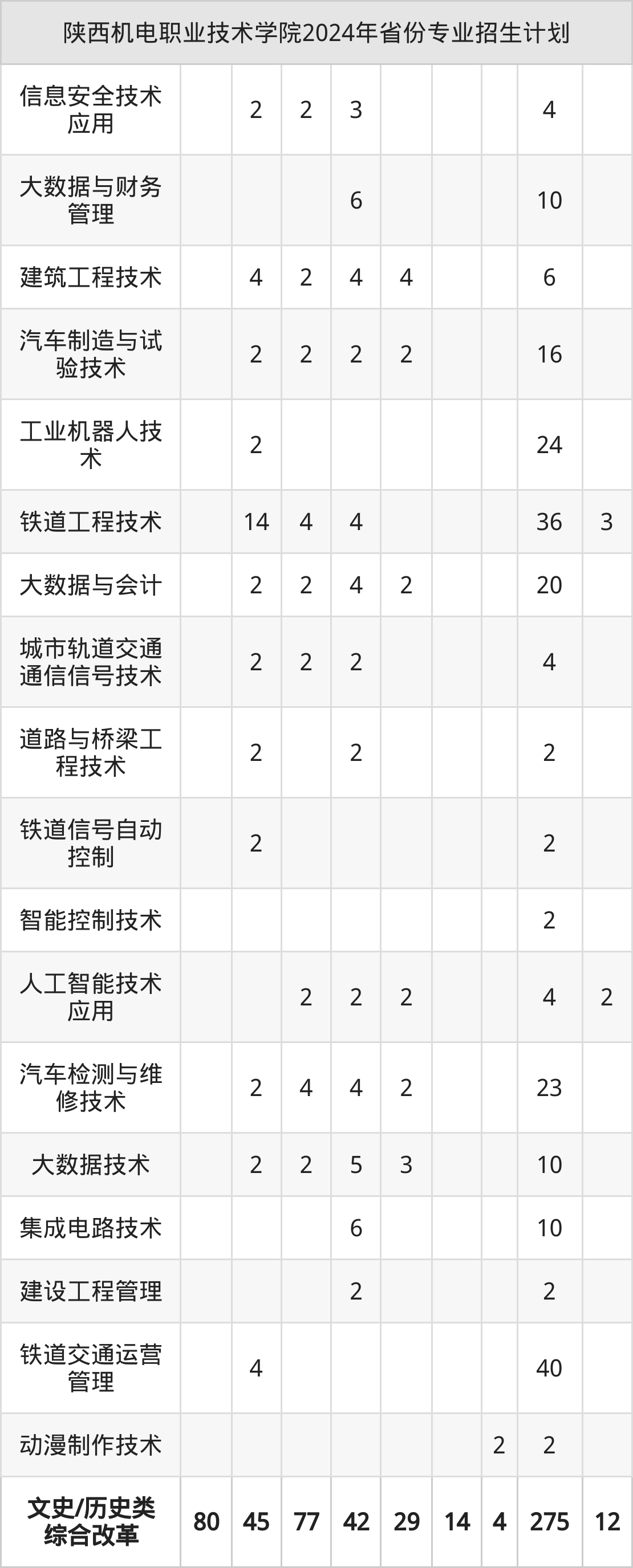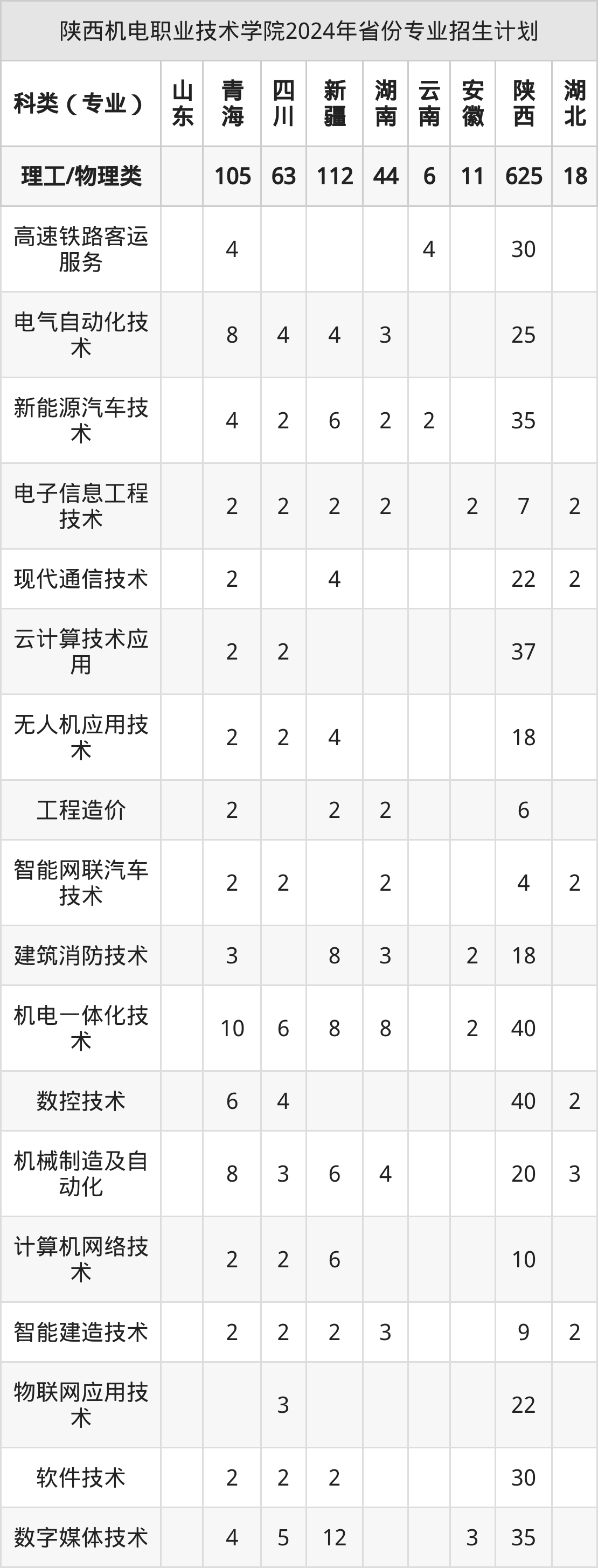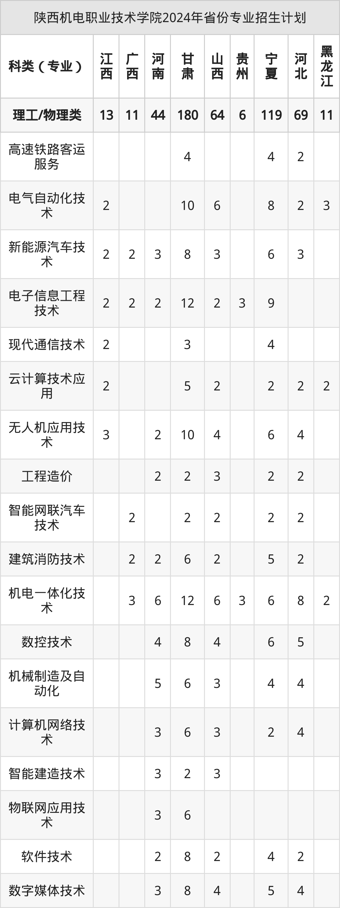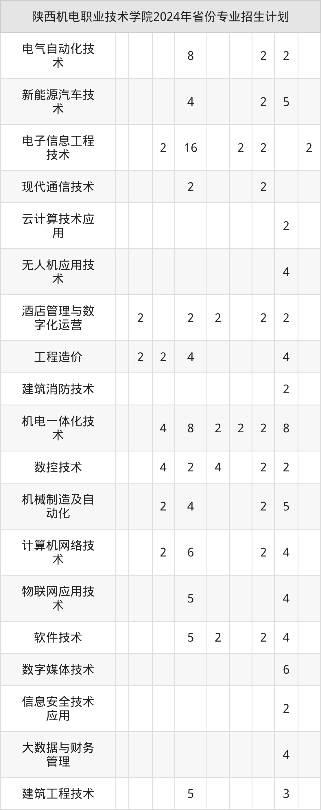 2025年陕西机电职业技术学院专科招生计划待公布,下面附上2024年数据,暂供参考:
