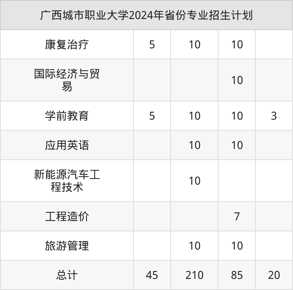 2025年广西城市职业大学本科招生计划待公布,下面附上2024年数据,暂供参考: