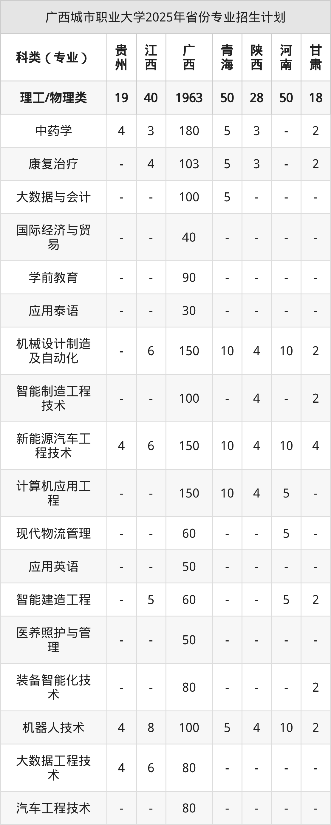 2026年广西城市职业大学本科招生计划待公布,下面附上2025年数据,暂供参考: