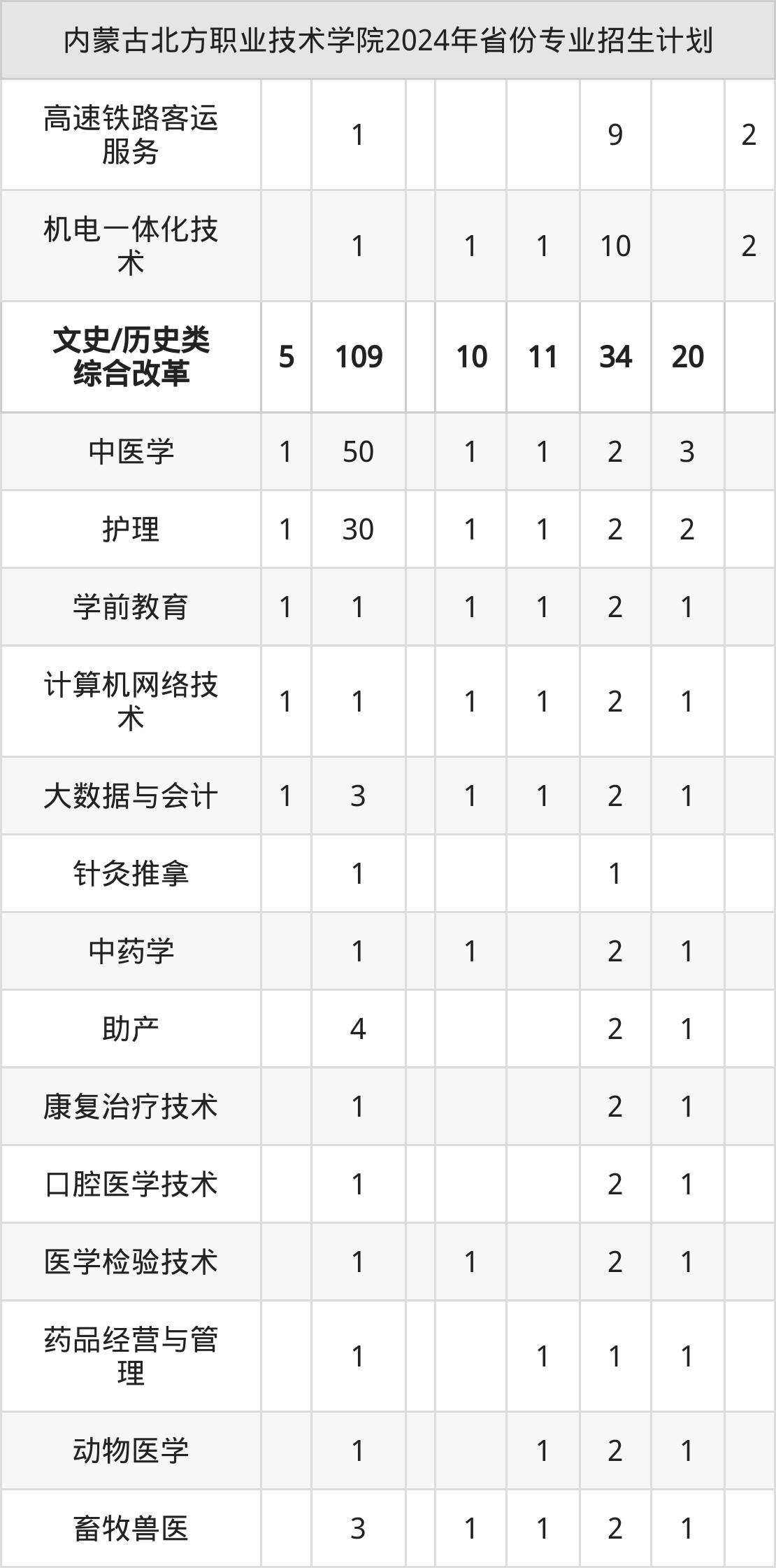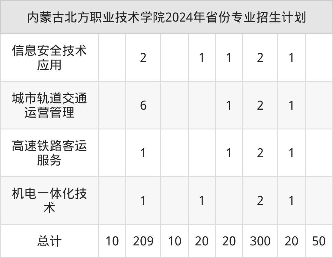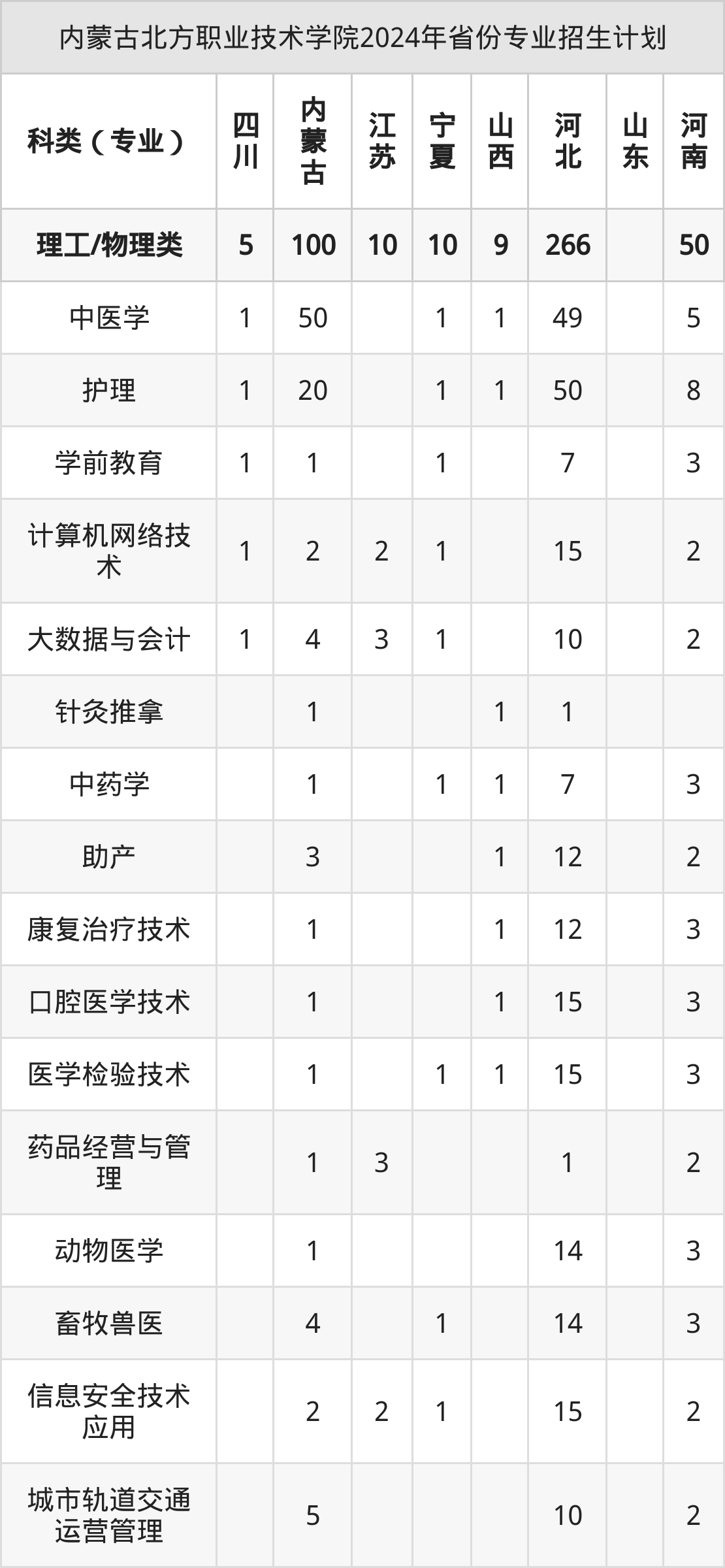 2025年内蒙古北方职业技术学院专科招生计划待公布,下面附上2024年数据,暂供参考: