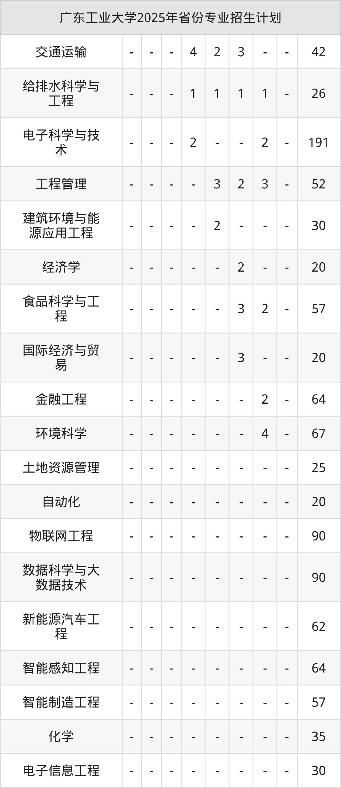 2025年广东工业大学计划招收本科生8361人,其中安全工程专业60人,城乡规划专业57人,环境工程专业92人,环境生态工程专业60人,金融工程专业70人等。