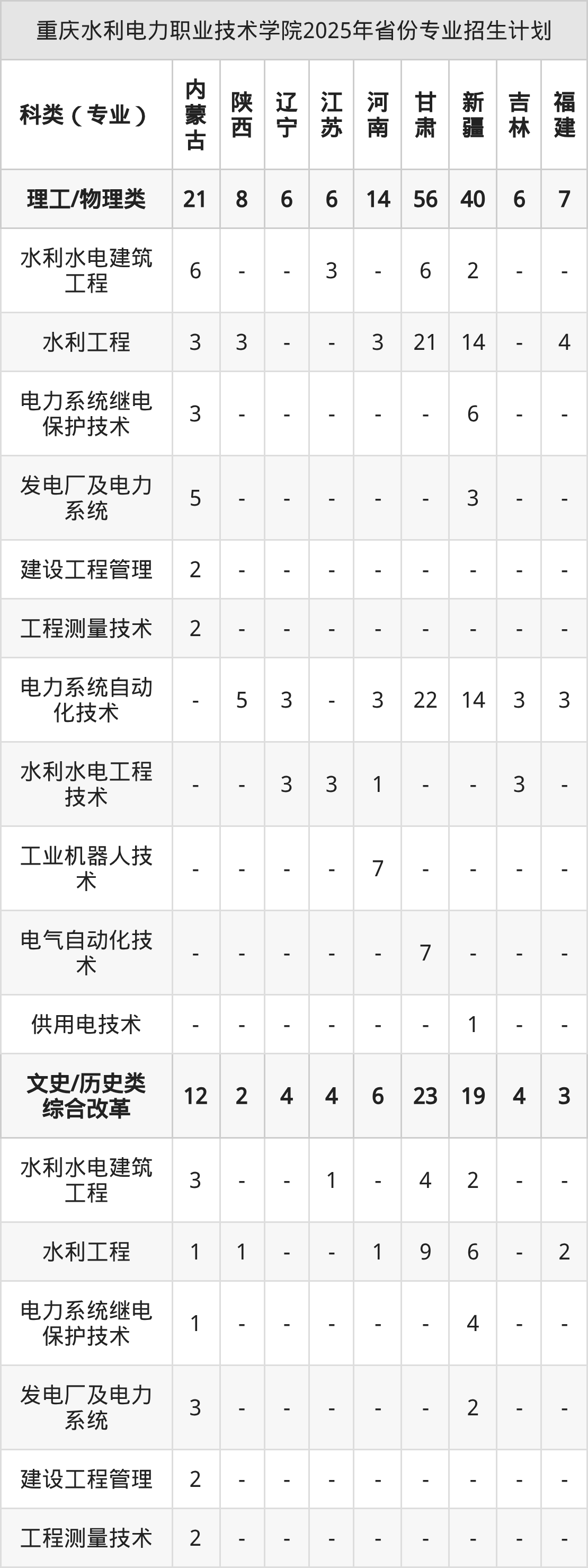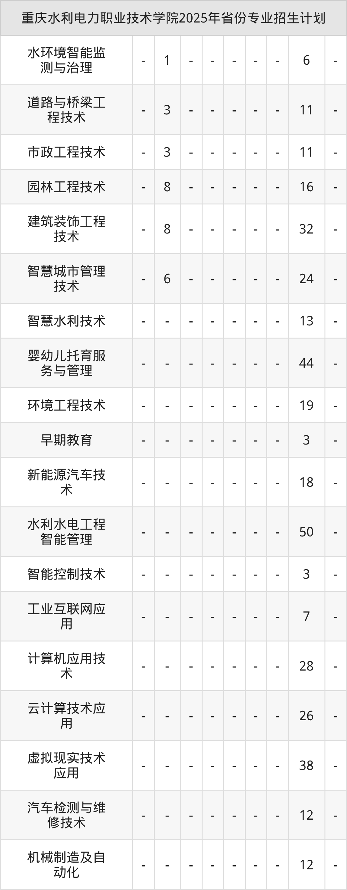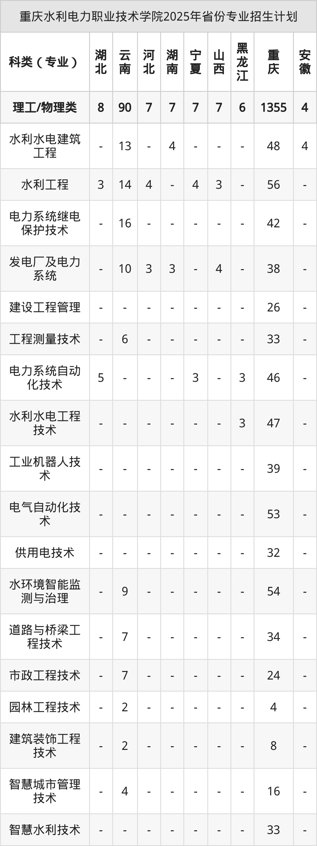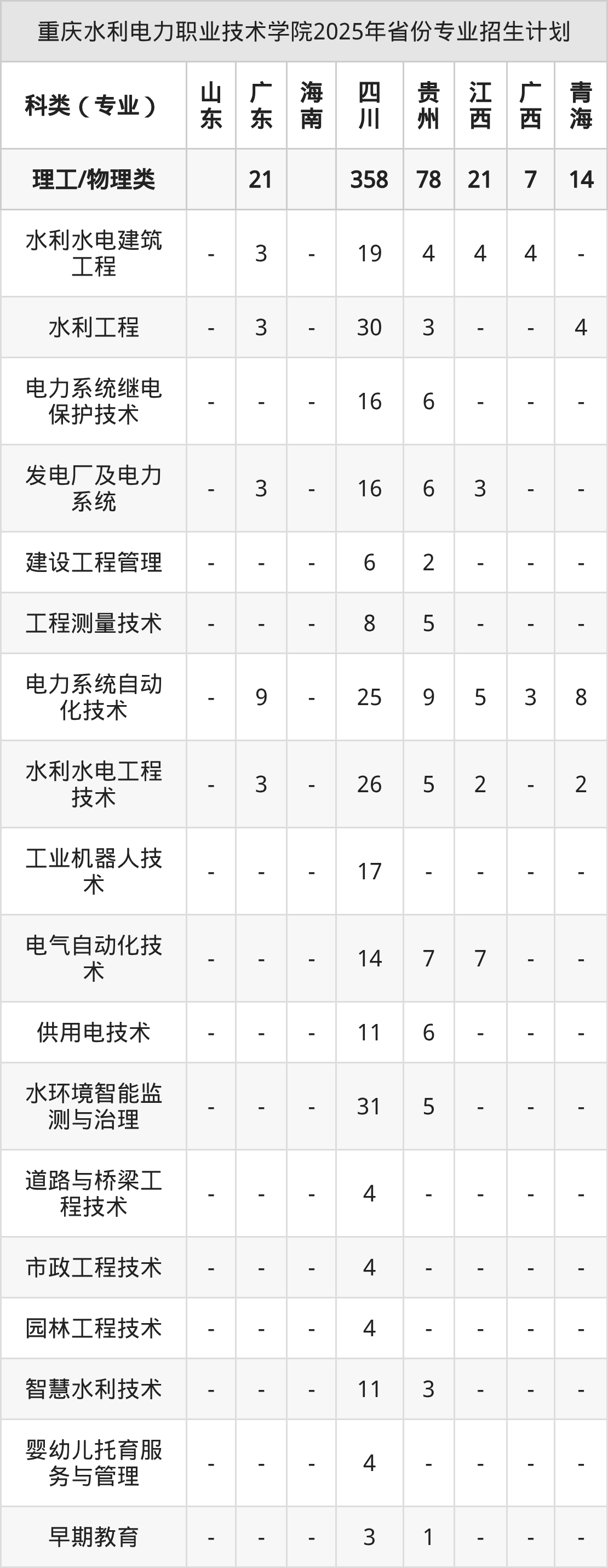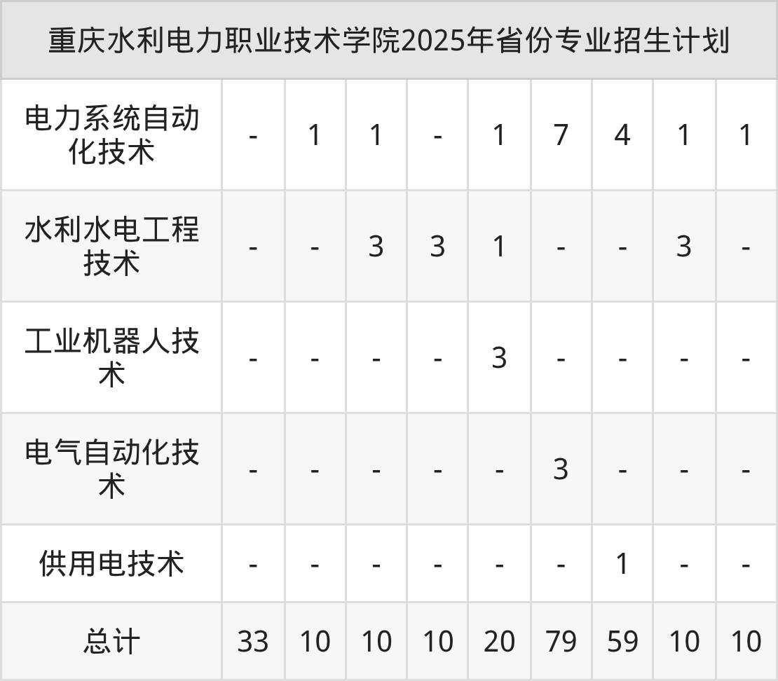 2026年重庆水利电力职业技术学院专科招生计划待公布,下面附上2025年数据,暂供参考: