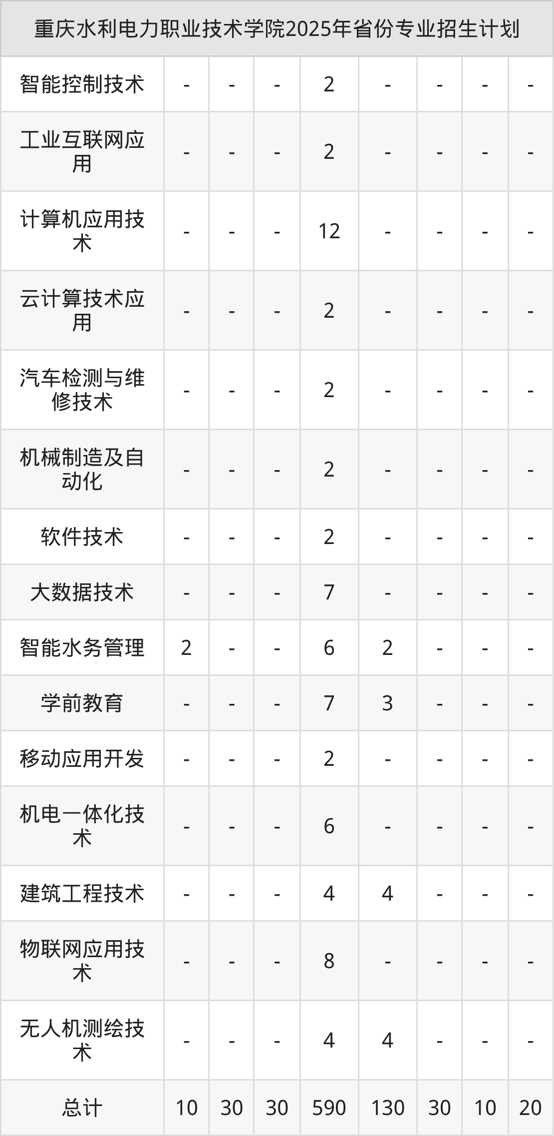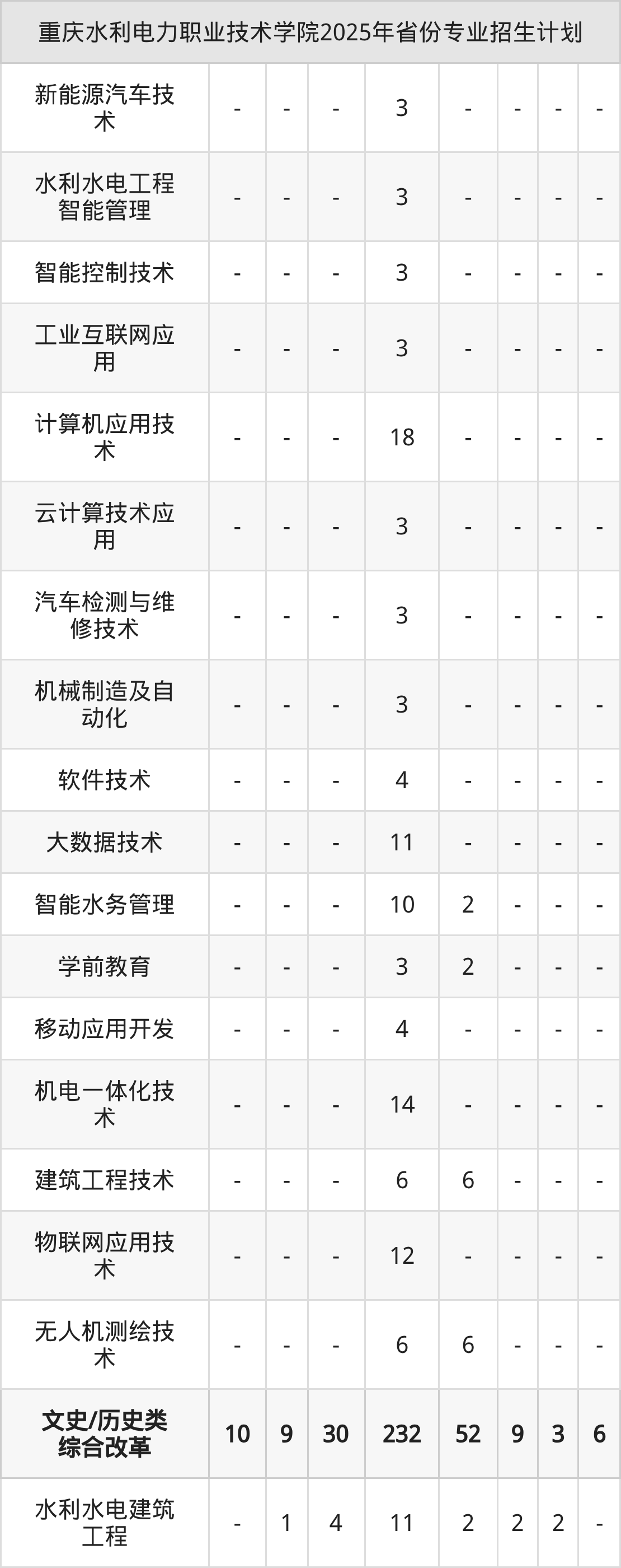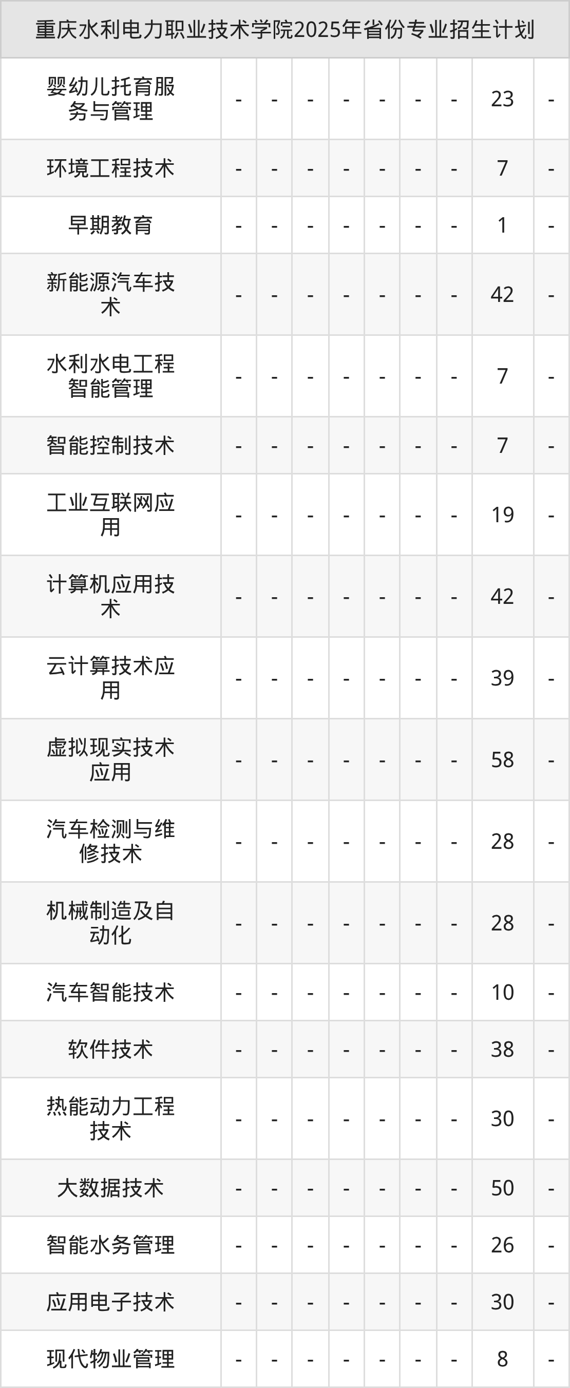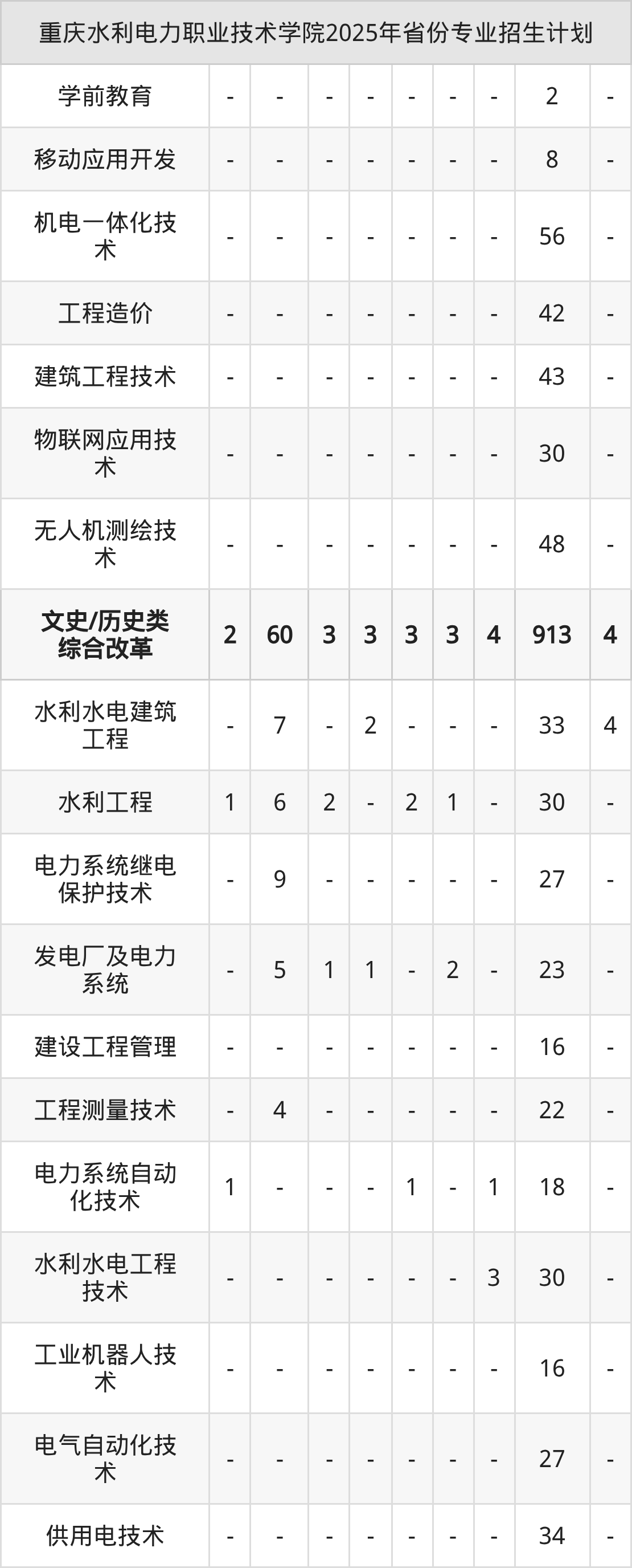 2026年重庆水利电力职业技术学院专科招生计划待公布,下面附上2025年数据,暂供参考: