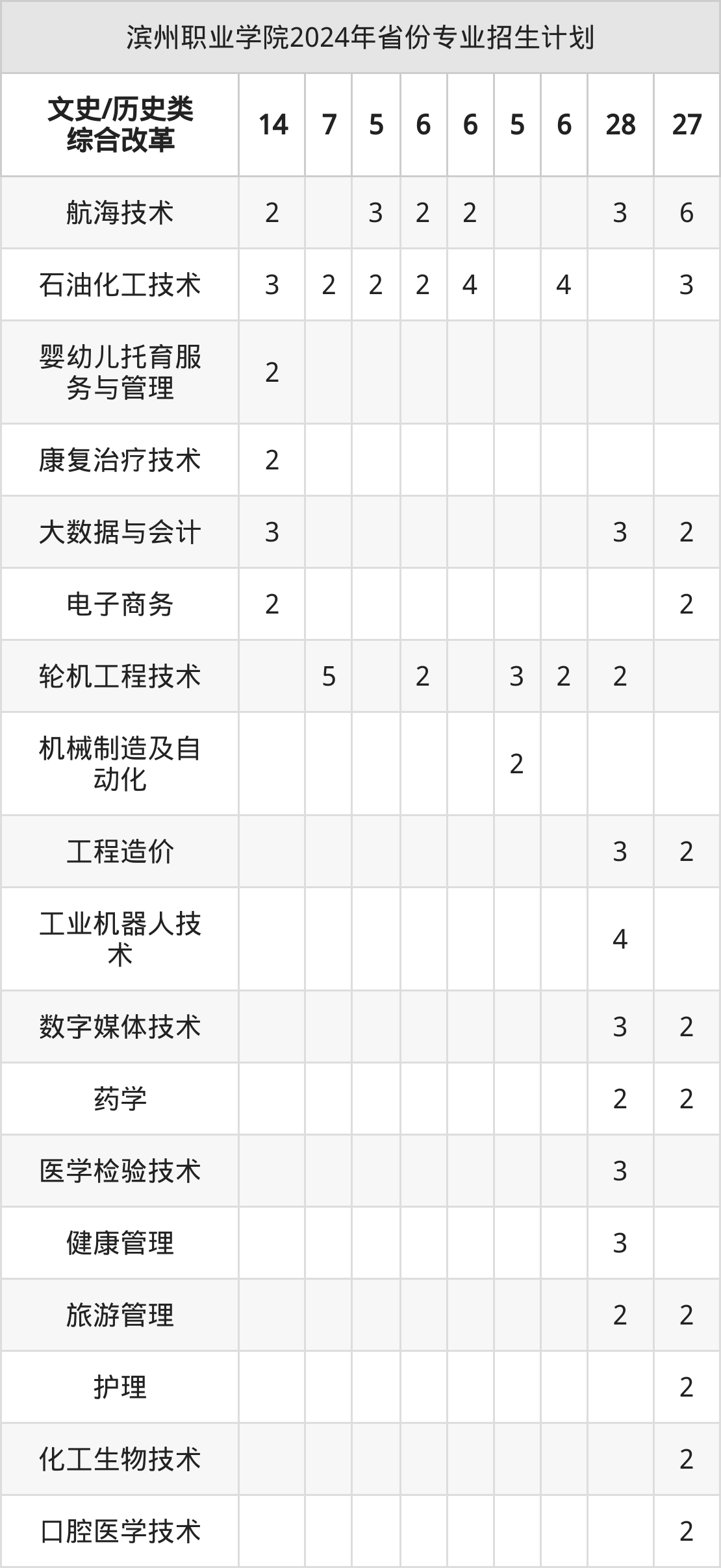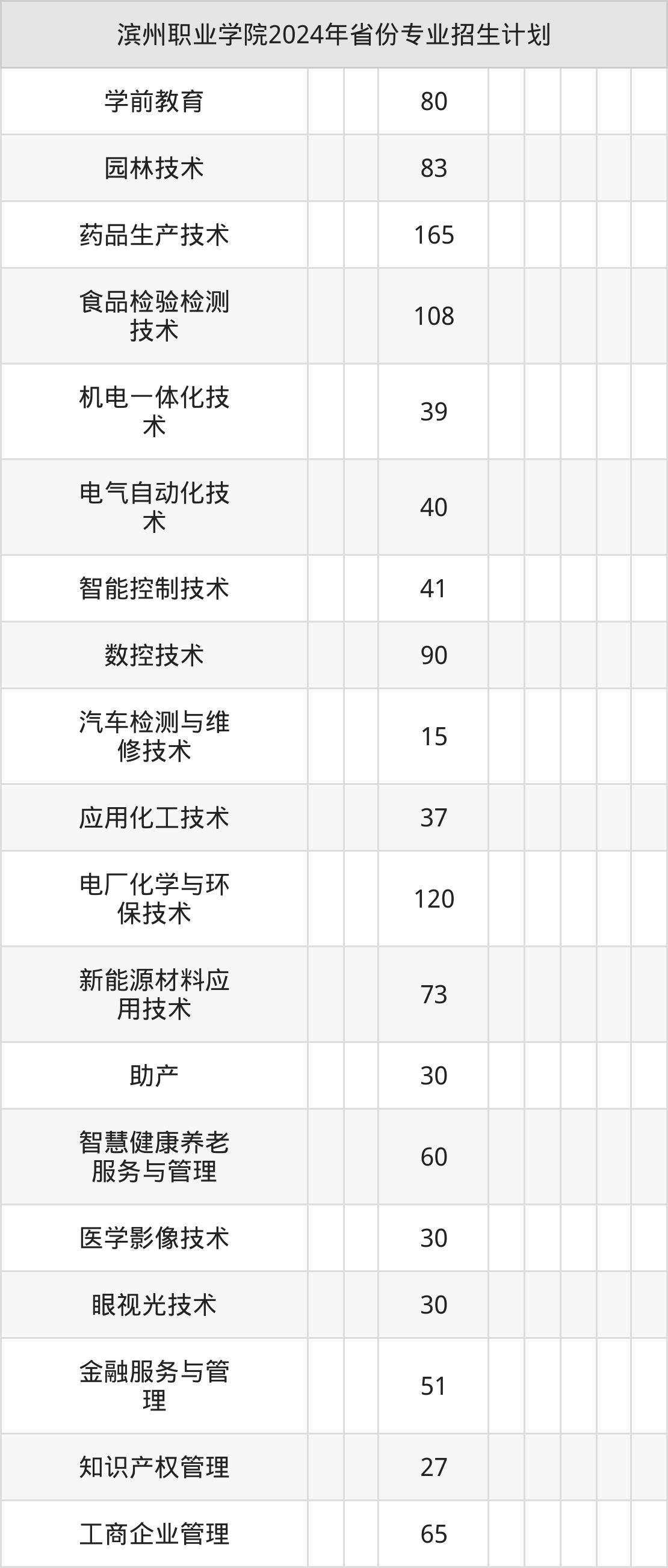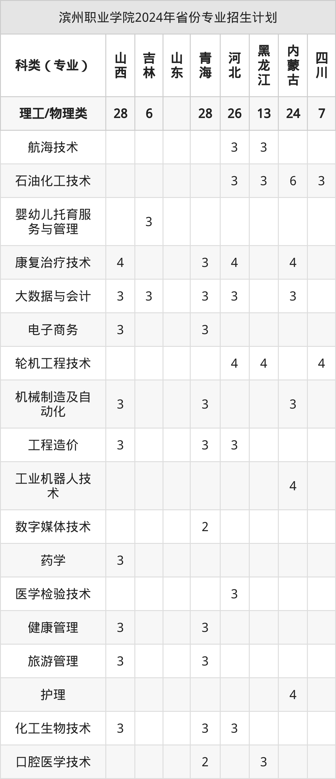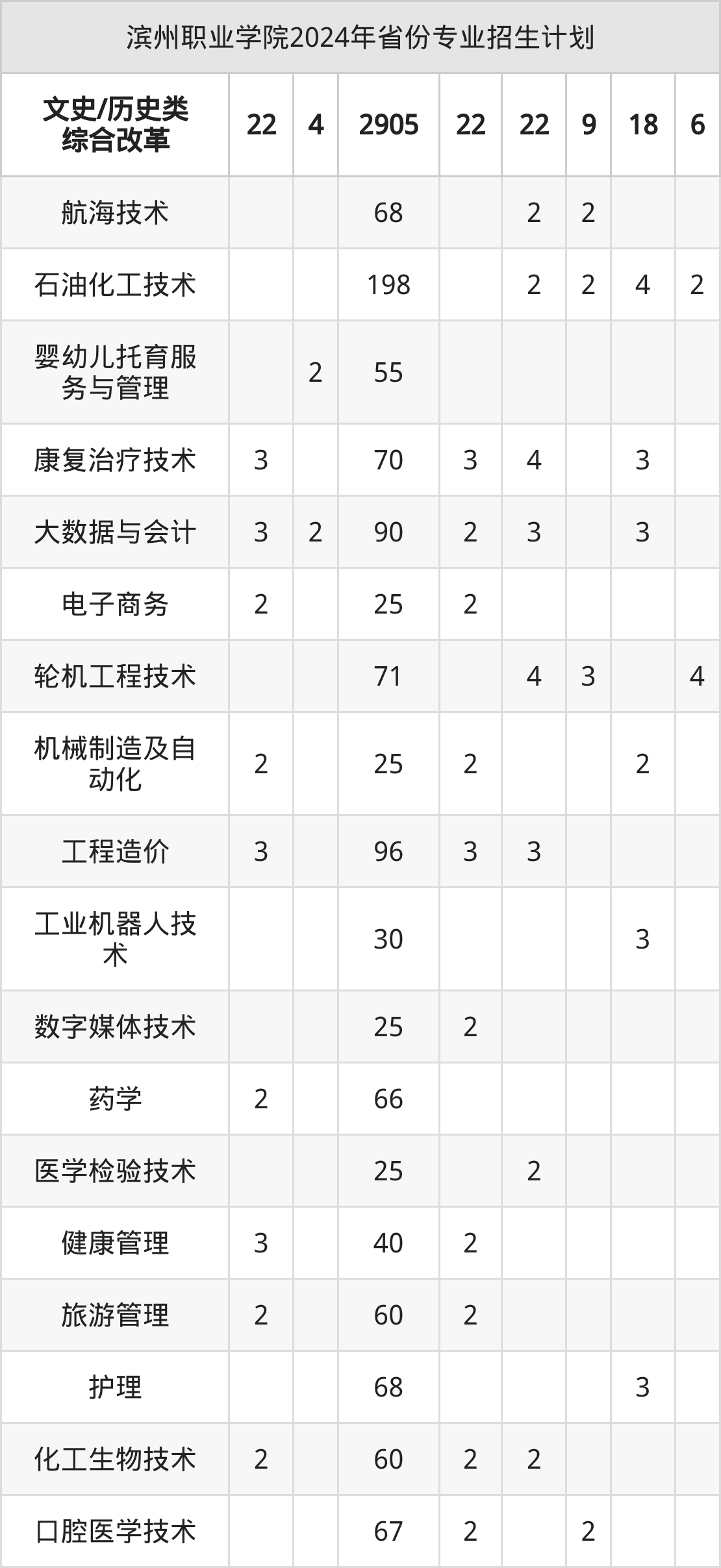 2025年滨州职业学院专科招生计划待公布,下面附上2024年数据,暂供参考: