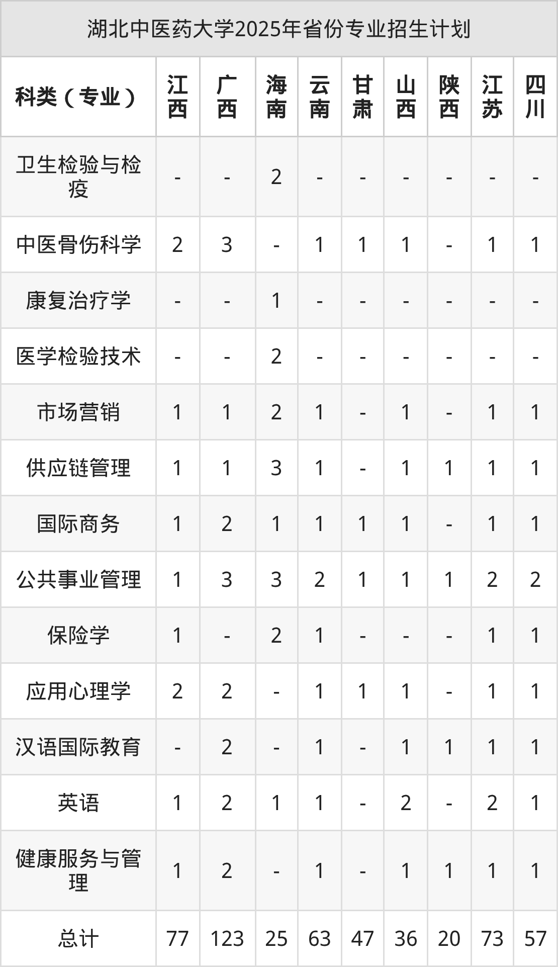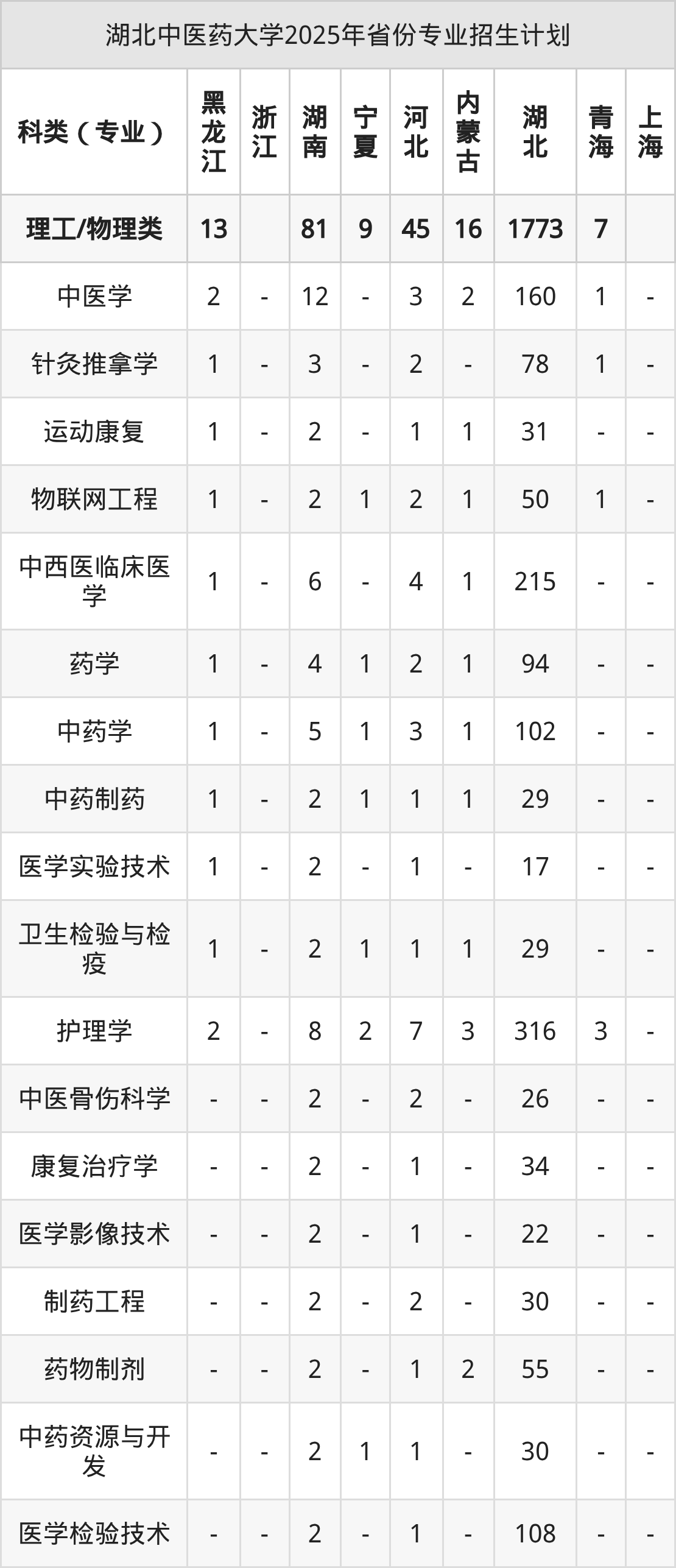 2026年湖北中医药大学本科招生计划待公布,下面附上2025年数据,暂供参考:
