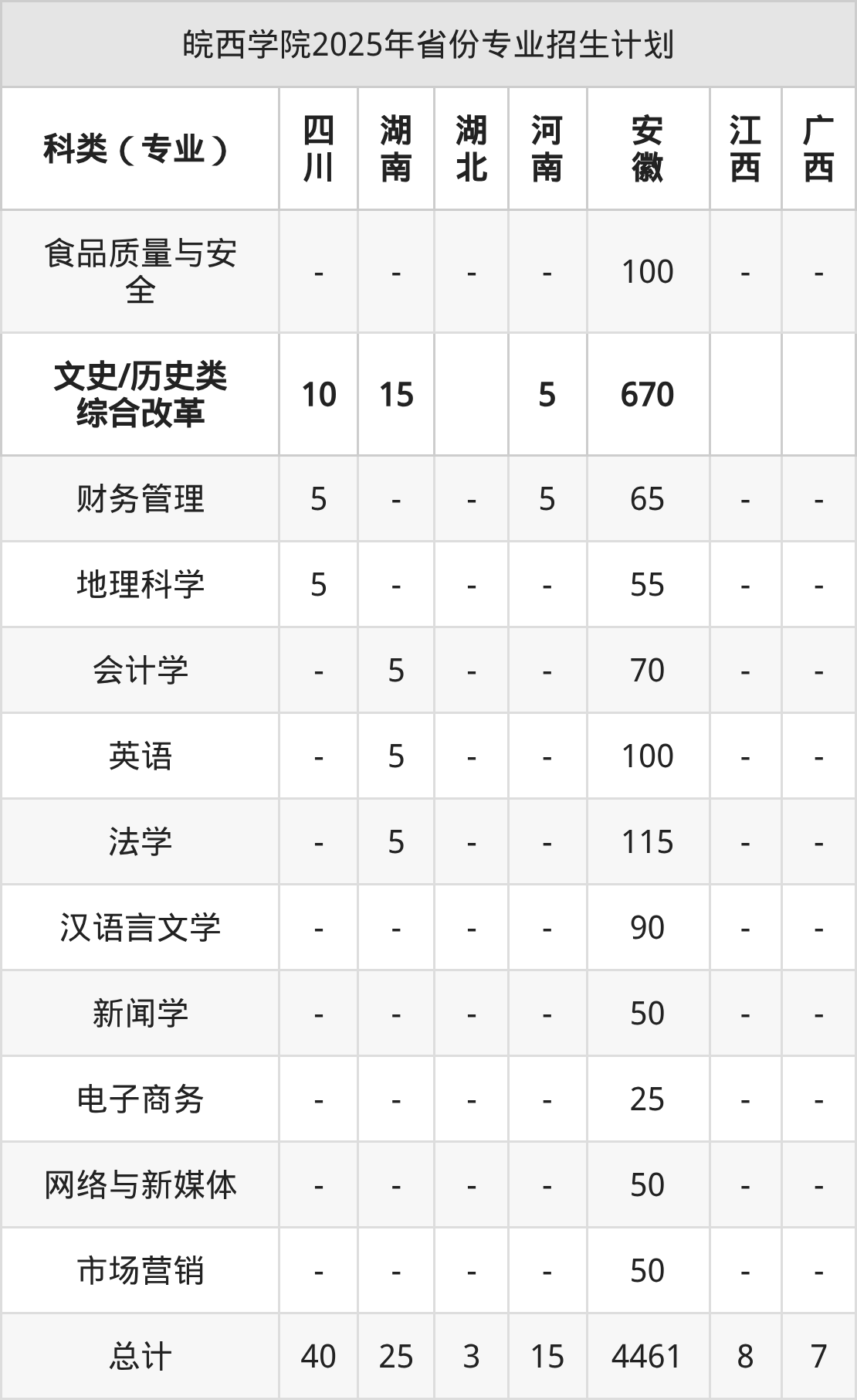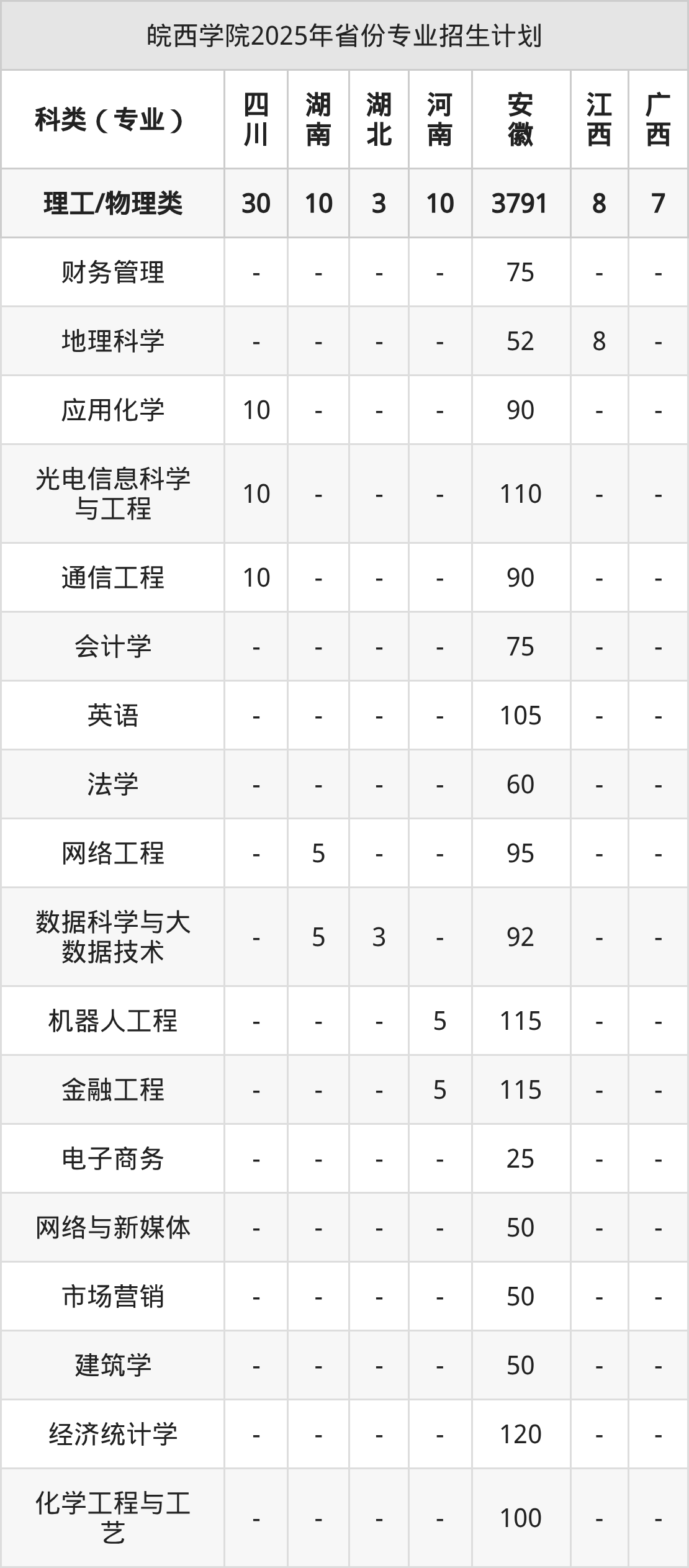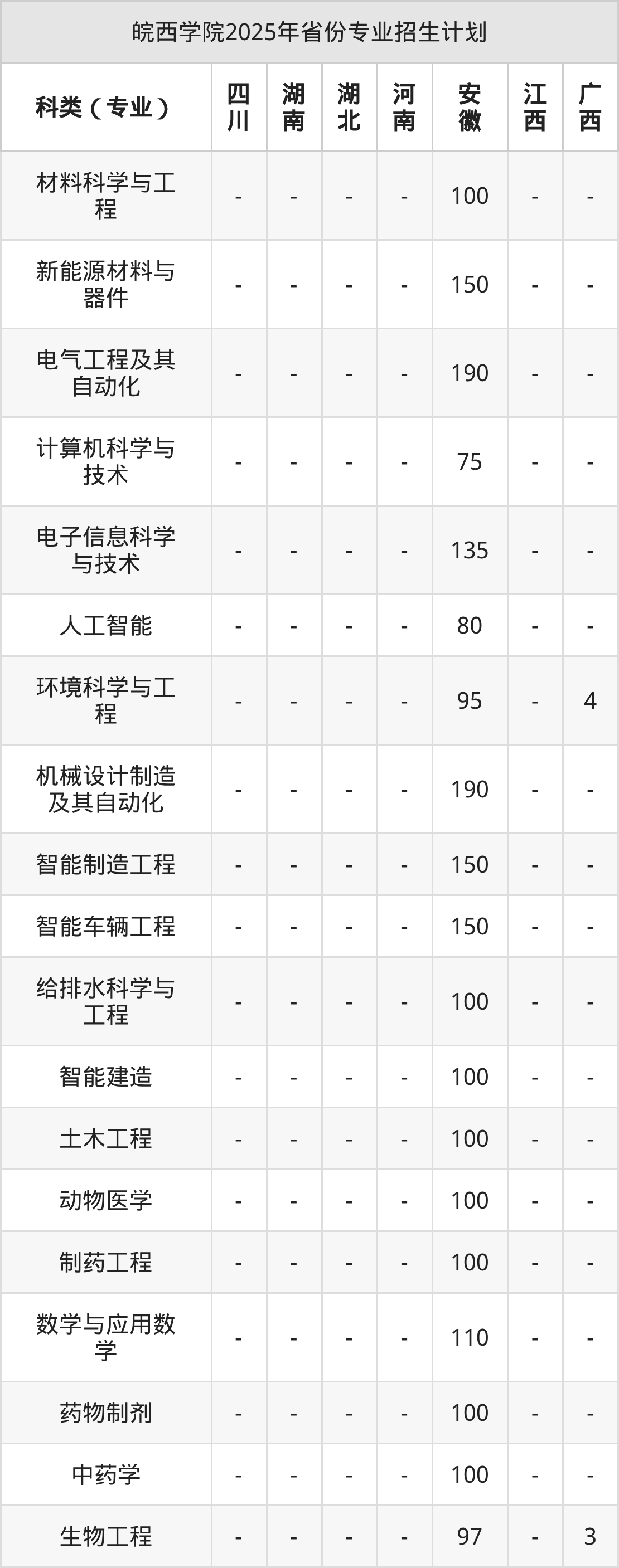 2026年皖西学院本科招生计划待公布,下面附上2025年数据,暂供参考: