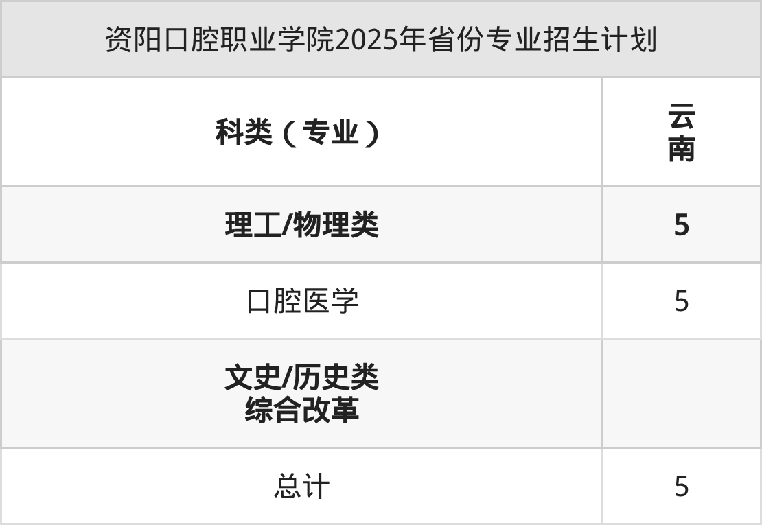 2026年资阳口腔职业学院专科招生计划待公布,下面附上2025年数据,暂供参考: