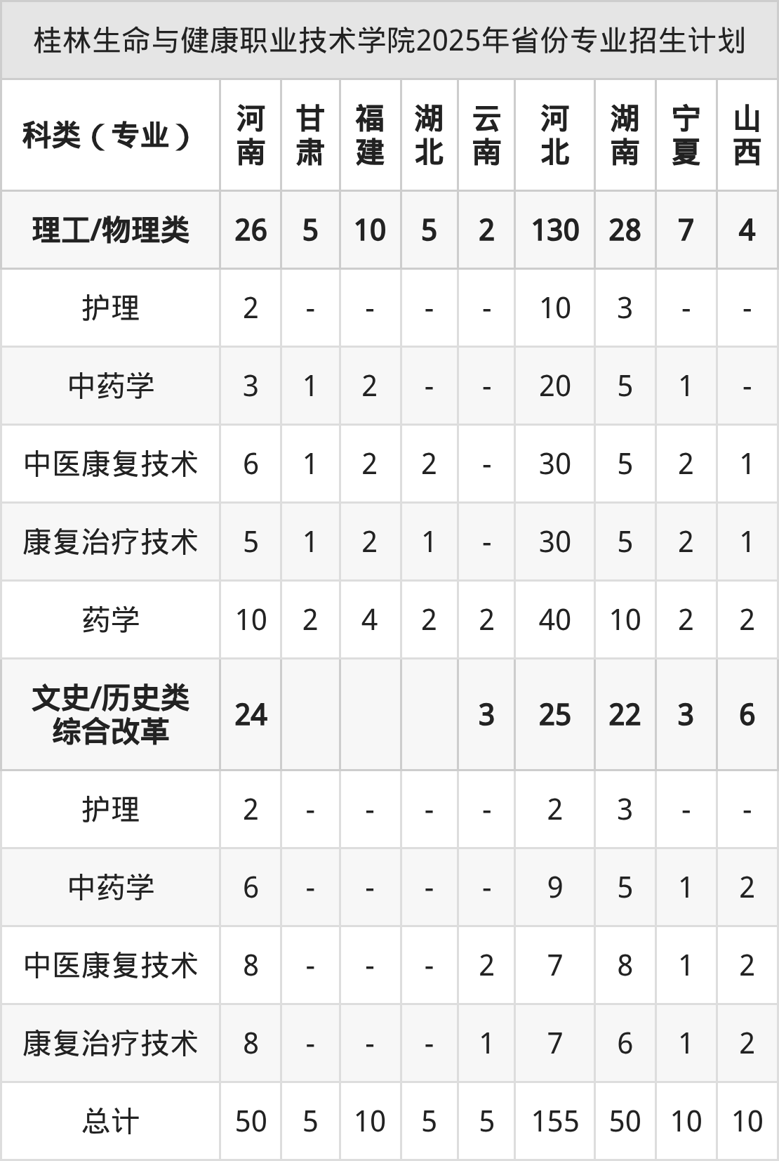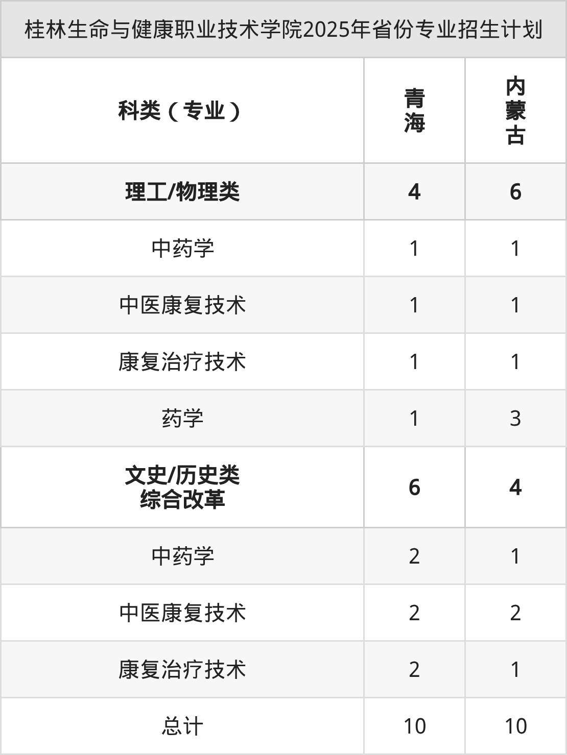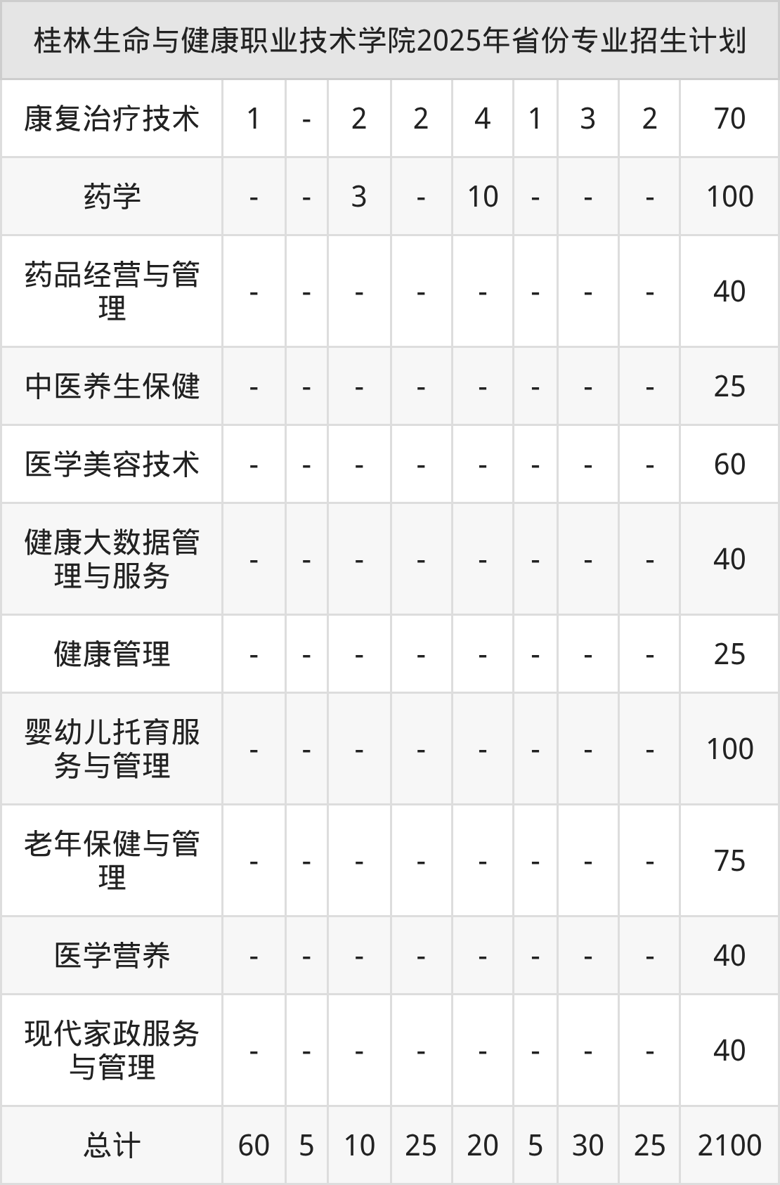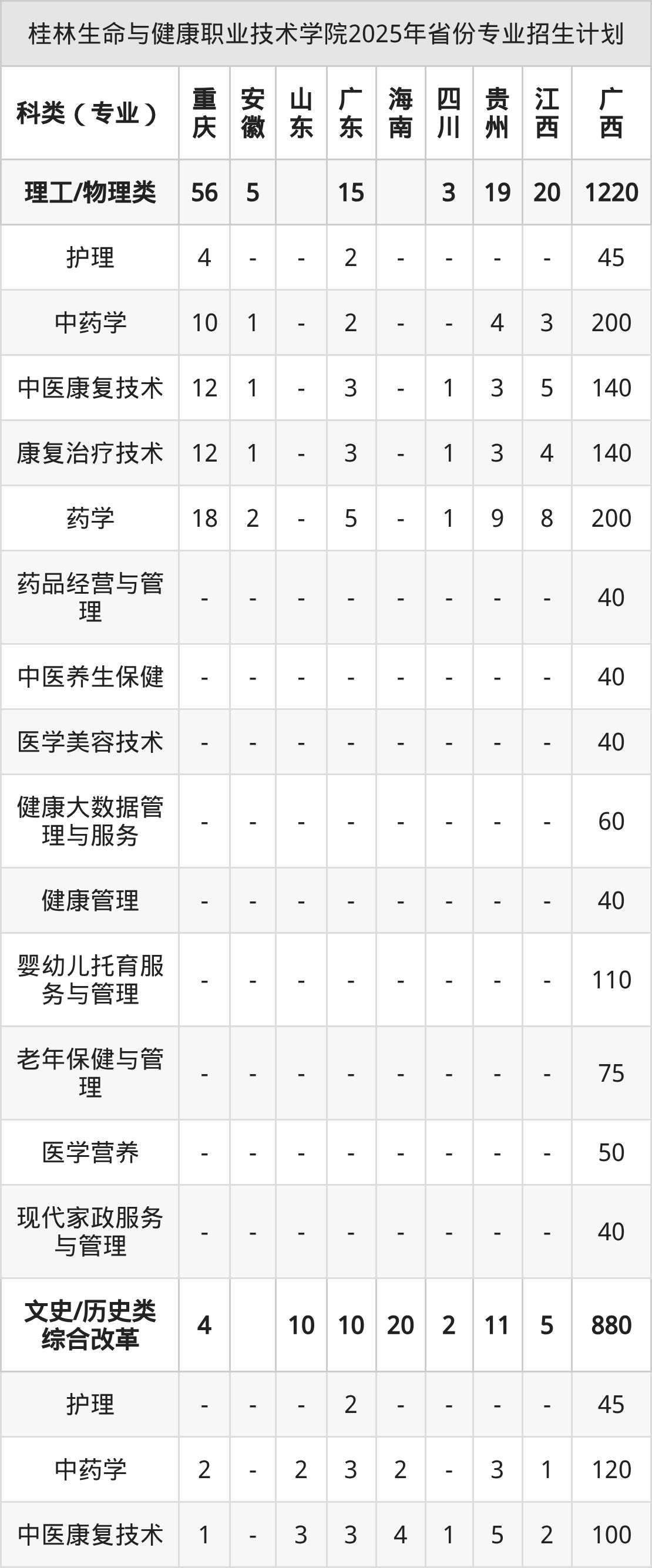 2026年桂林生命与健康职业技术学院专科招生计划待公布,下面附上2025年数据,暂供参考: