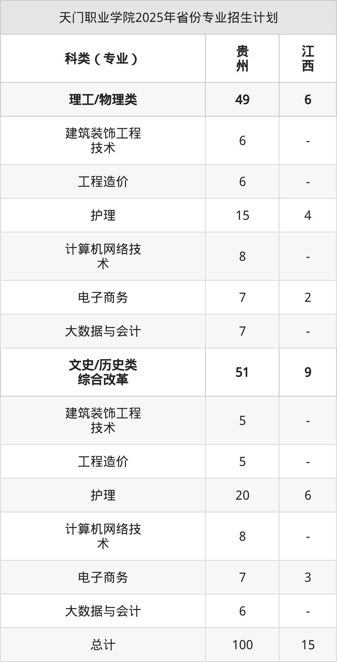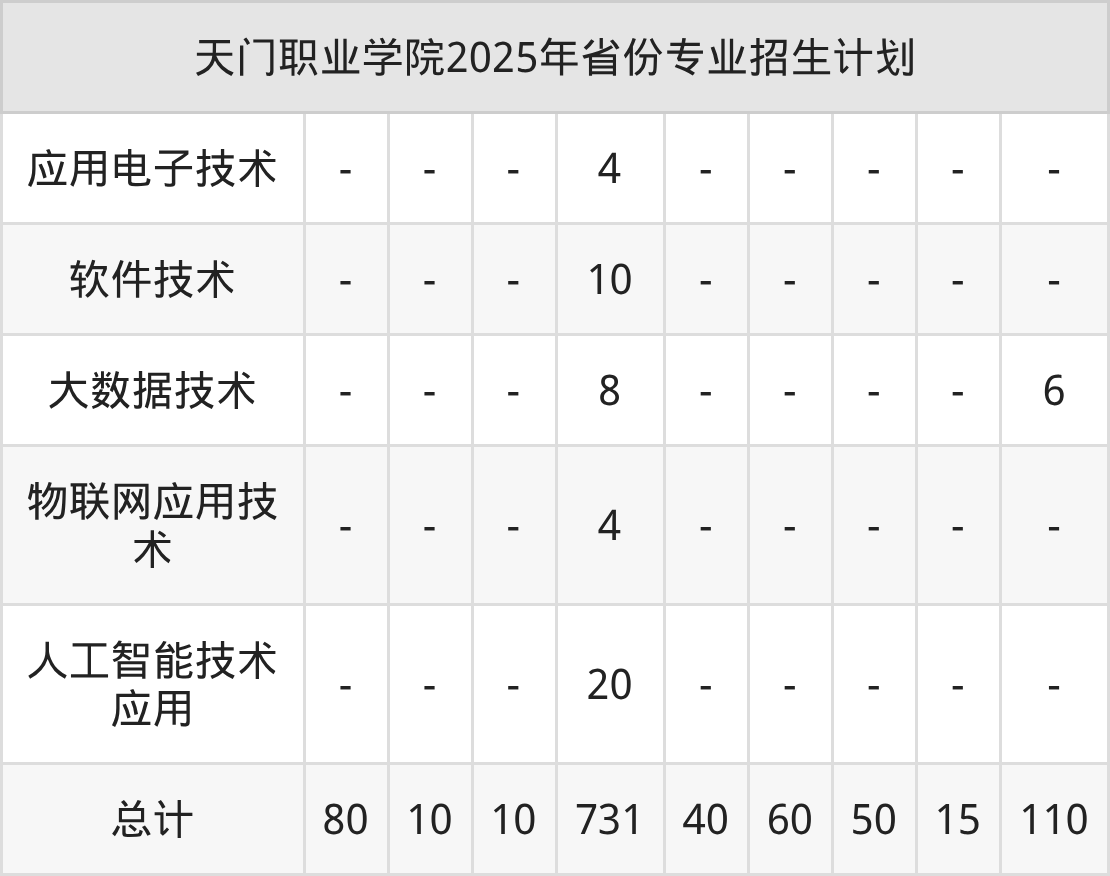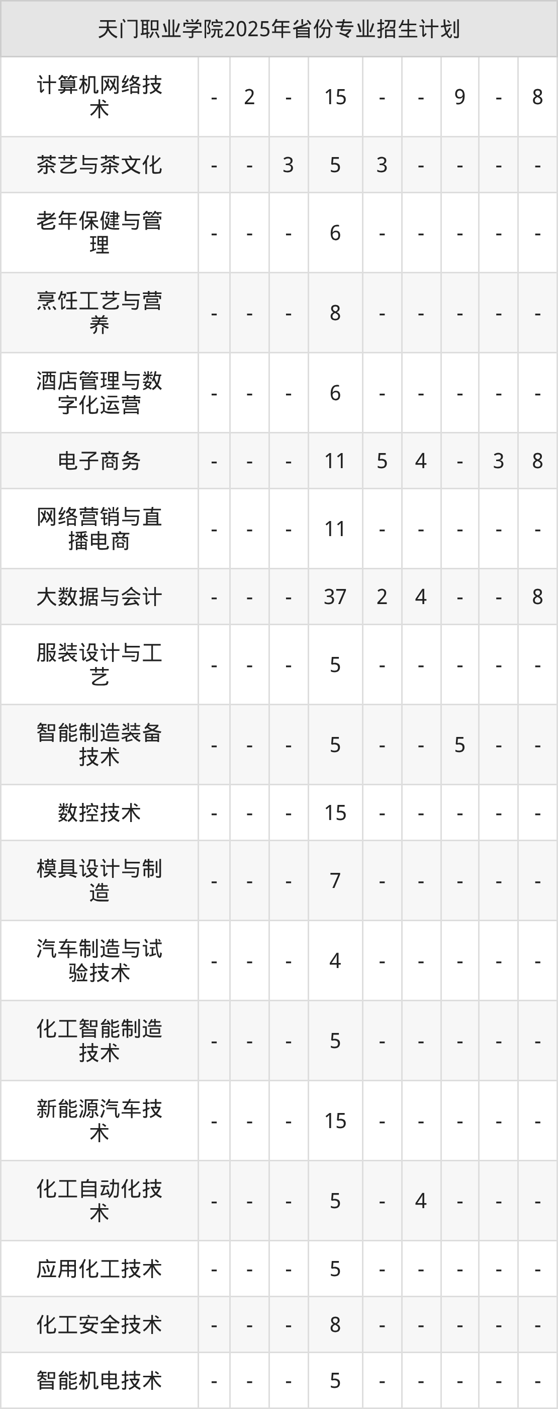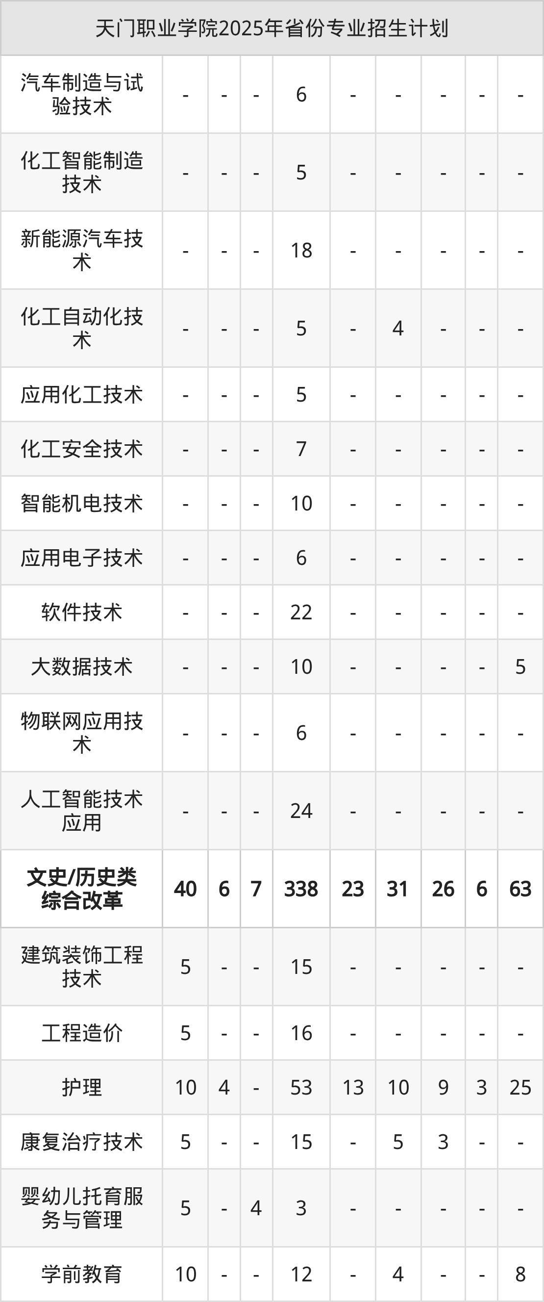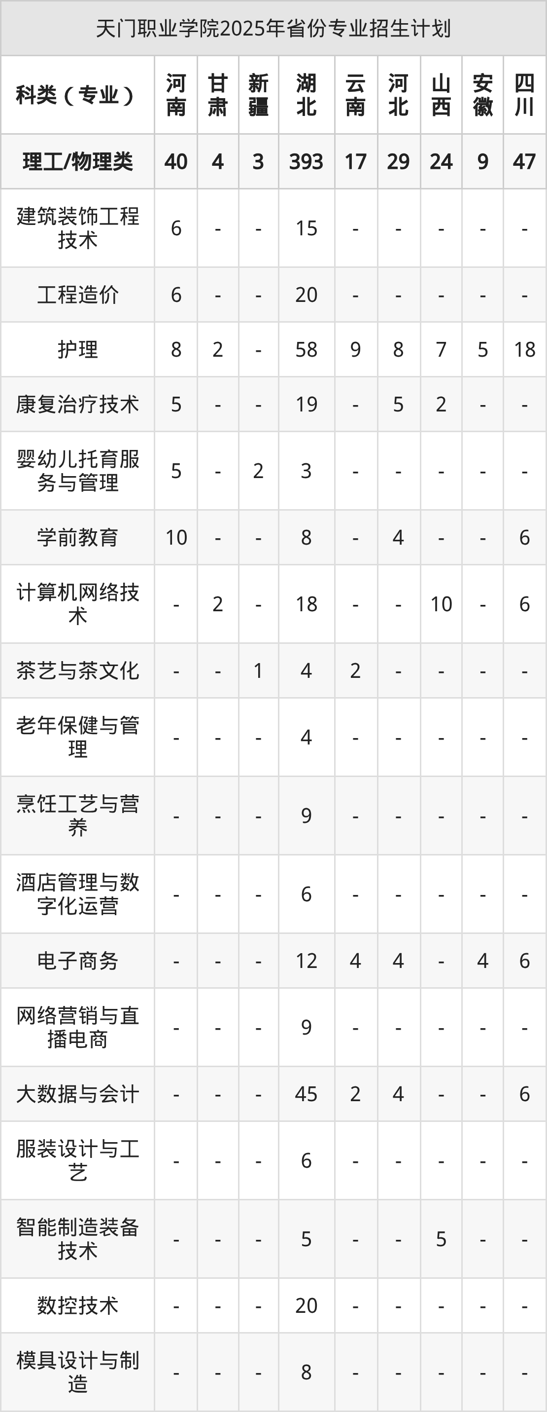 2026年天门职业学院专科招生计划待公布,下面附上2025年数据,暂供参考: