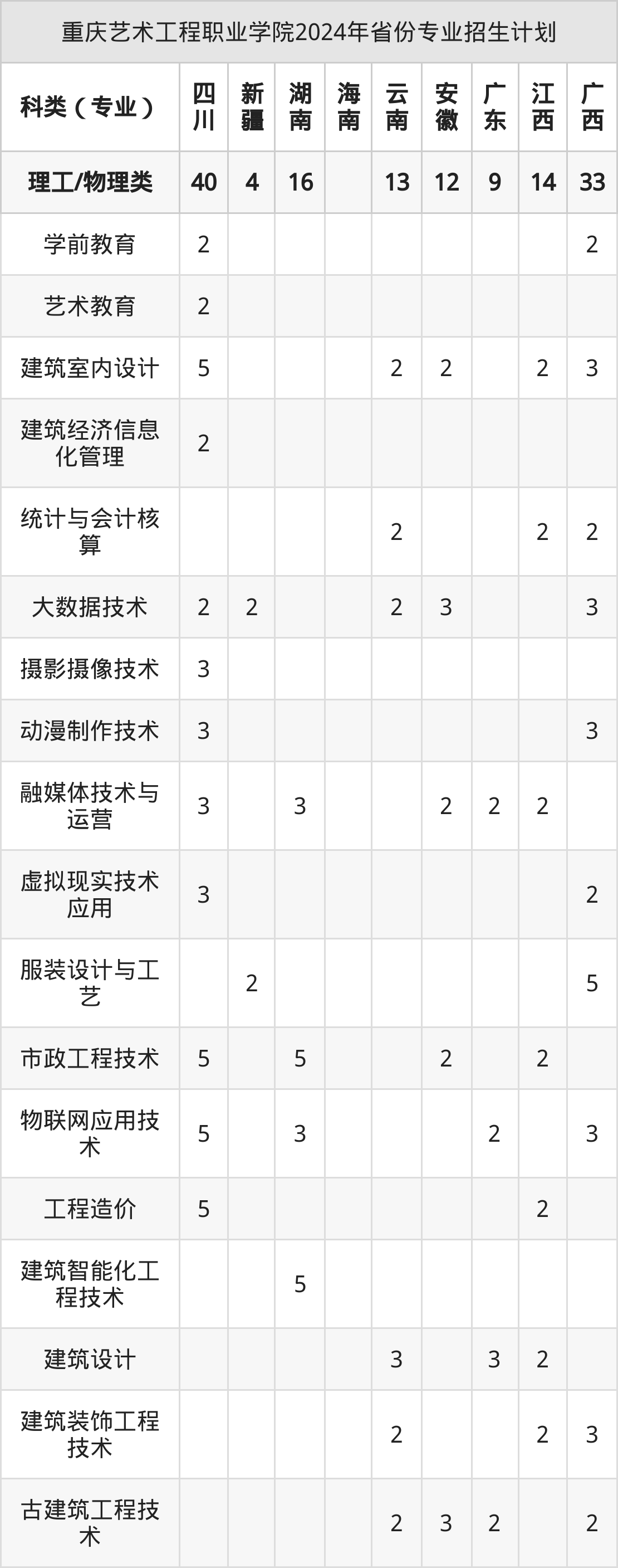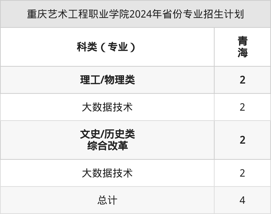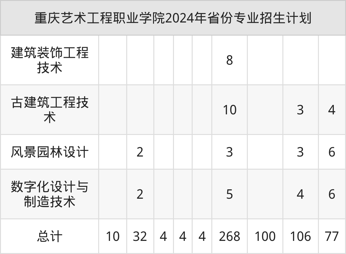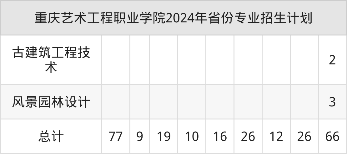 2025年重庆艺术工程职业学院专科招生计划待公布,下面附上2024年数据,暂供参考:
