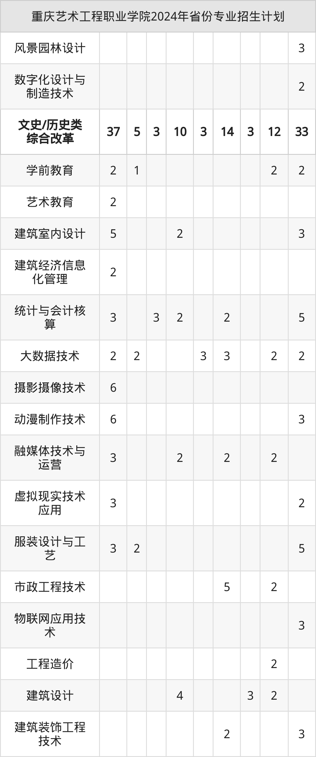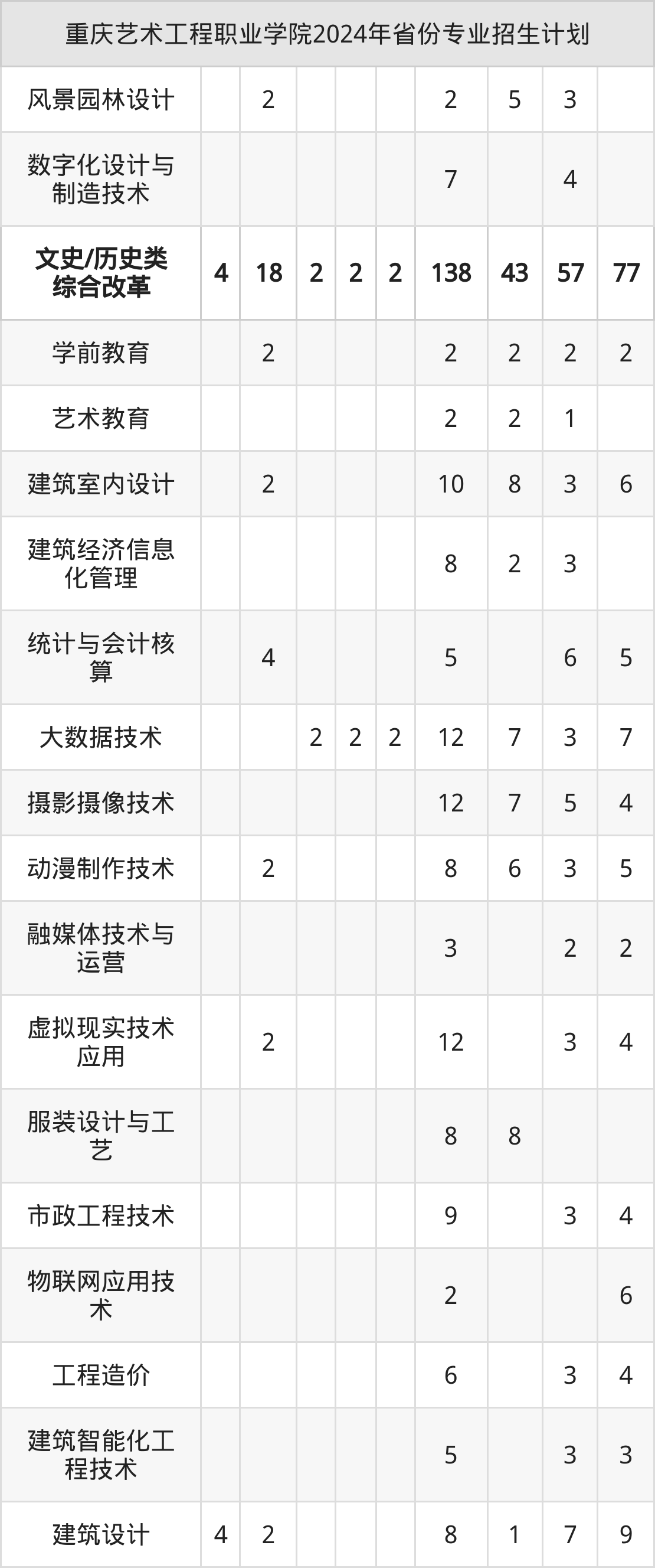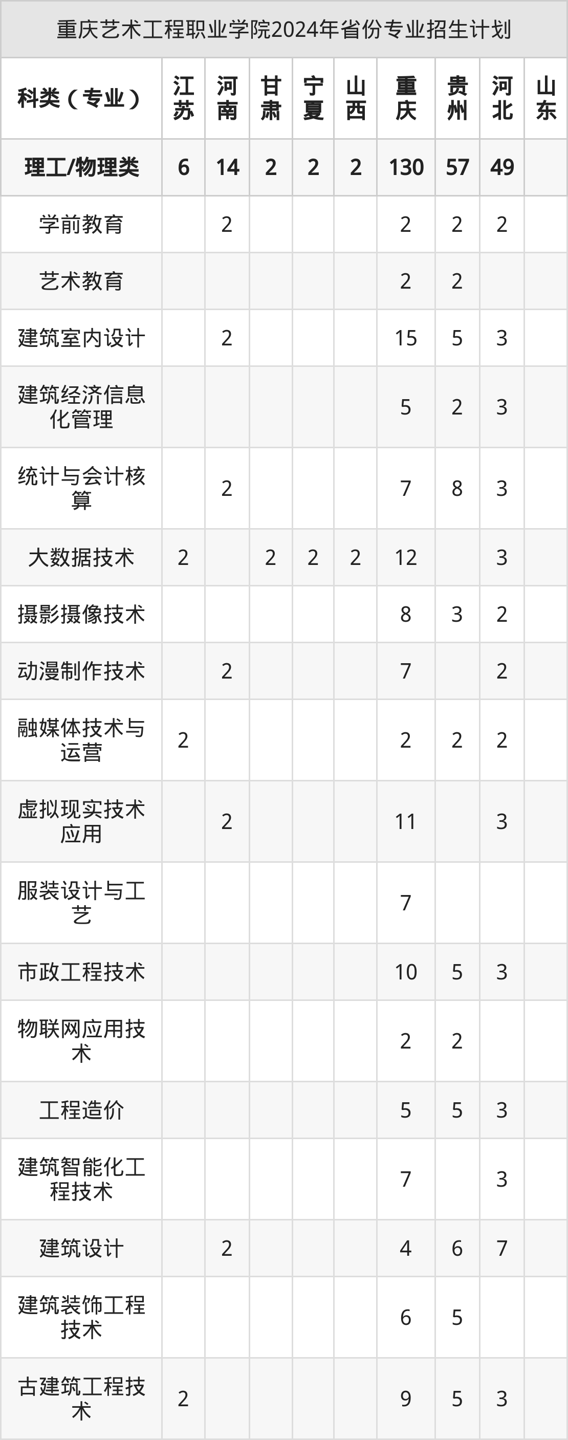 2025年重庆艺术工程职业学院专科招生计划待公布,下面附上2024年数据,暂供参考: