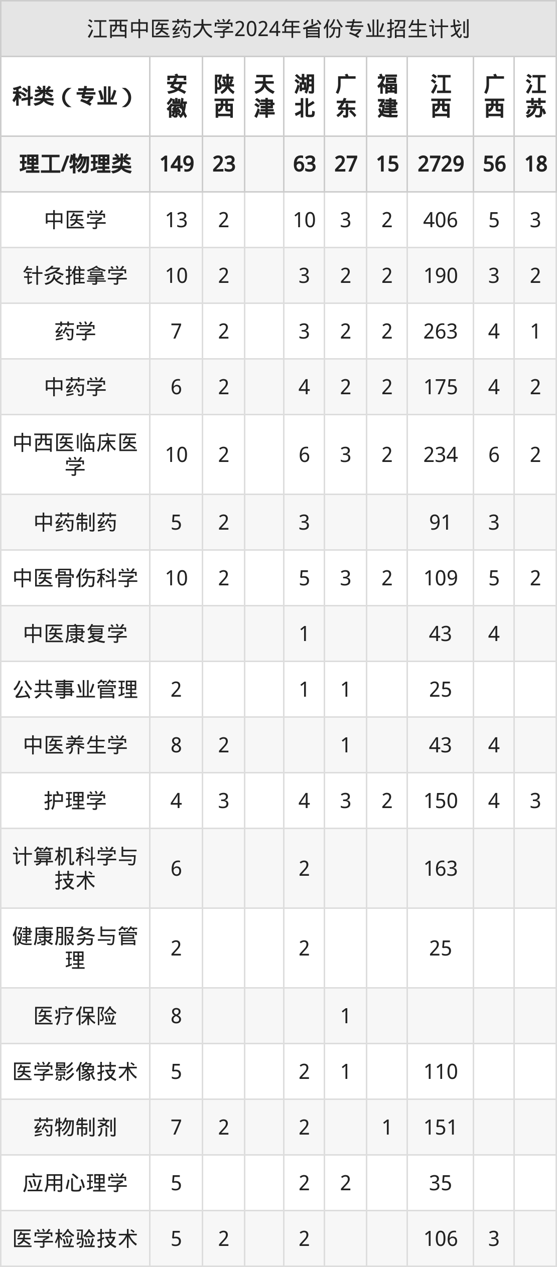 2025年江西中医药大学本科招生计划待公布,下面附上2024年数据,暂供参考: