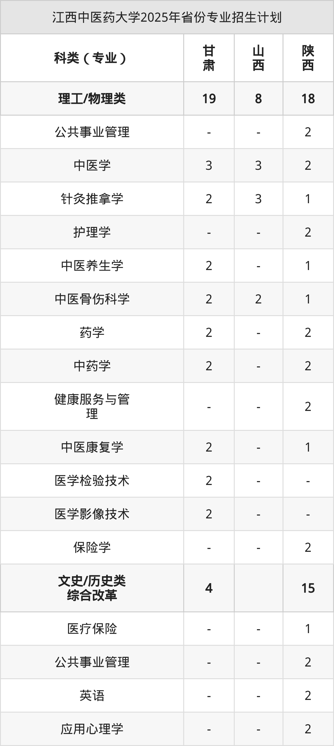 | 江西中医药大学2025年本科最低分汇总 | ||||