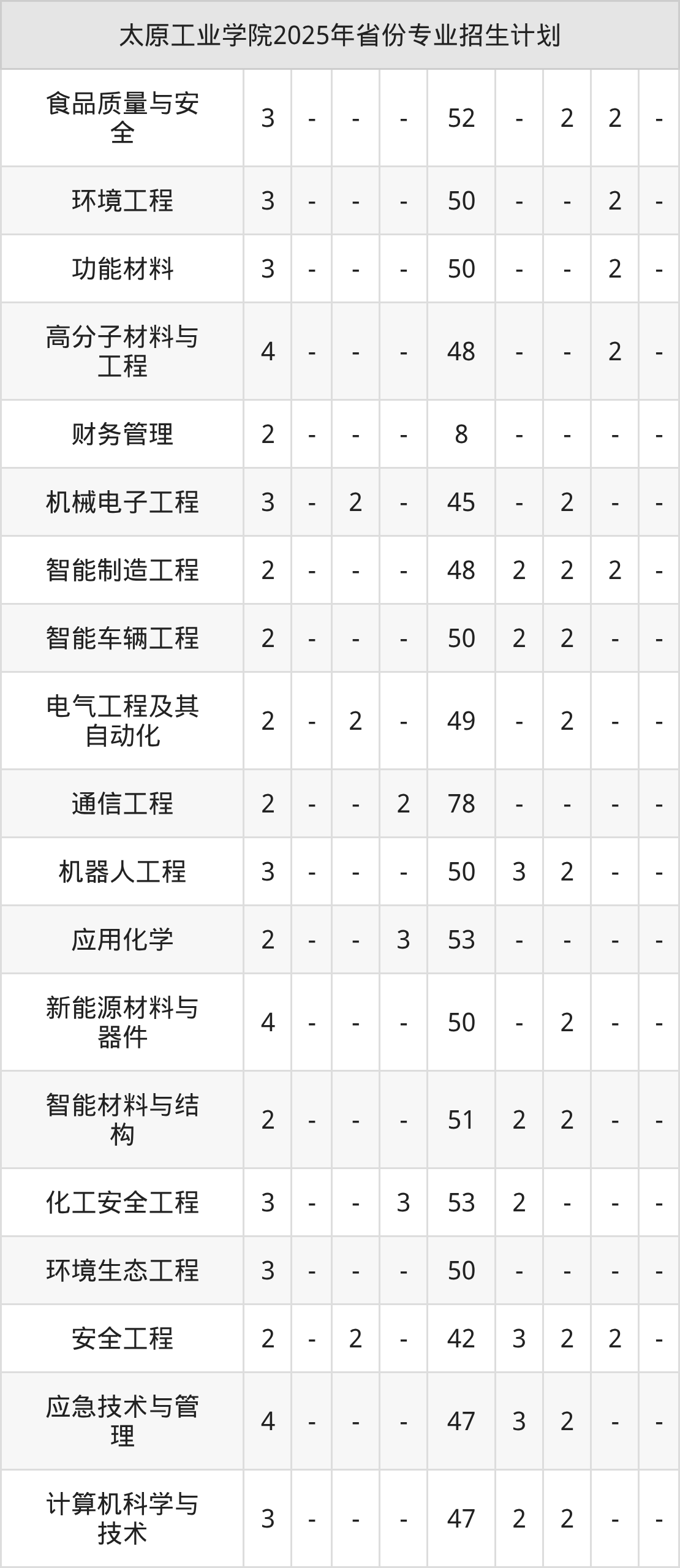 | 太原工业学院本科招生专业 | |