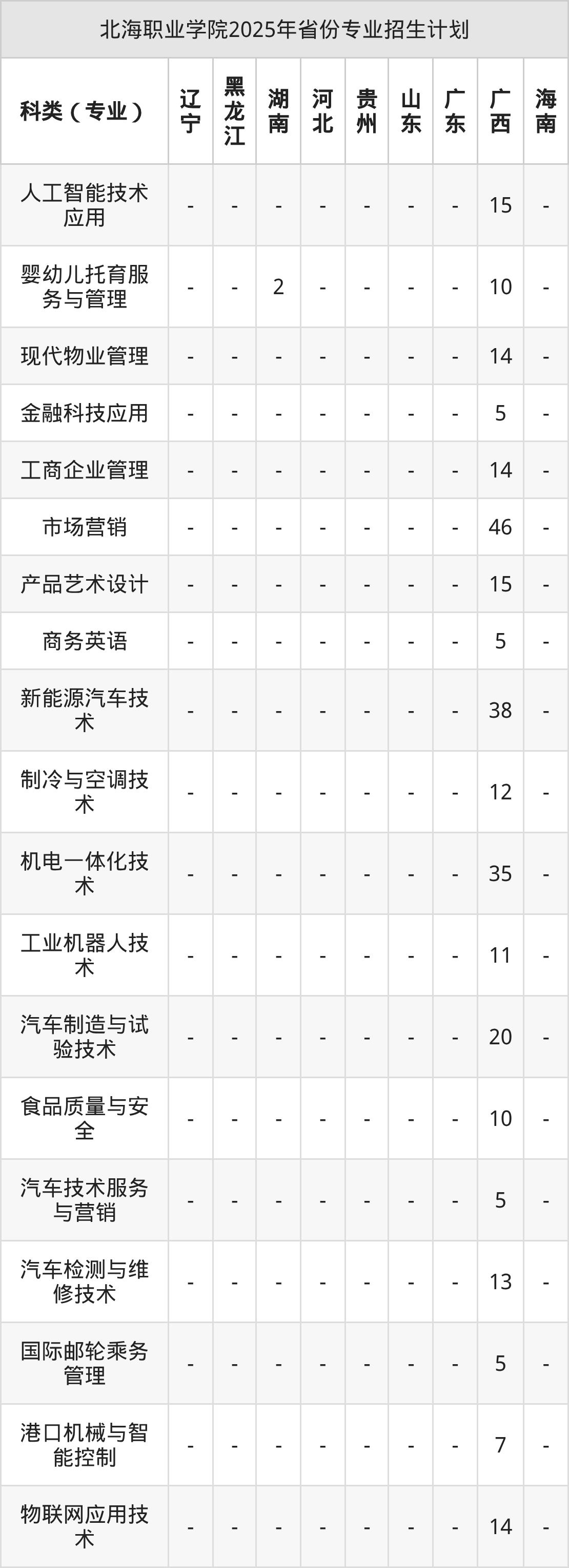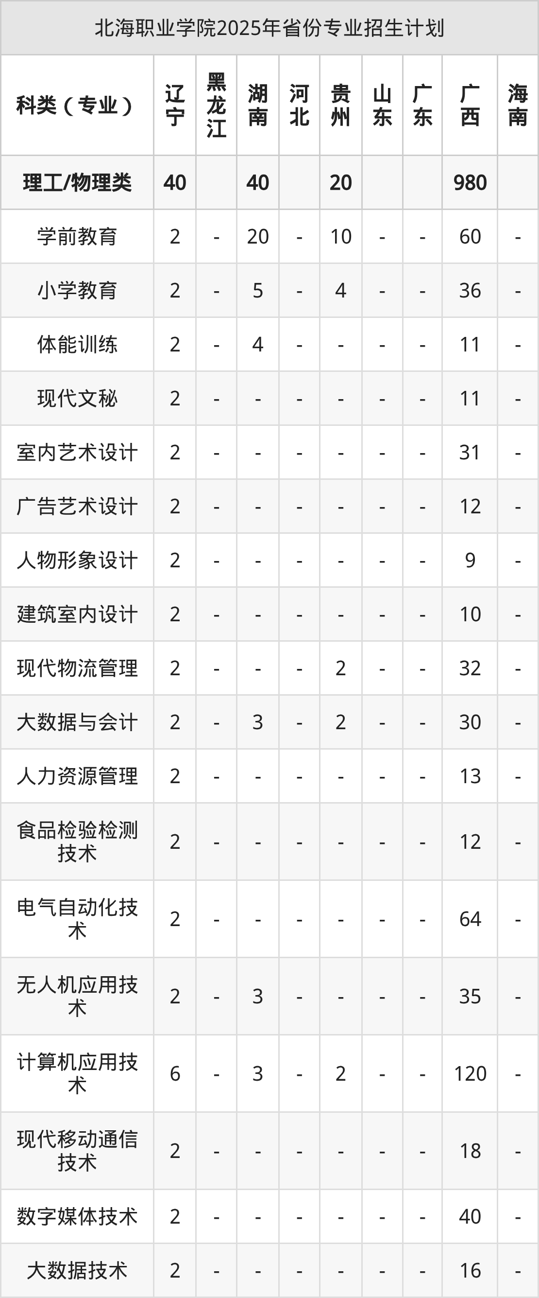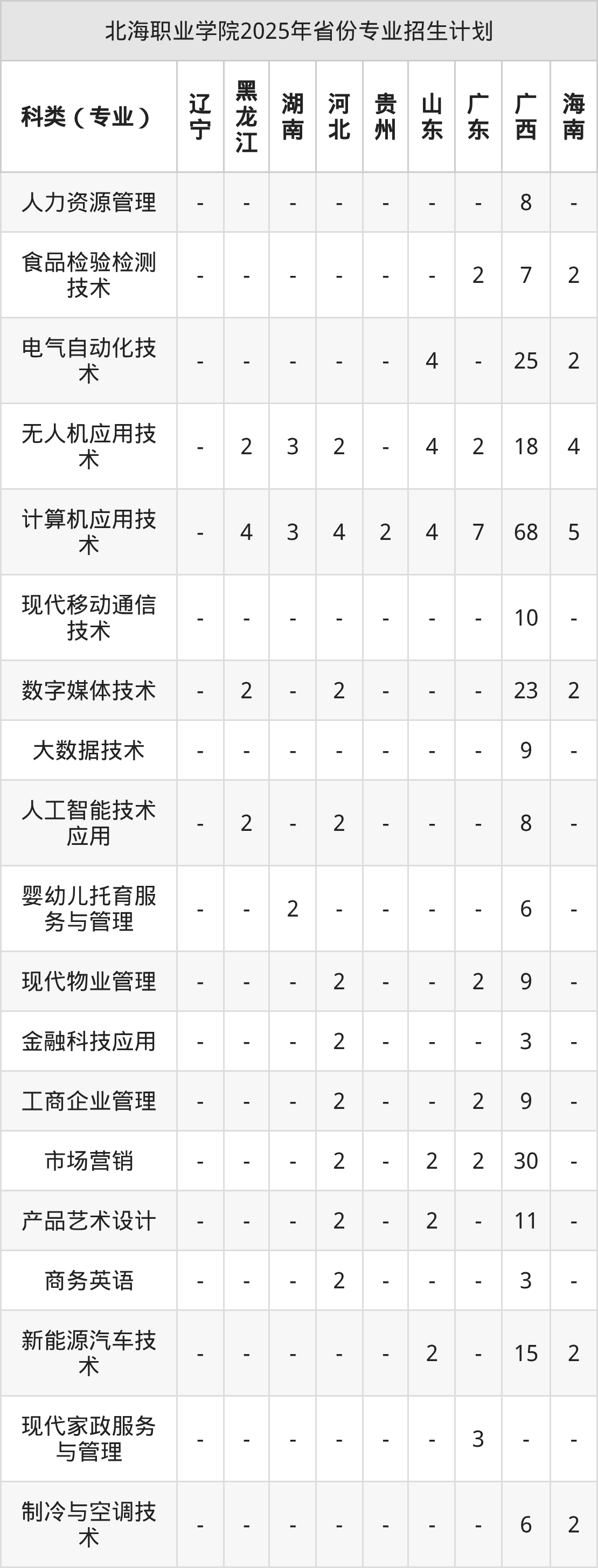 2026年北海职业学院专科招生计划待公布,下面附上2025年数据,暂供参考: