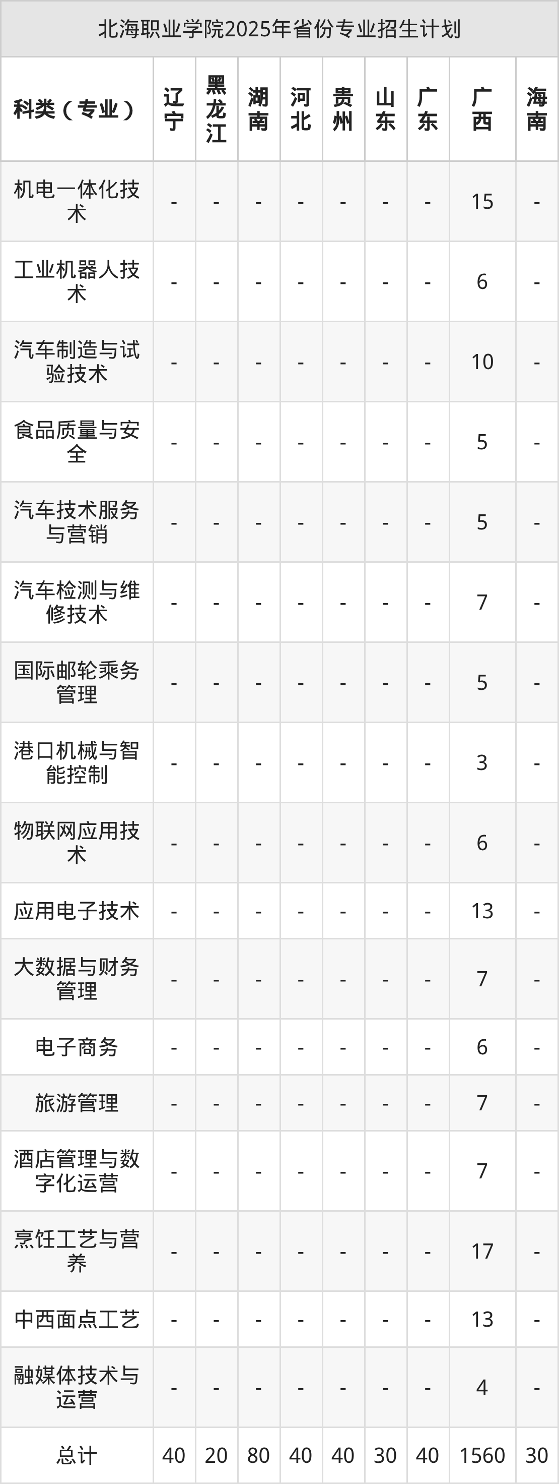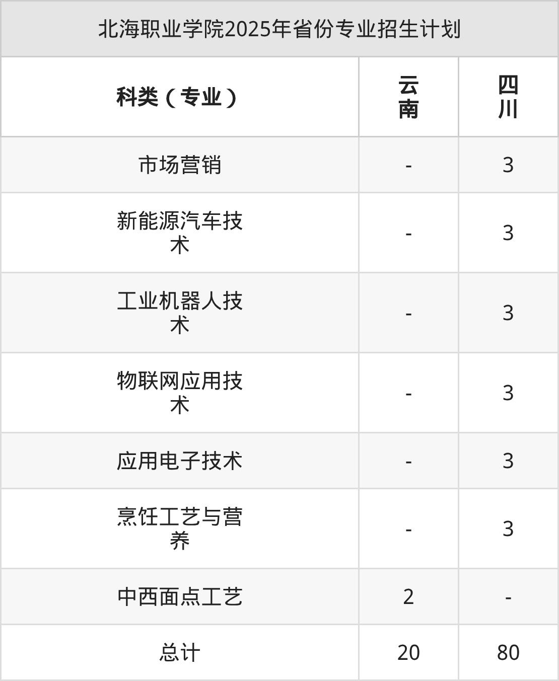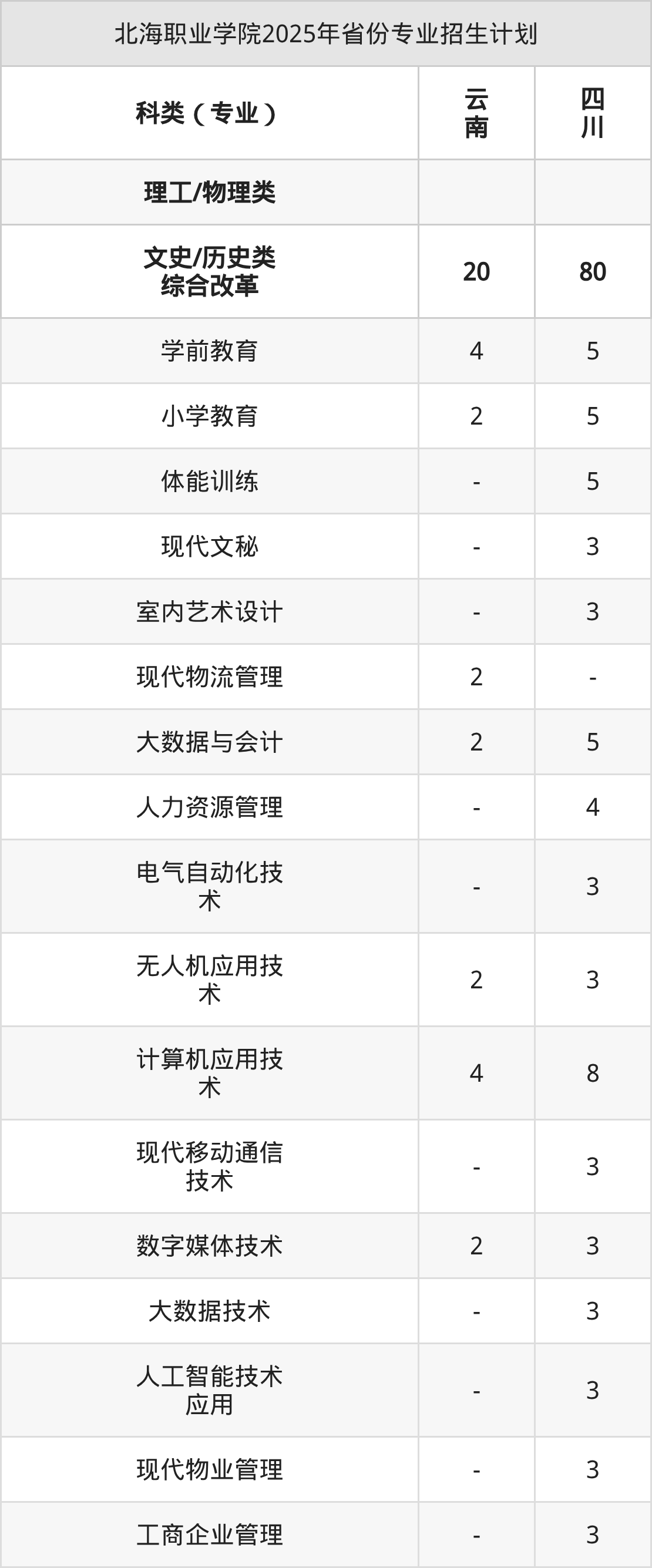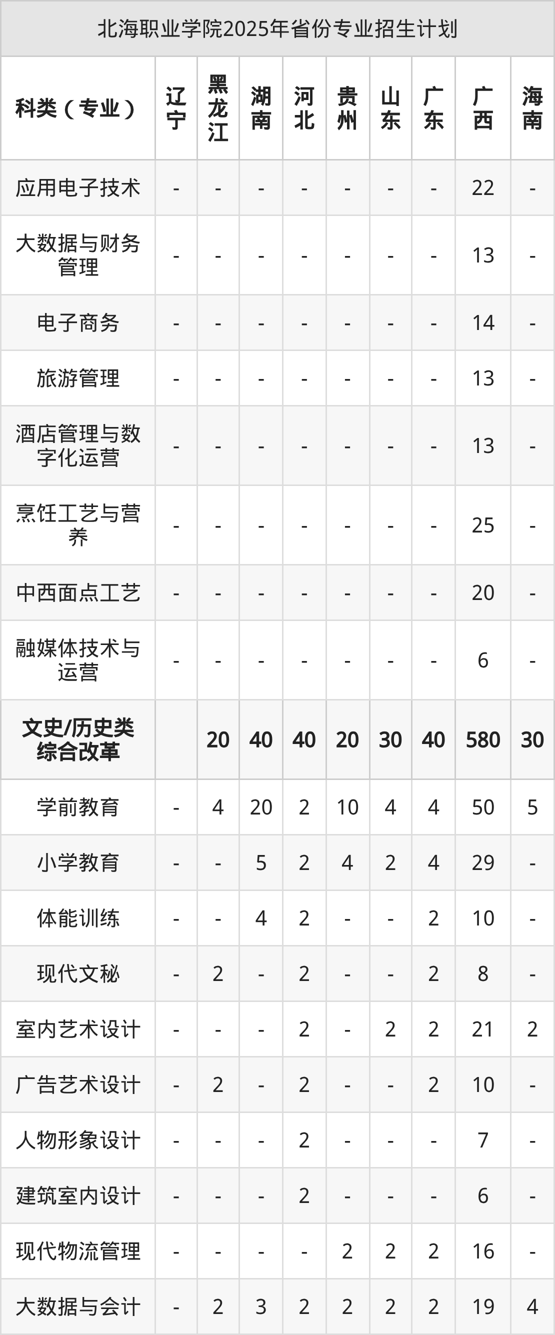 2026年北海职业学院专科招生计划待公布,下面附上2025年数据,暂供参考: