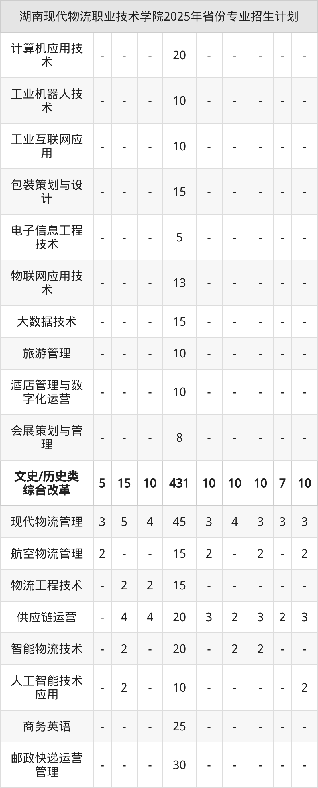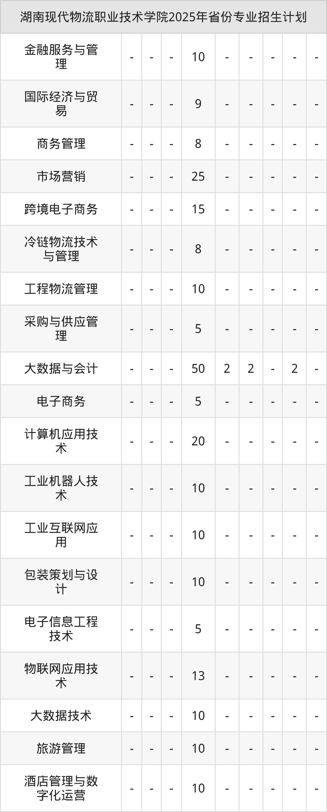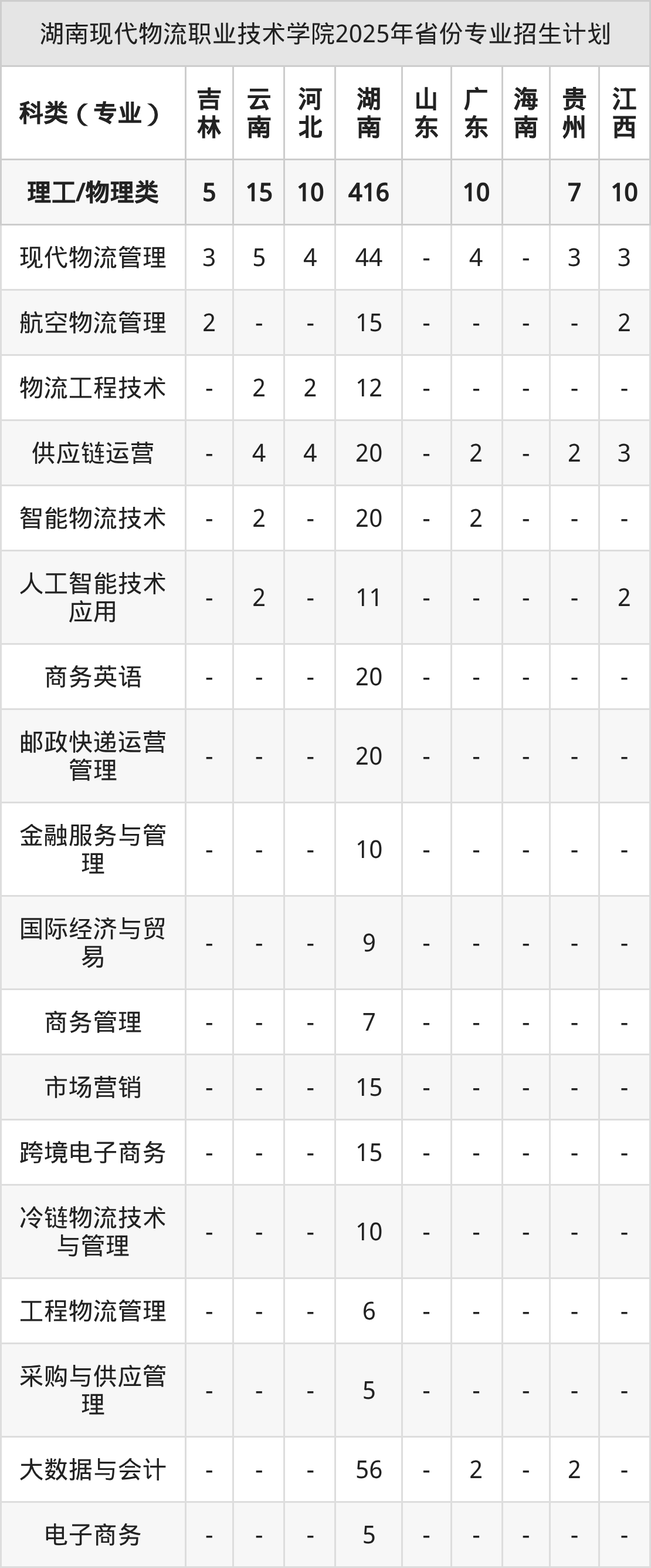 2026年湖南现代物流职业技术学院专科招生计划待公布,下面附上2025年数据,暂供参考: