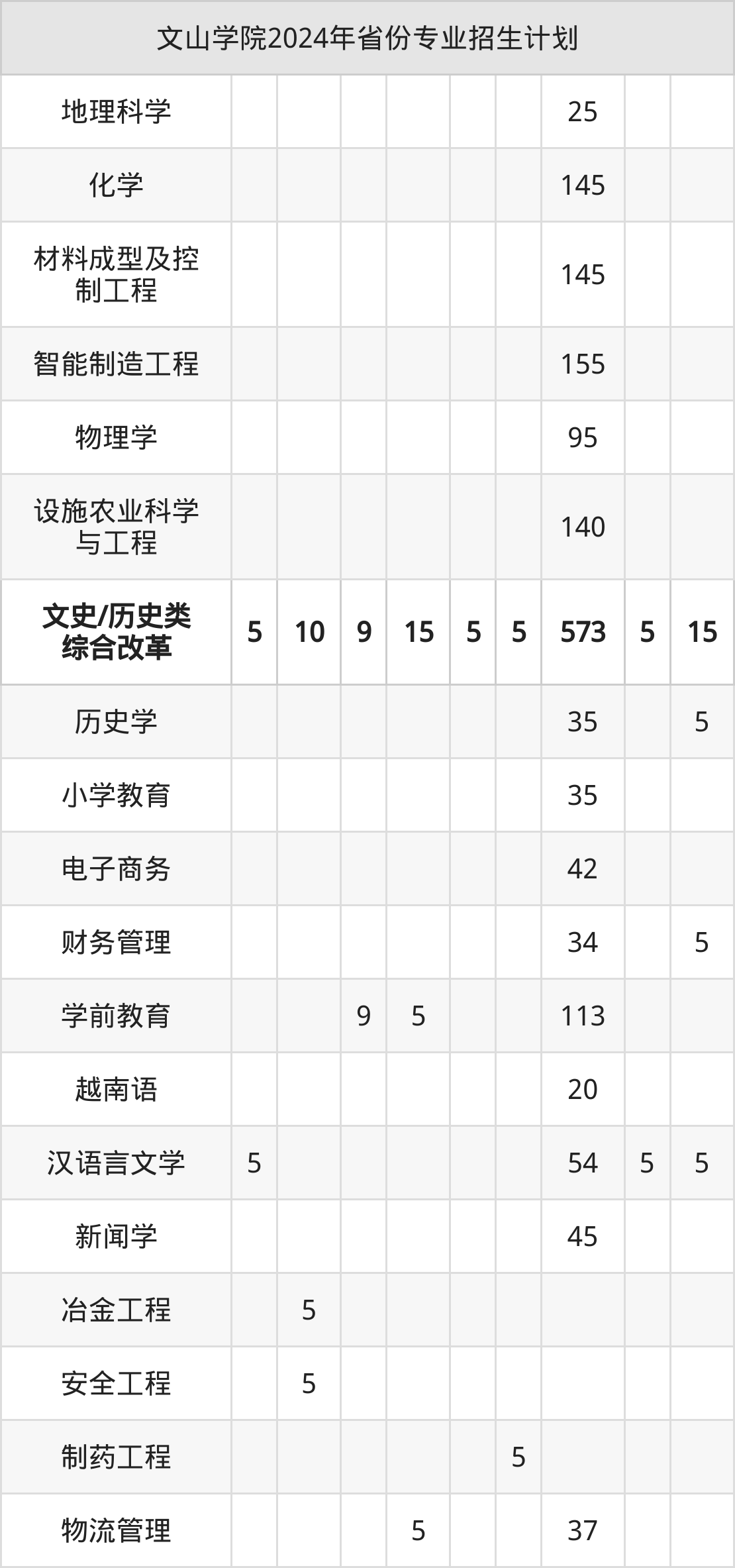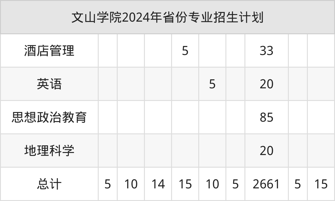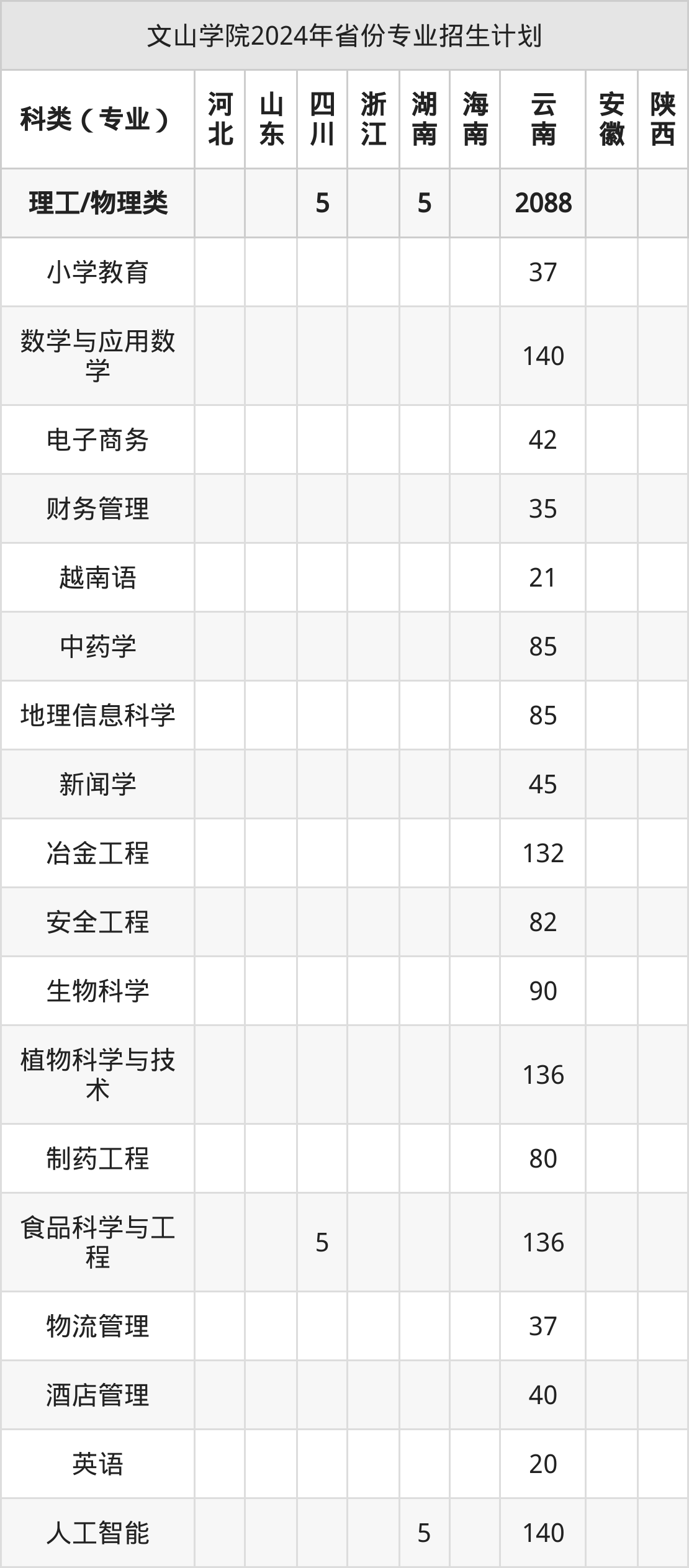 2025年文山学院本科招生计划待公布,下面附上2024年数据,暂供参考: