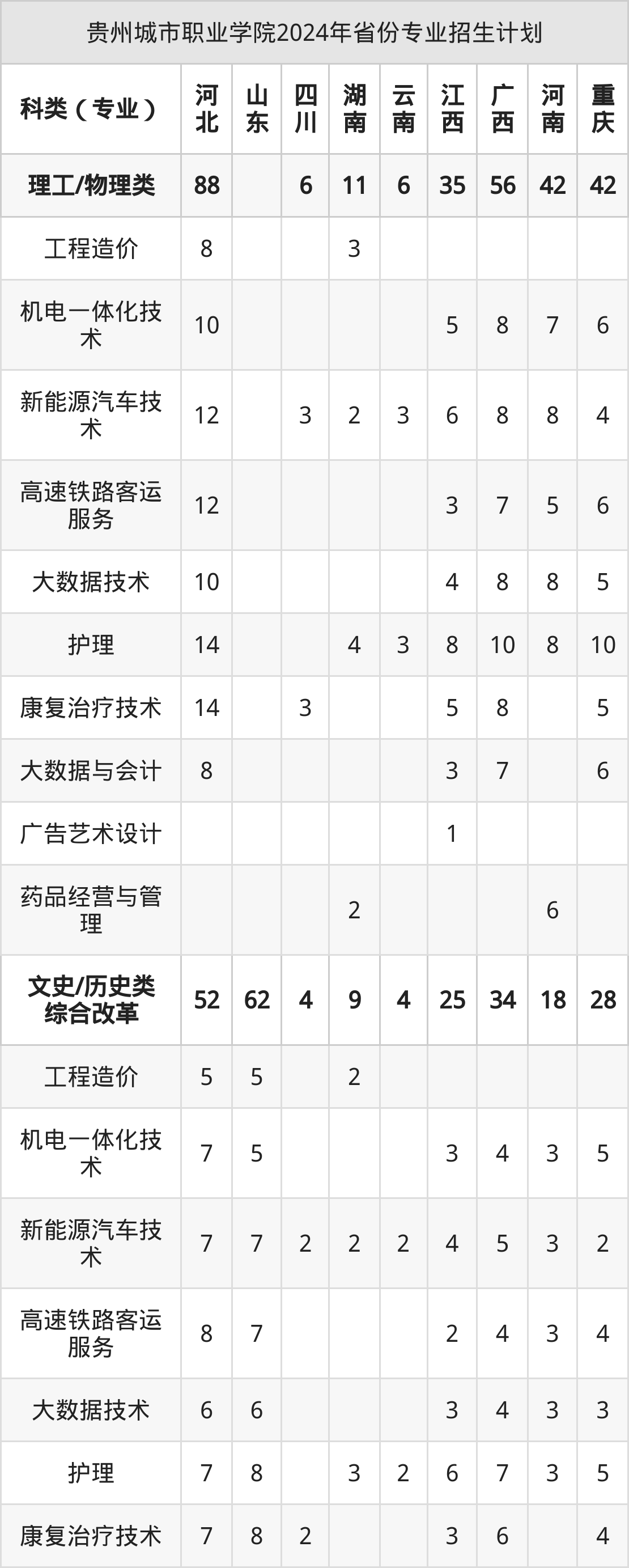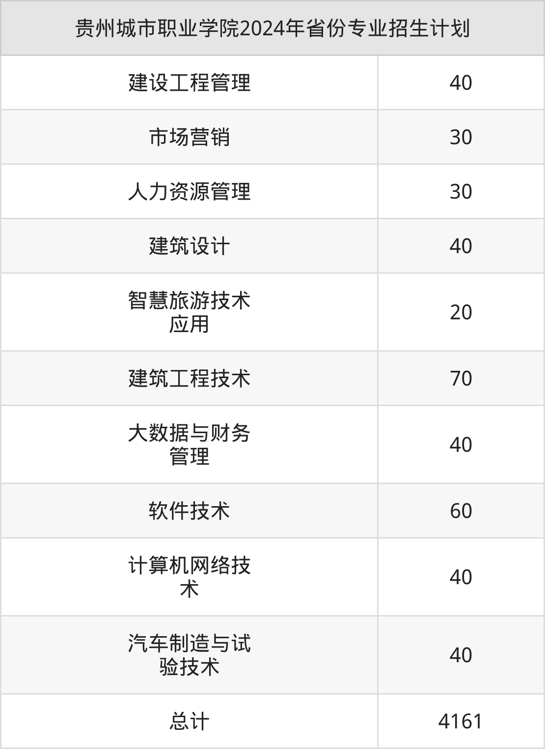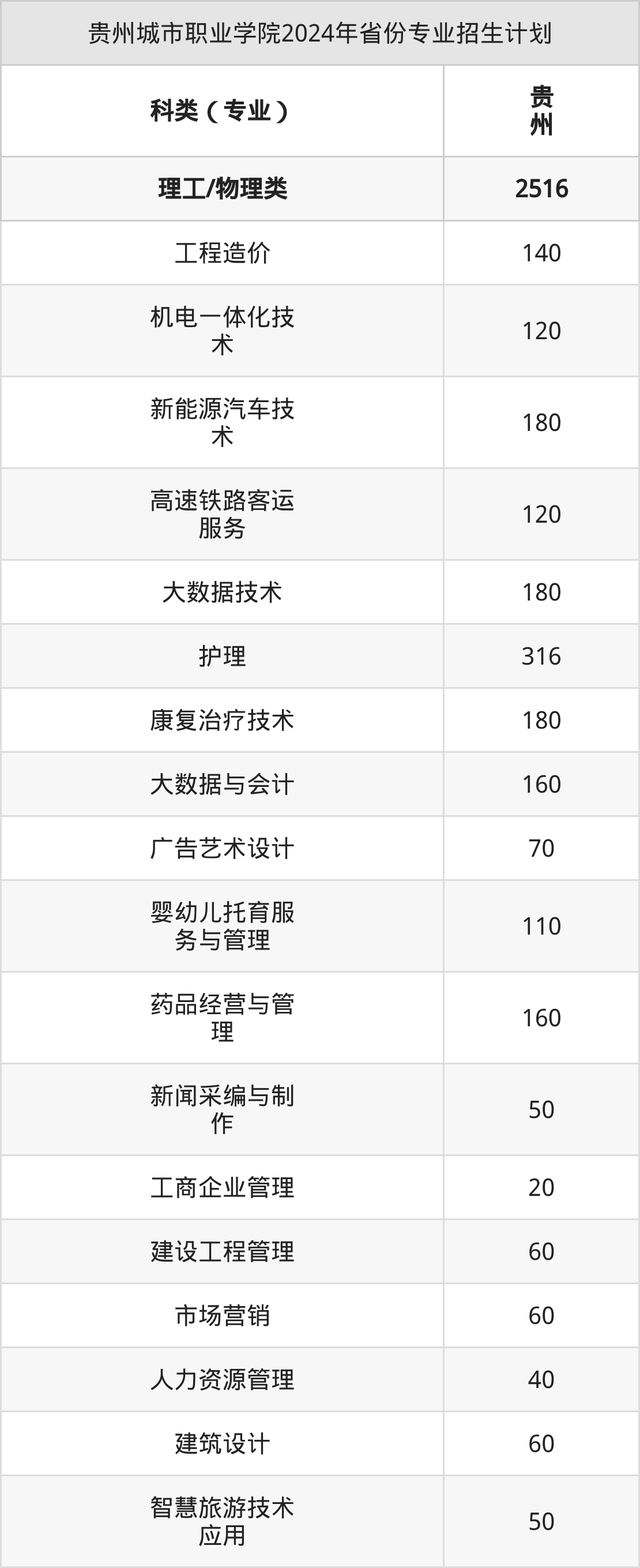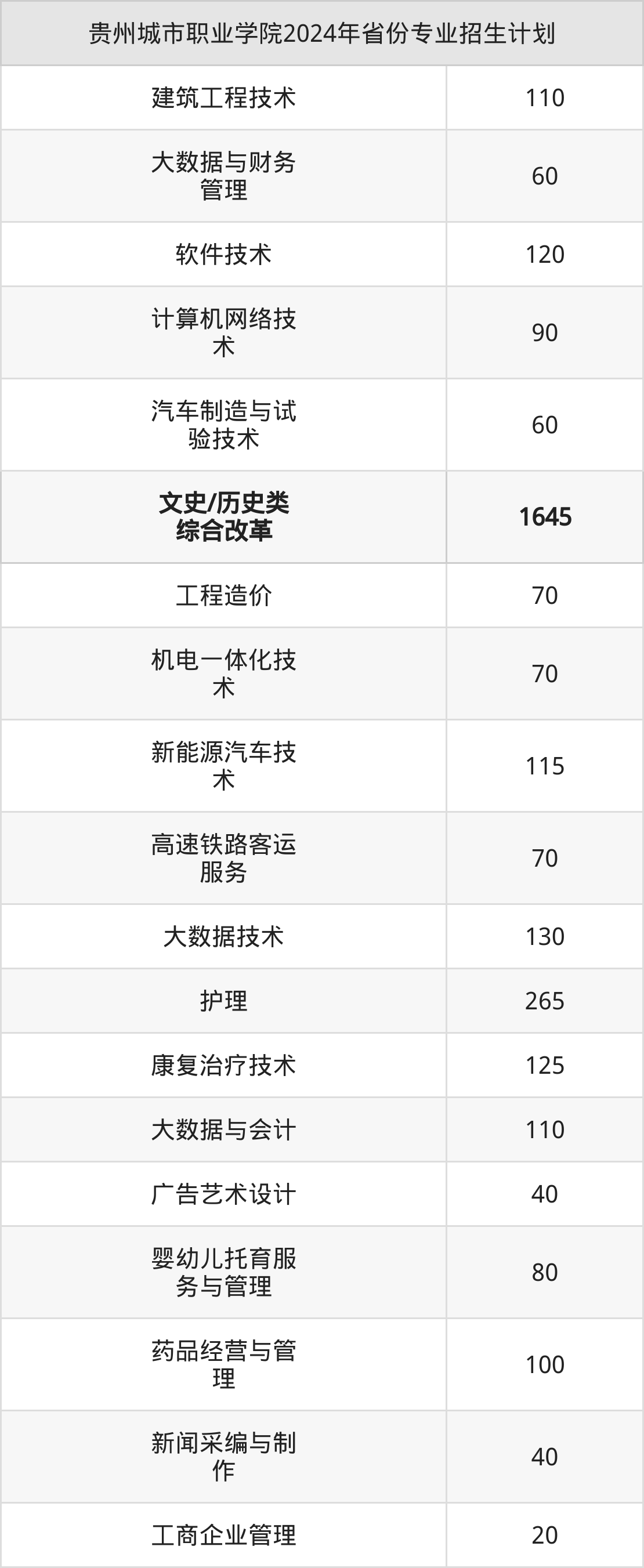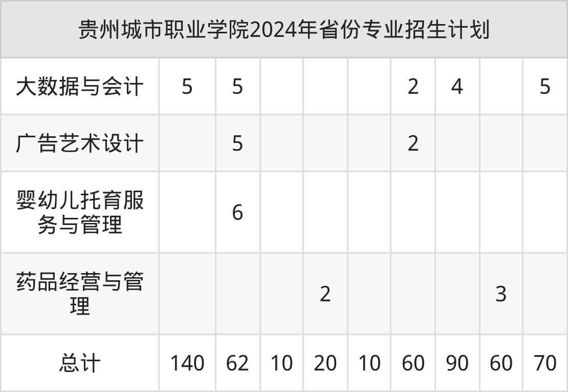 2025年贵州城市职业学院专科招生计划待公布,下面附上2024年数据,暂供参考: