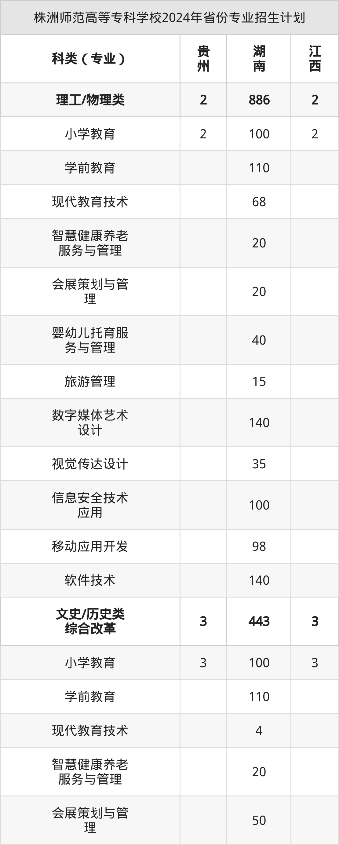 2025年株洲师范高等专科学校专科招生计划待公布,下面附上2024年数据,暂供参考: