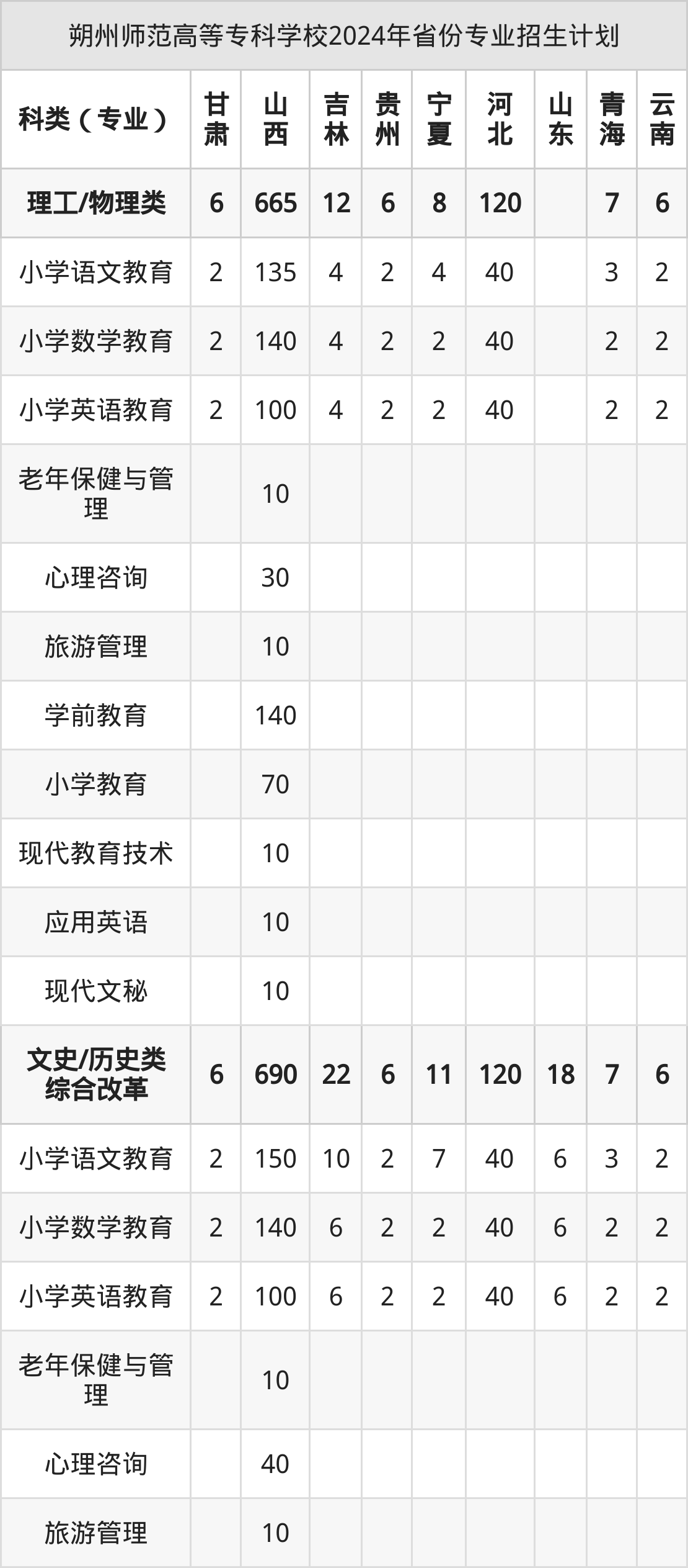 2025年朔州师范高等专科学校专科招生计划待公布,下面附上2024年数据,暂供参考: