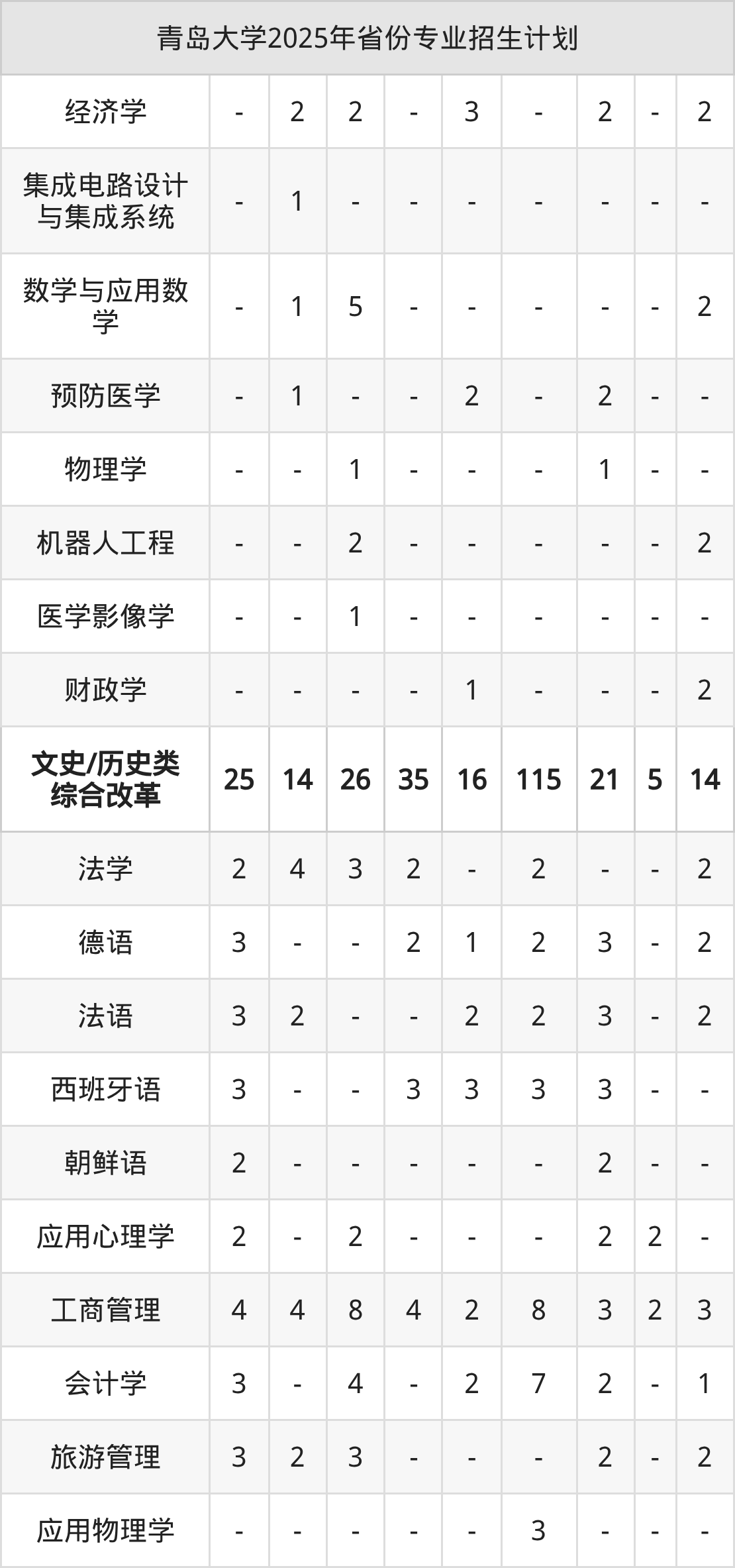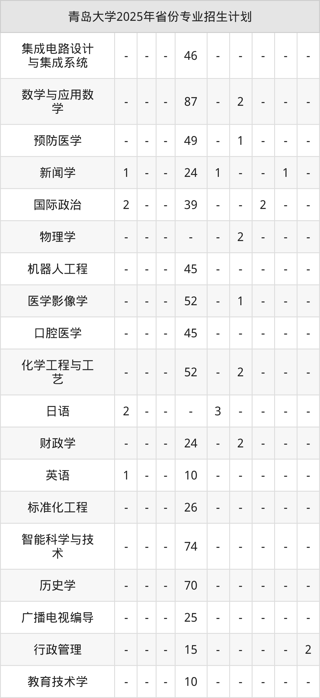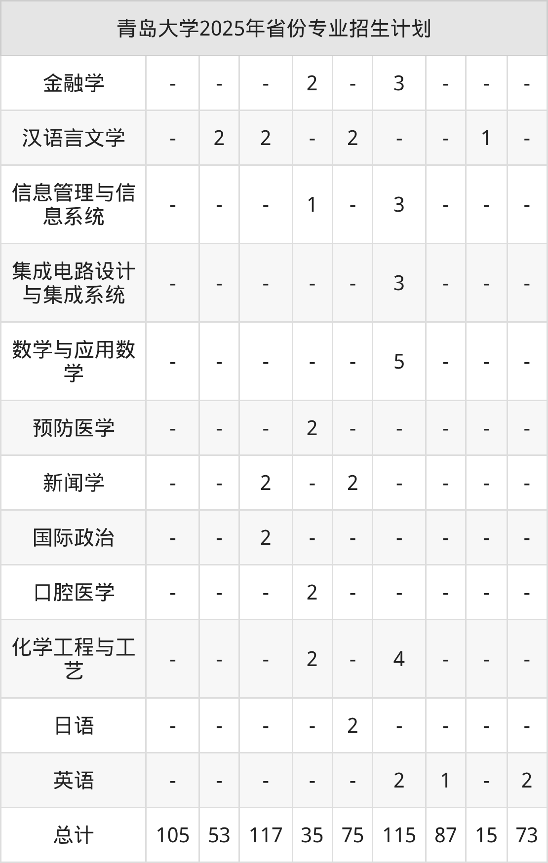 2026年青岛大学本科招生计划待公布,下面附上2025年数据,暂供参考: