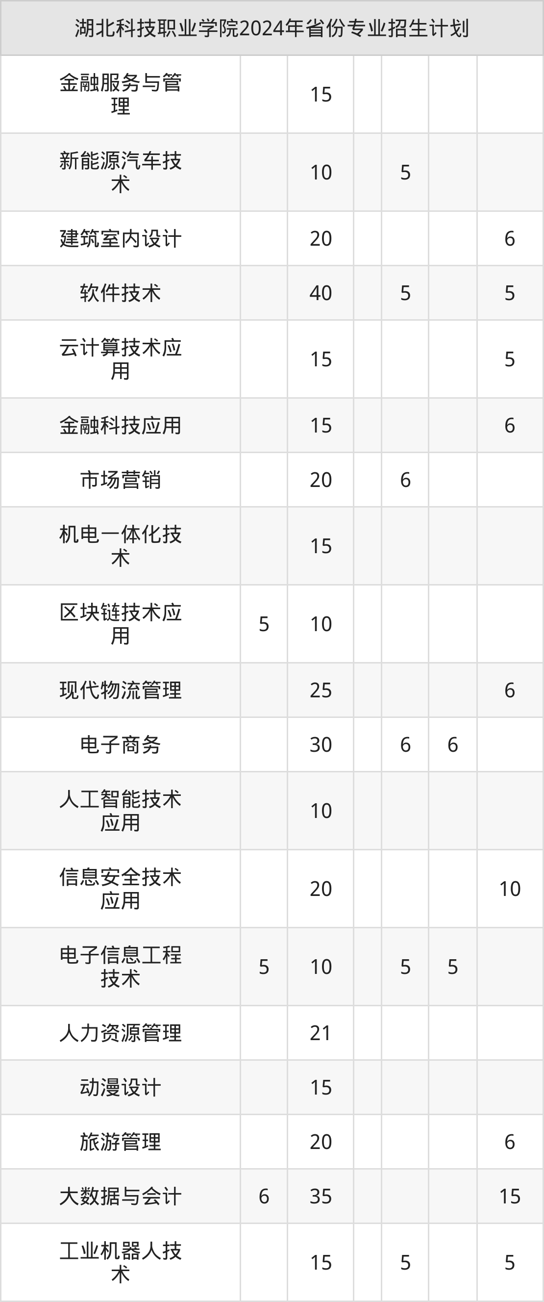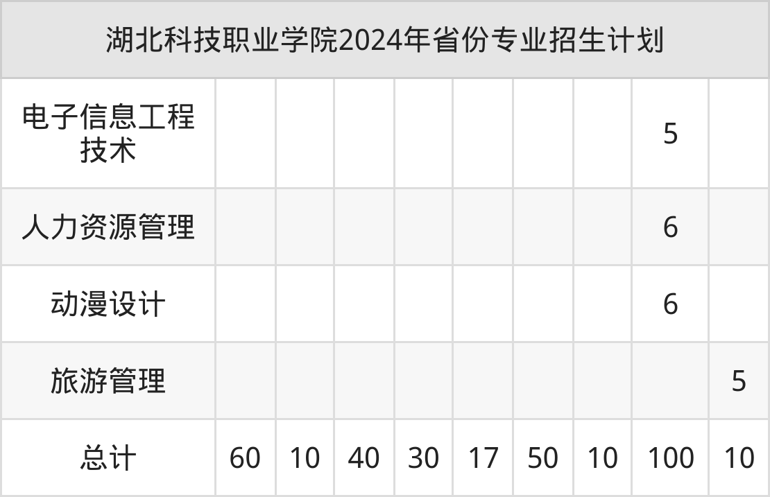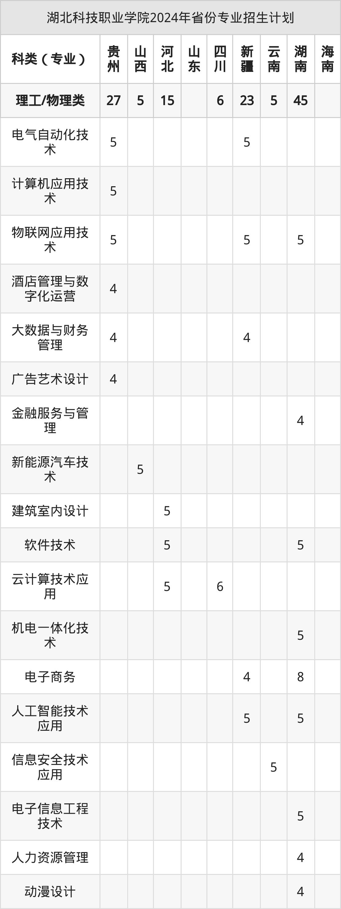 2025年湖北科技职业学院专科招生计划待公布,下面附上2024年数据,暂供参考: