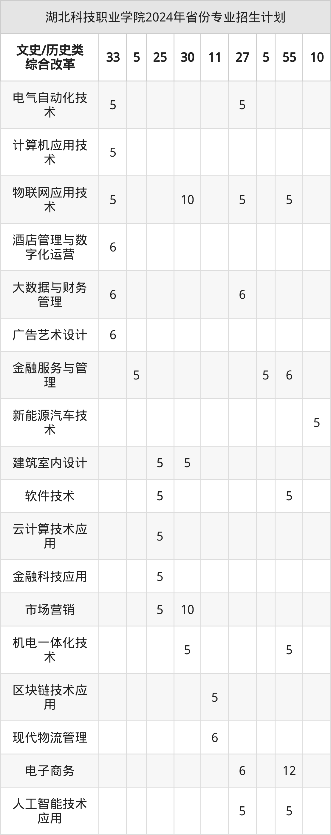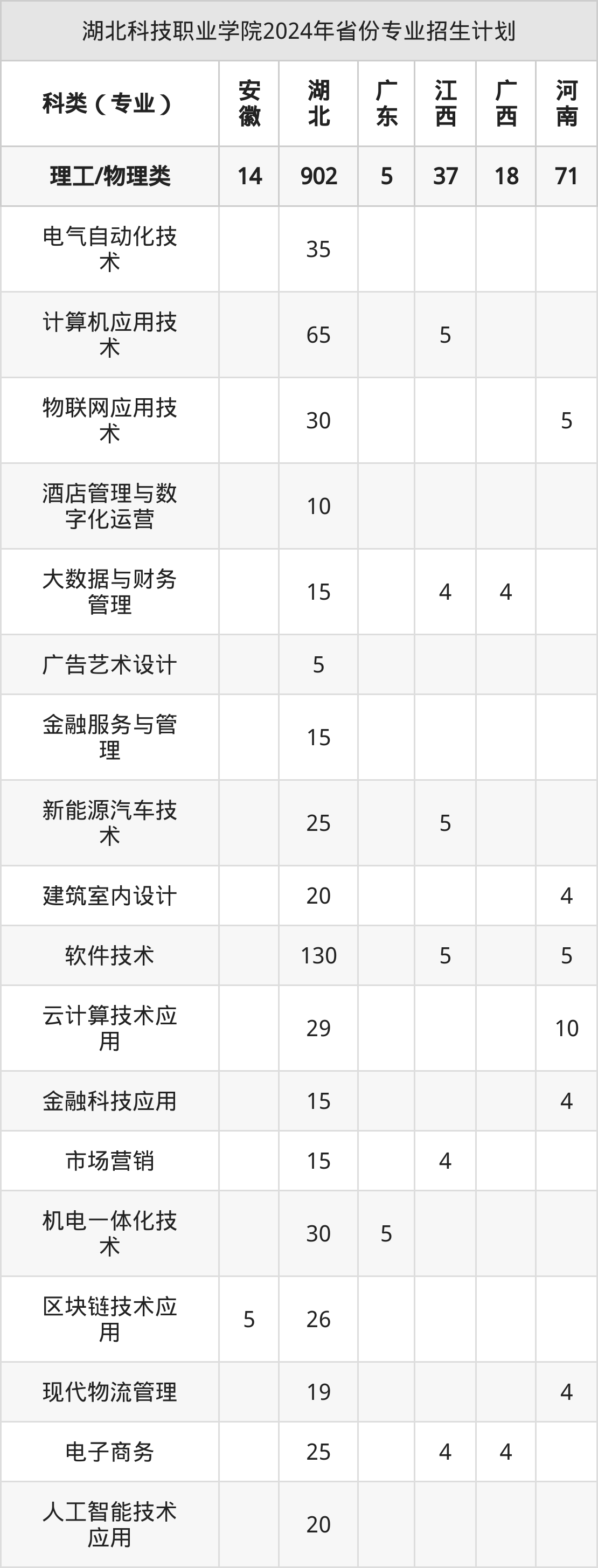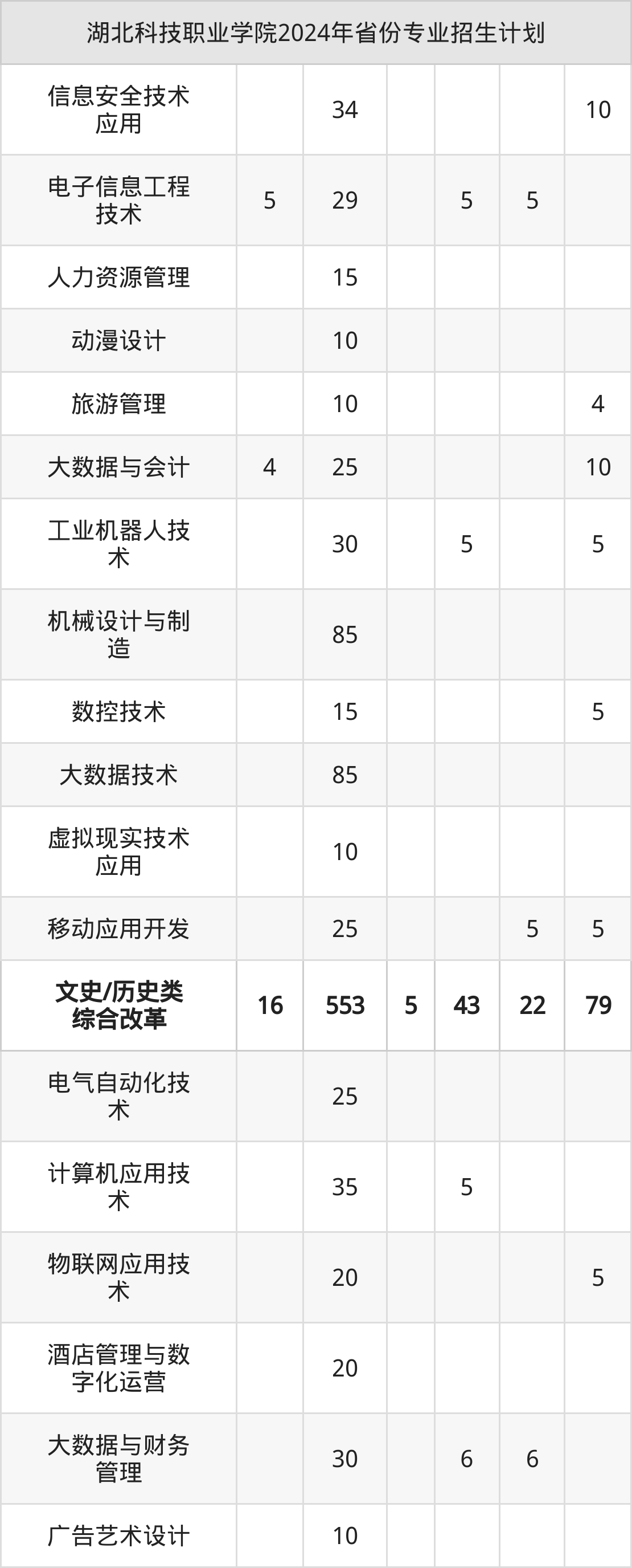 2025年湖北科技职业学院专科招生计划待公布,下面附上2024年数据,暂供参考: