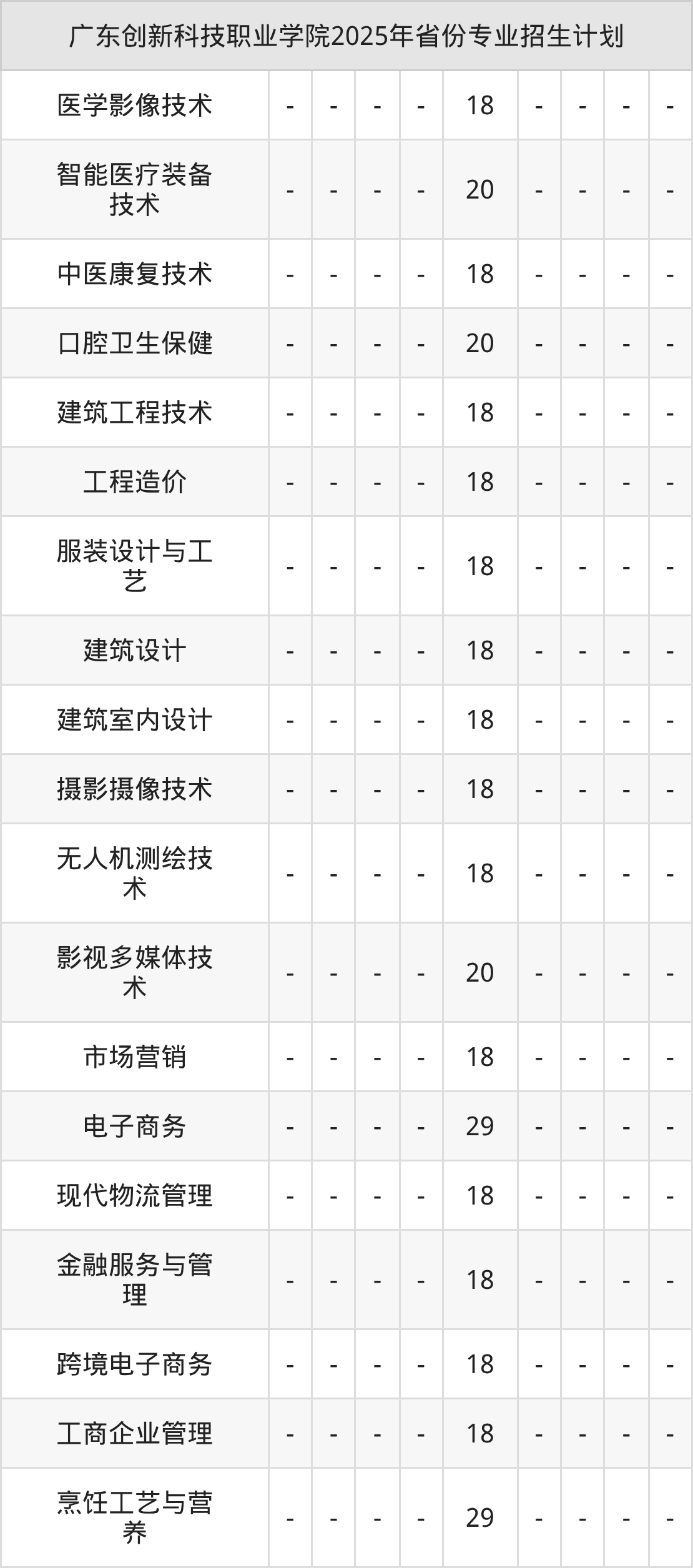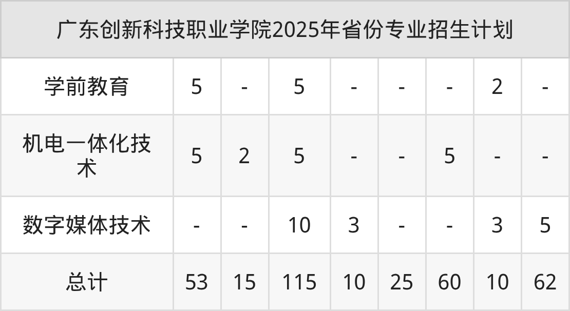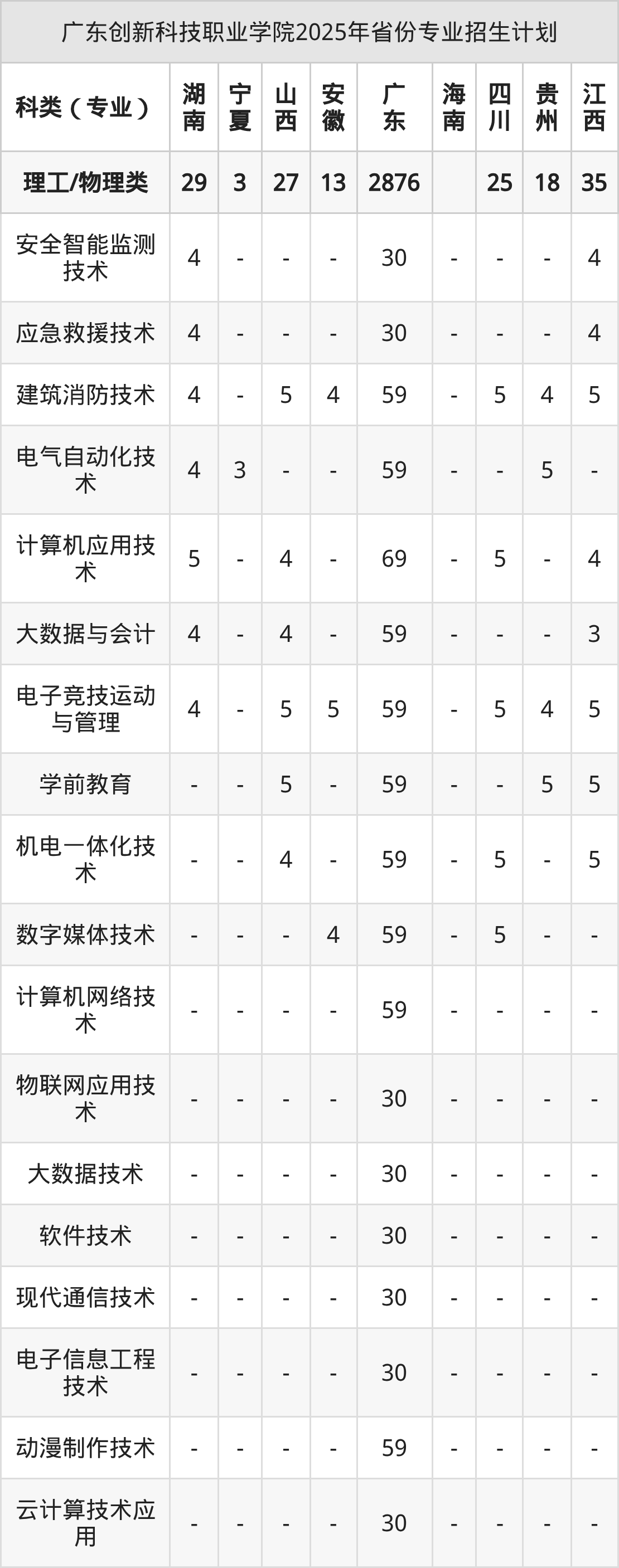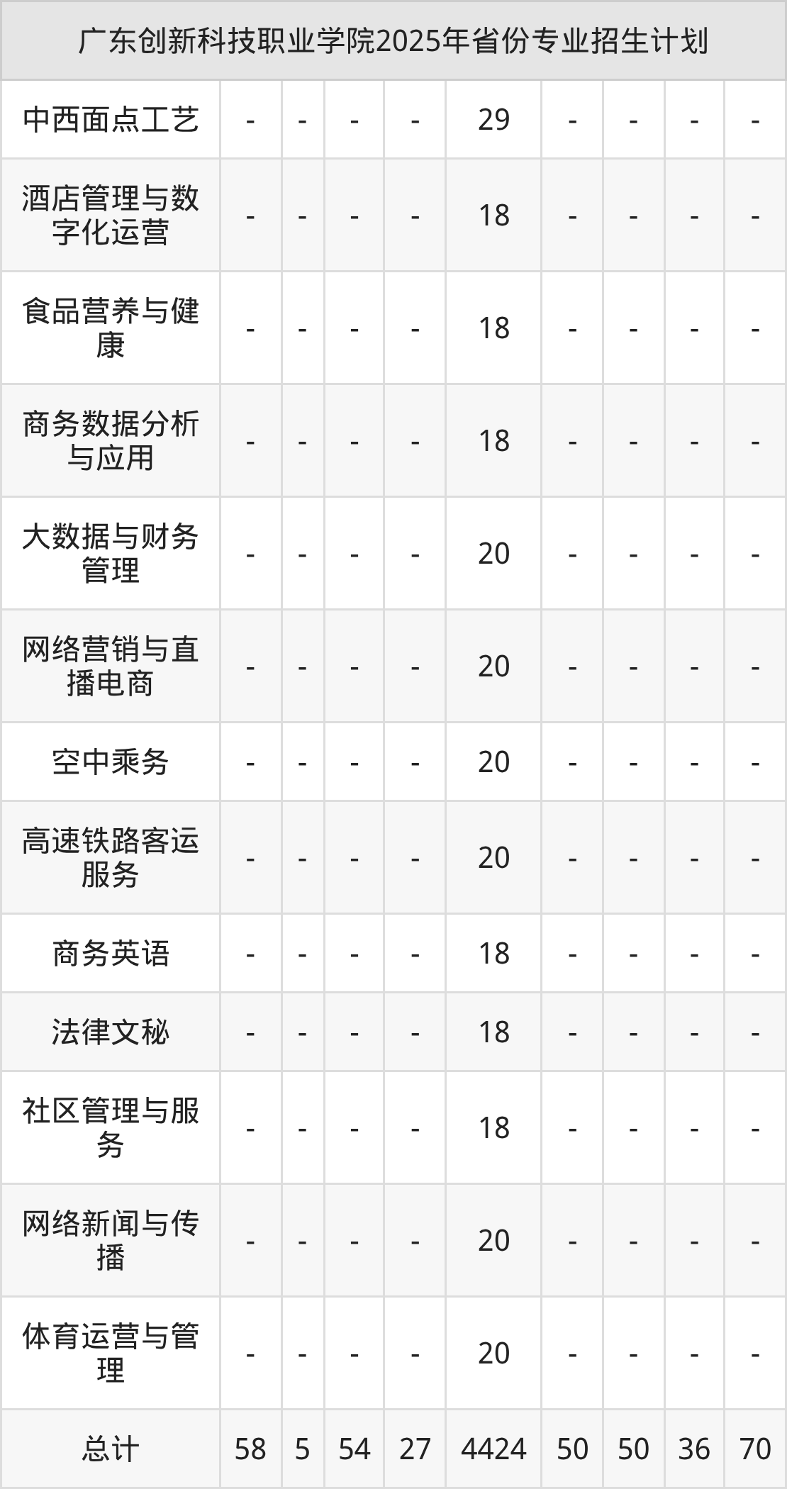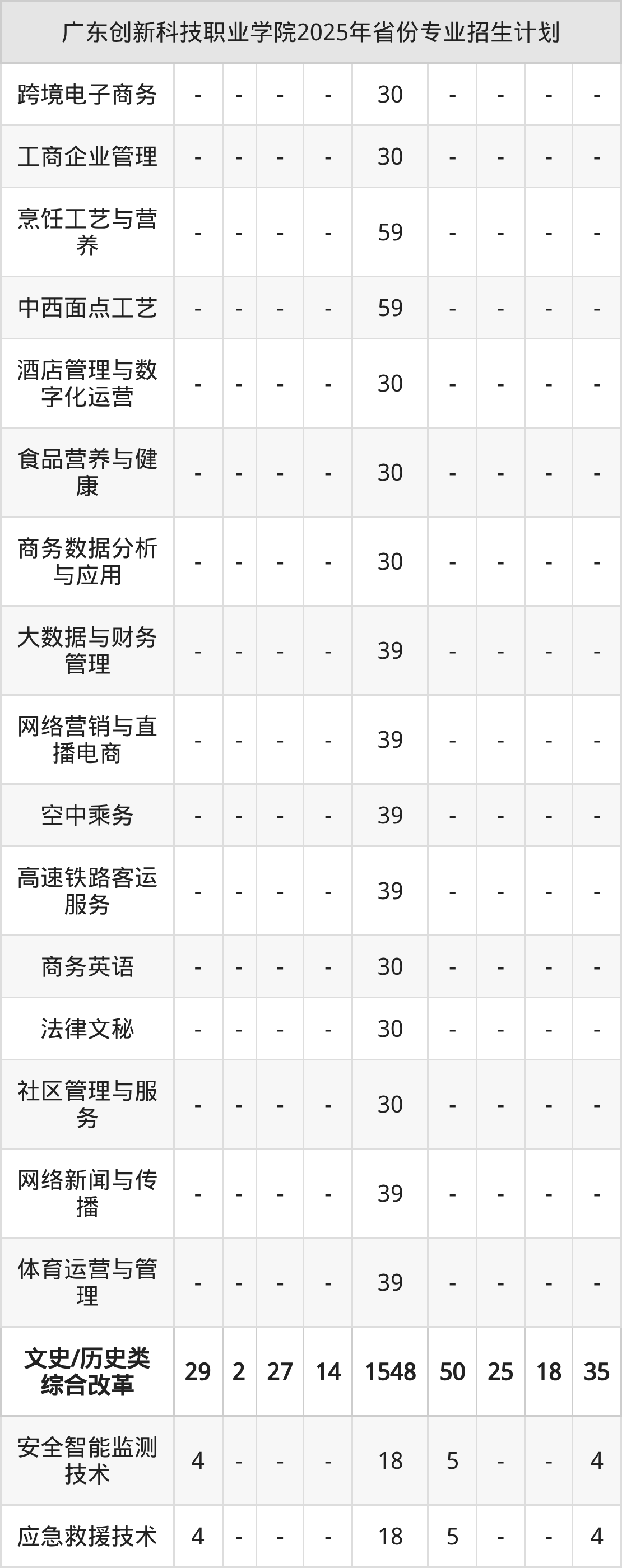 2026年广东创新科技职业学院专科招生计划待公布,下面附上2025年数据,暂供参考: