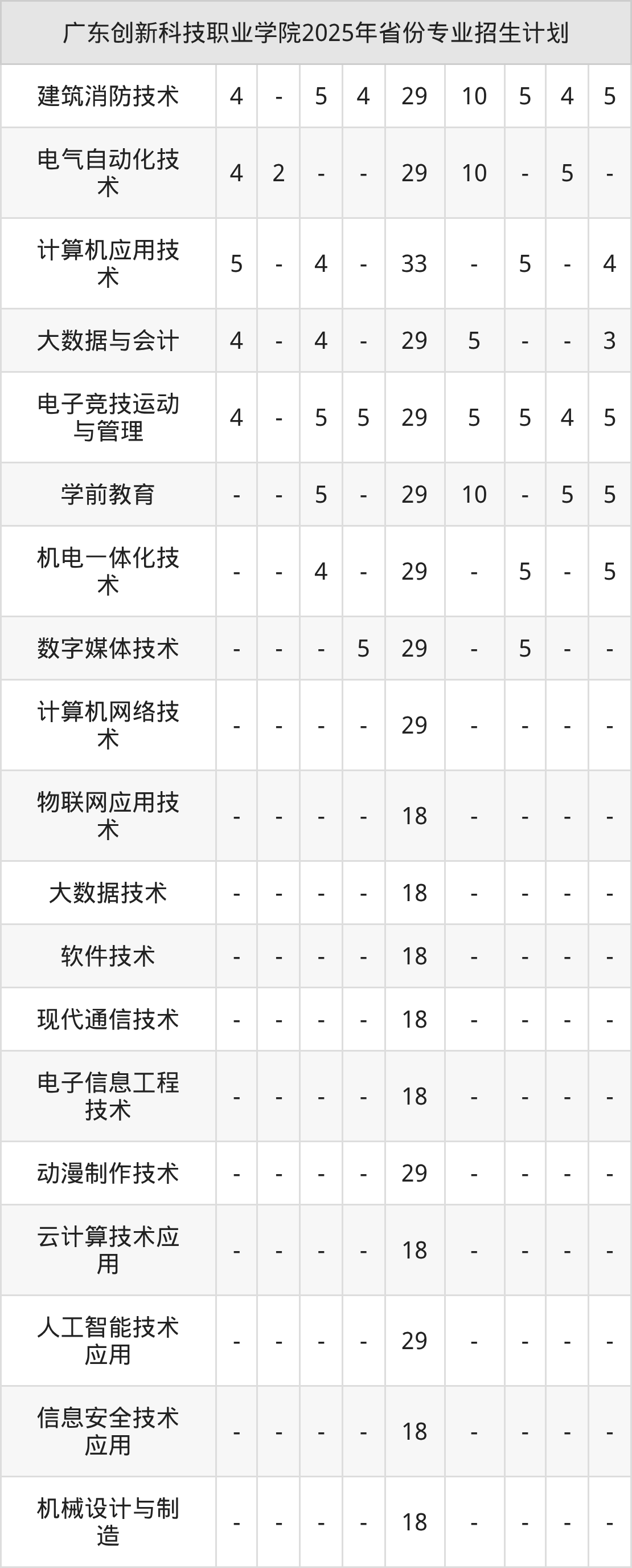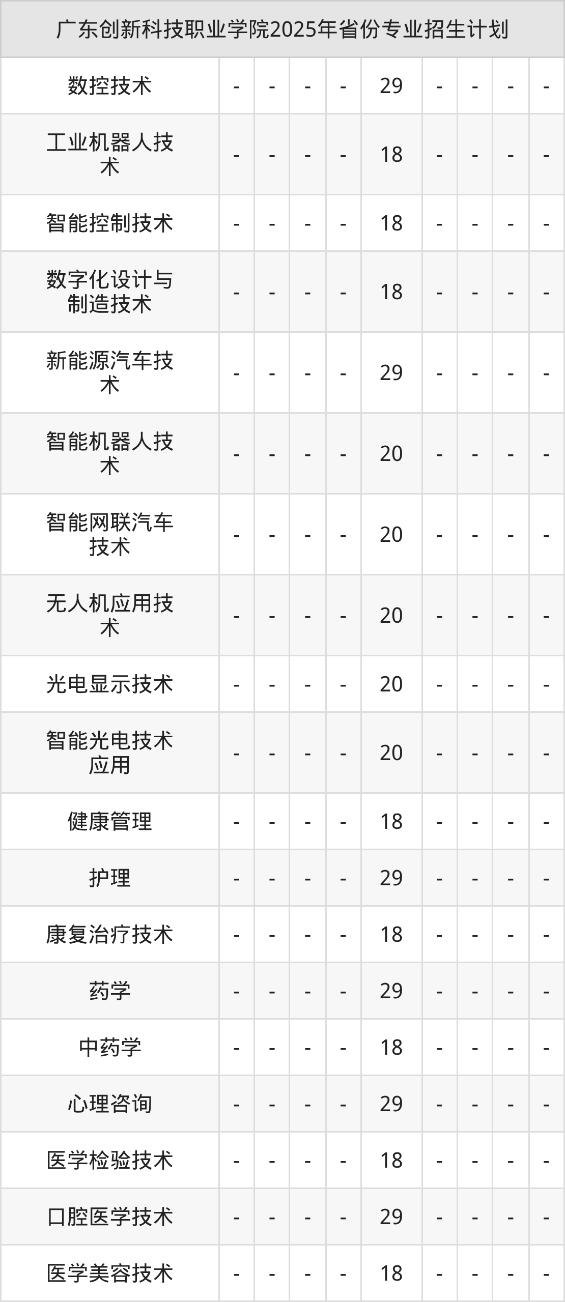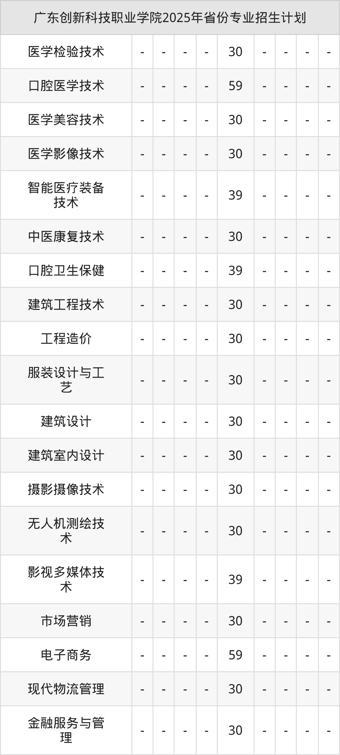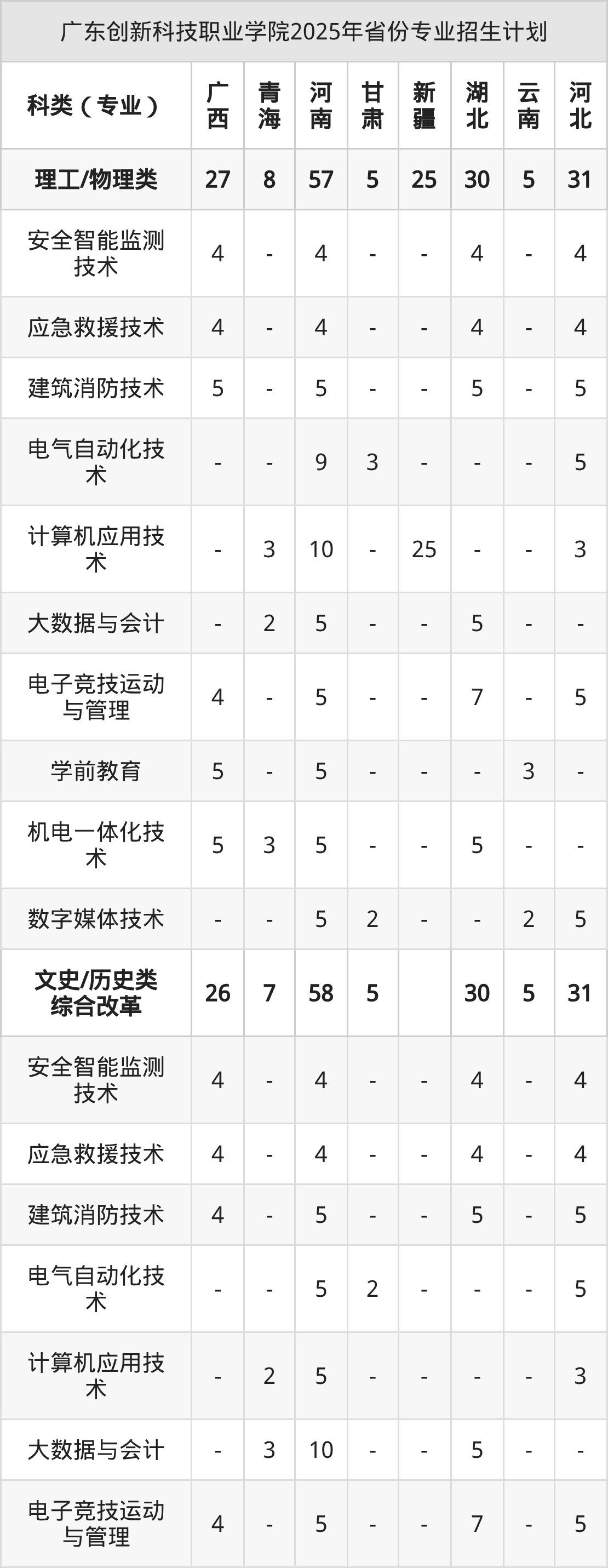 2026年广东创新科技职业学院专科招生计划待公布,下面附上2025年数据,暂供参考: