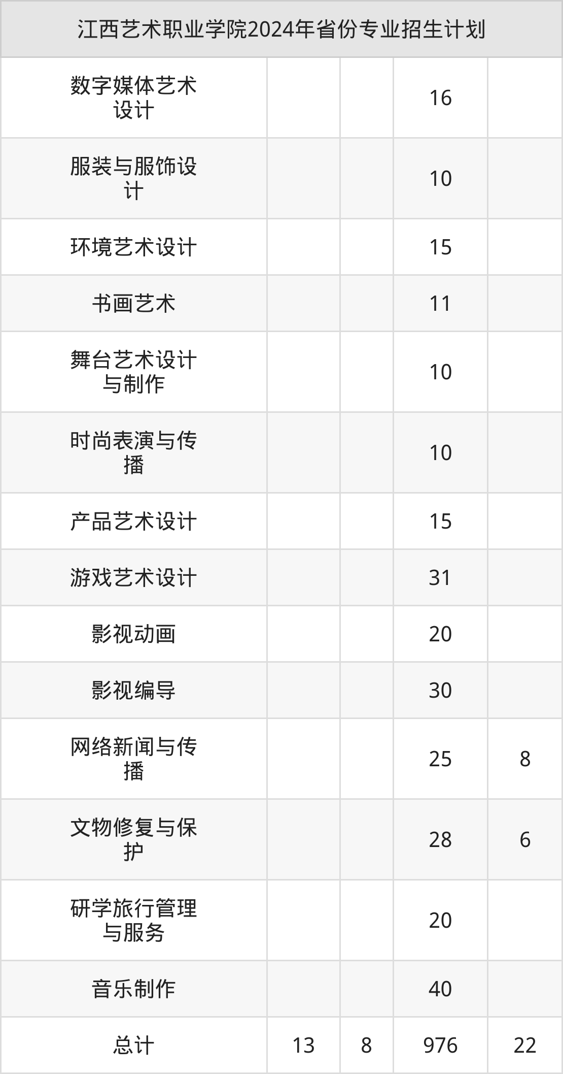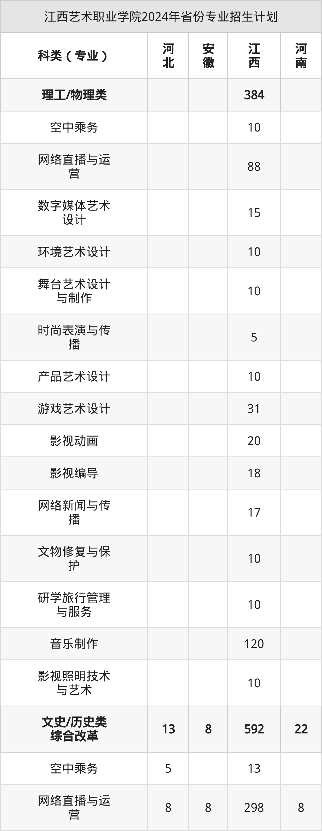 2025年江西艺术职业学院专科招生计划待公布,下面附上2024年数据,暂供参考: