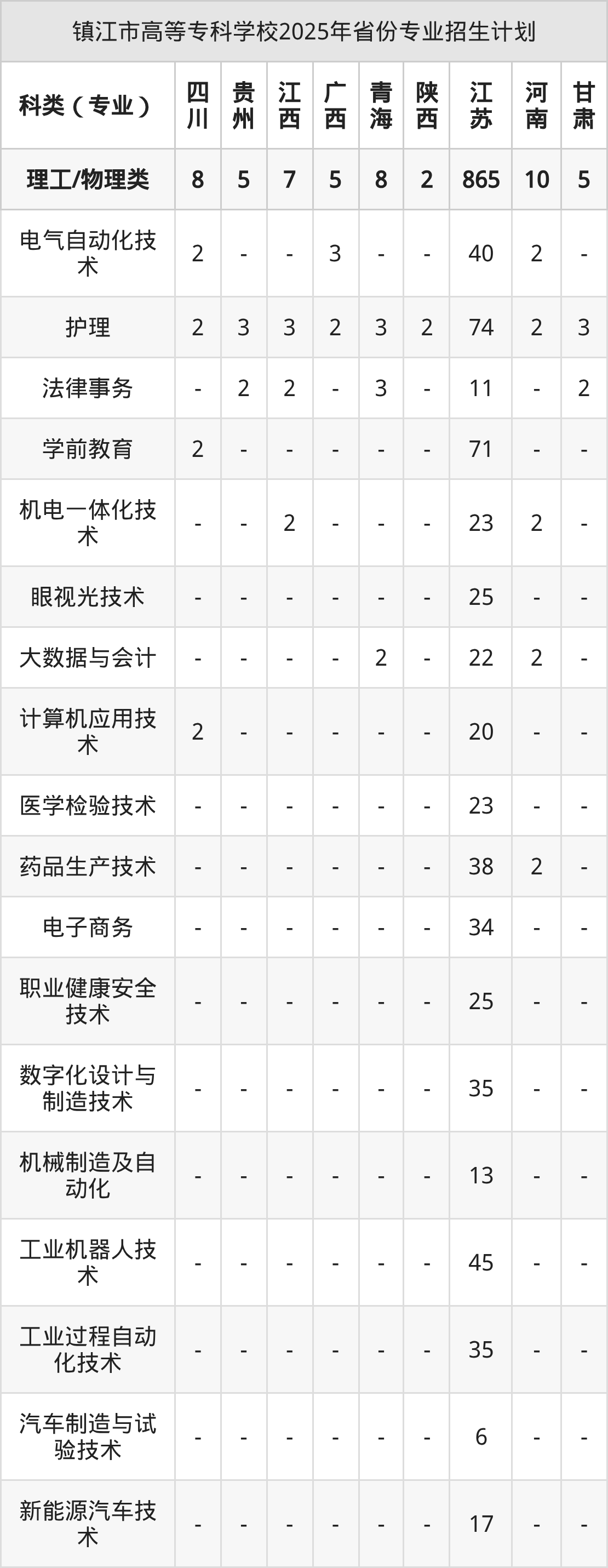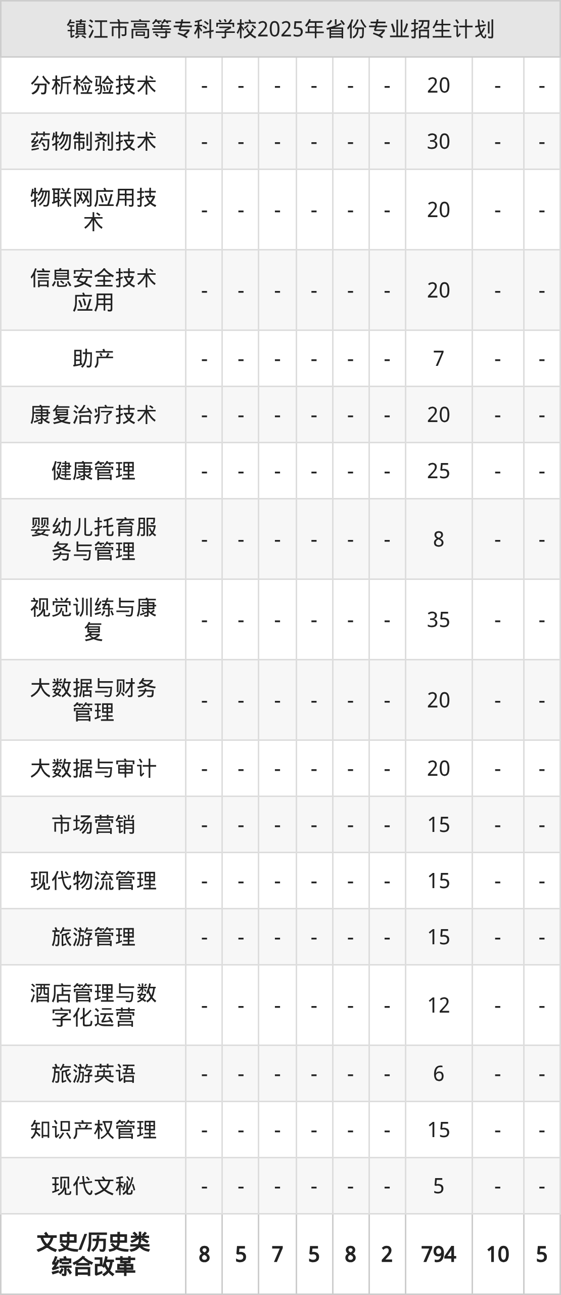2026年镇江市高等专科学校专科招生计划待公布,下面附上2025年数据,暂供参考: