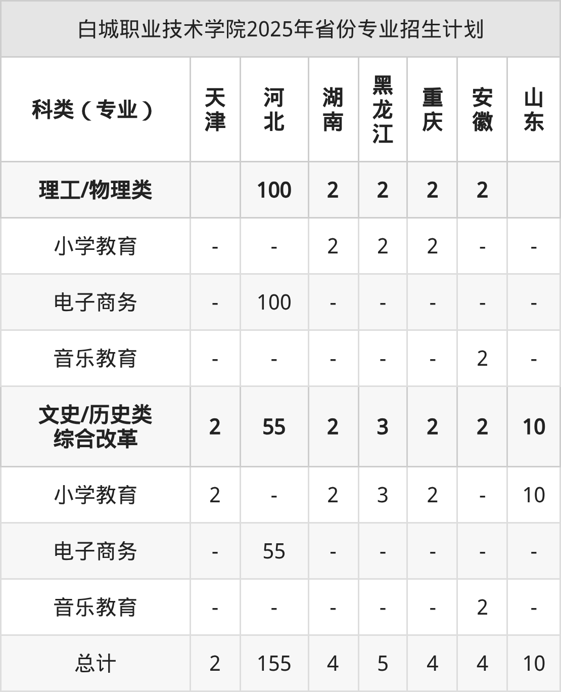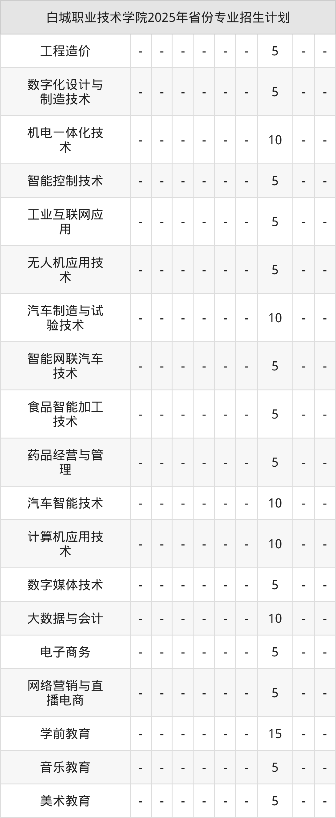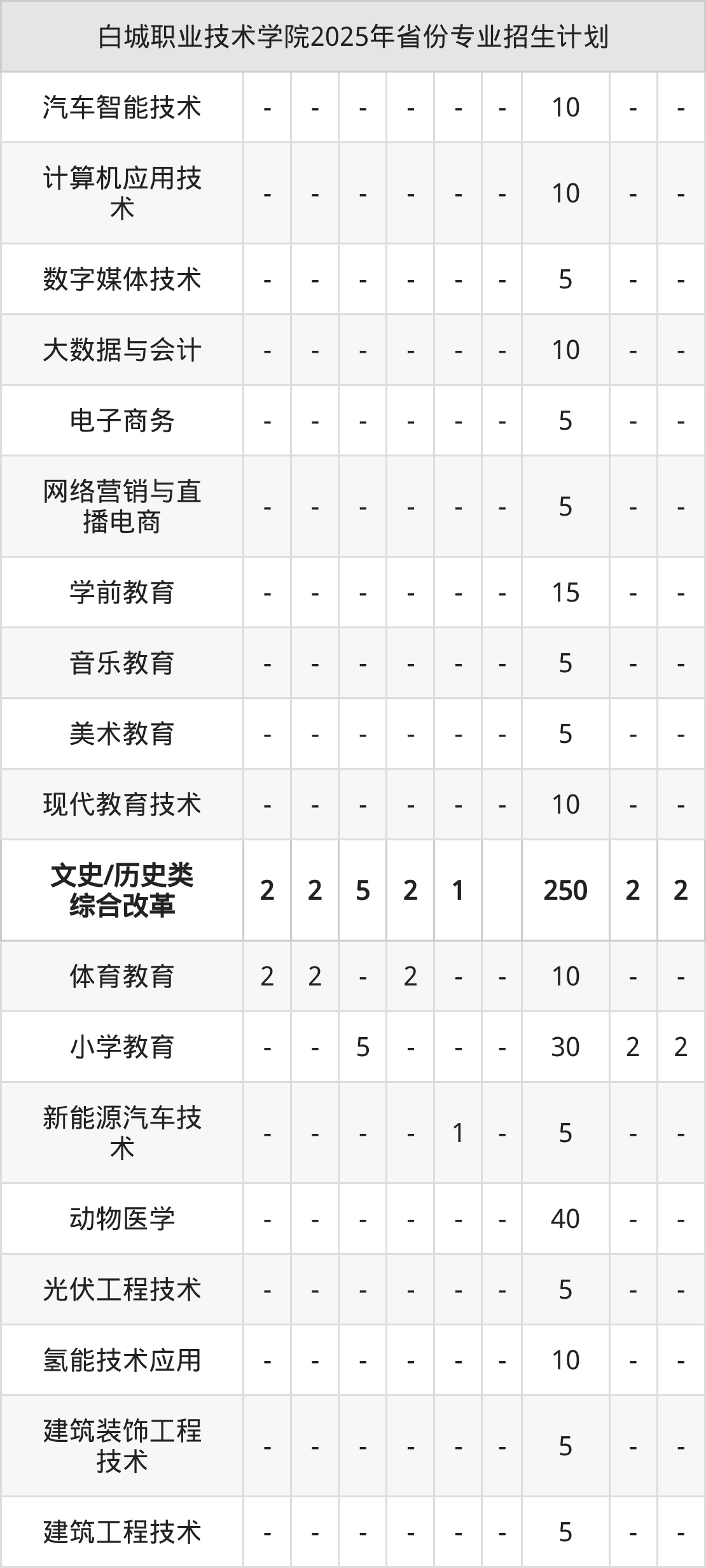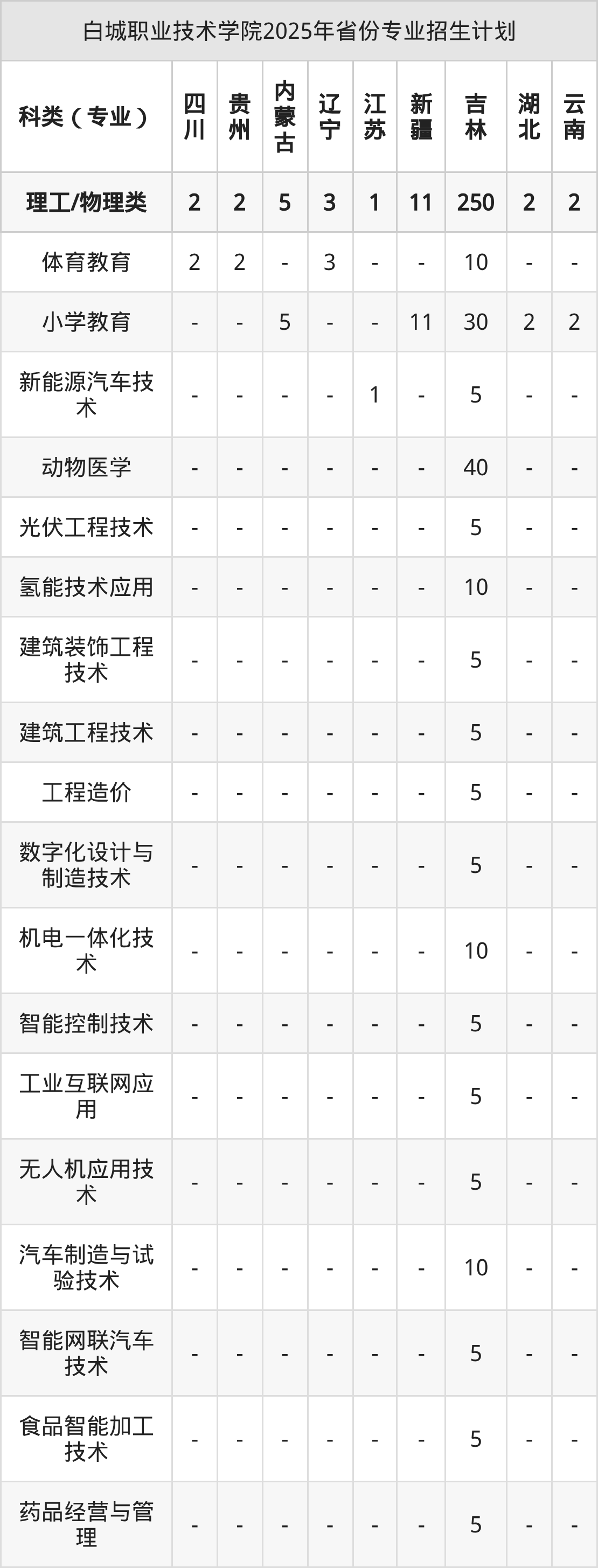 2026年白城职业技术学院专科招生计划待公布,下面附上2025年数据,暂供参考:
