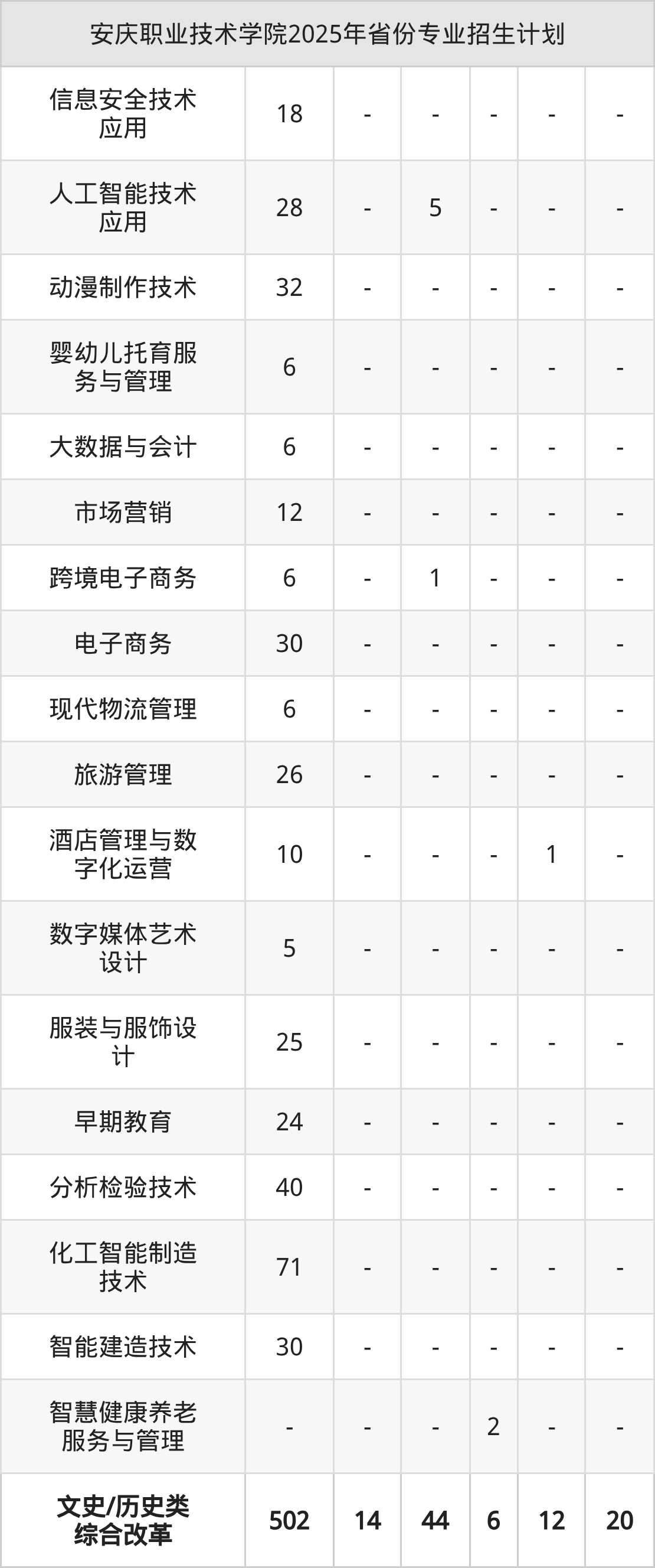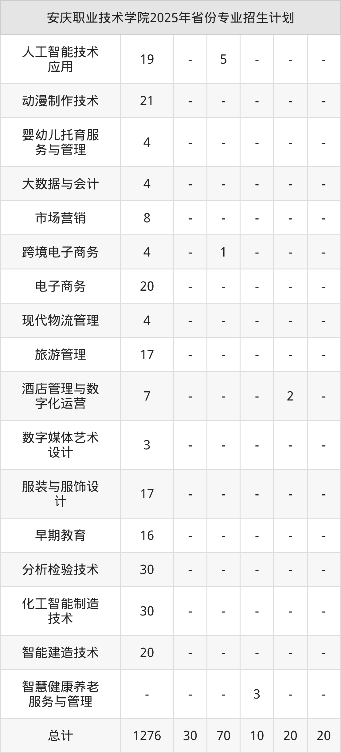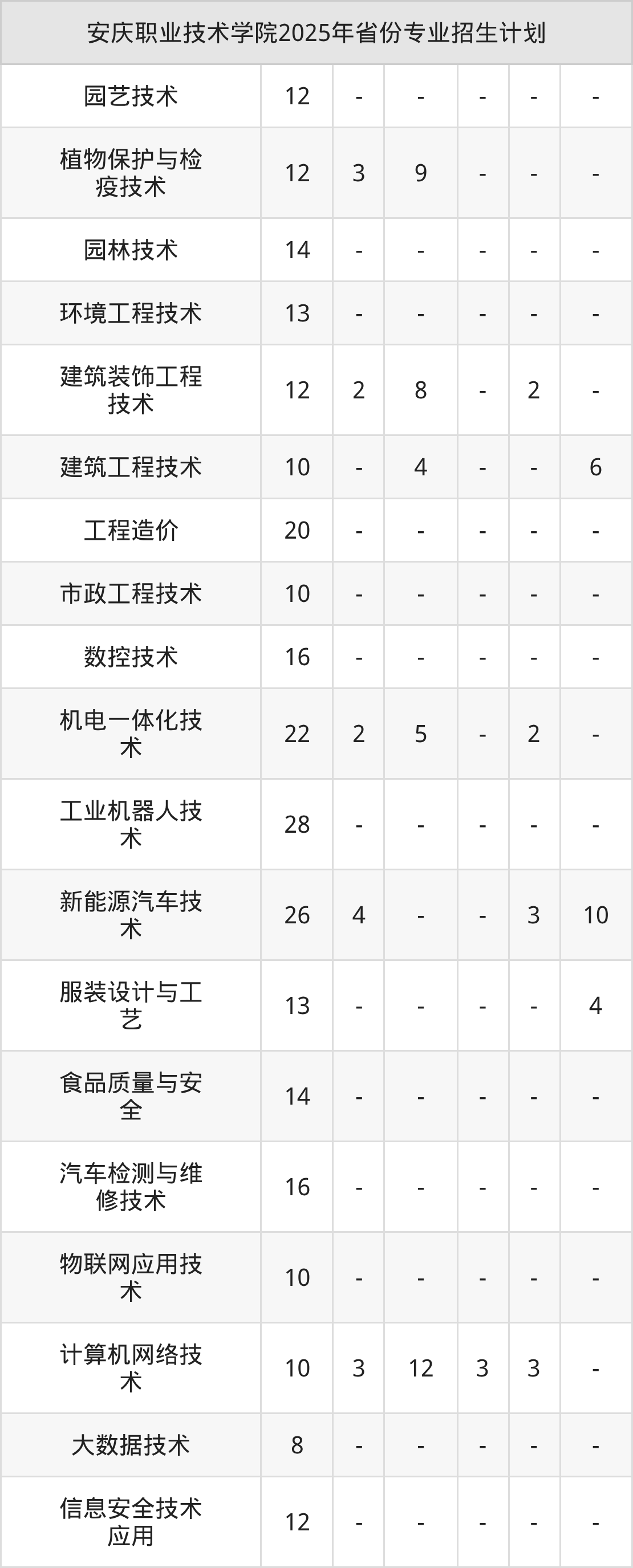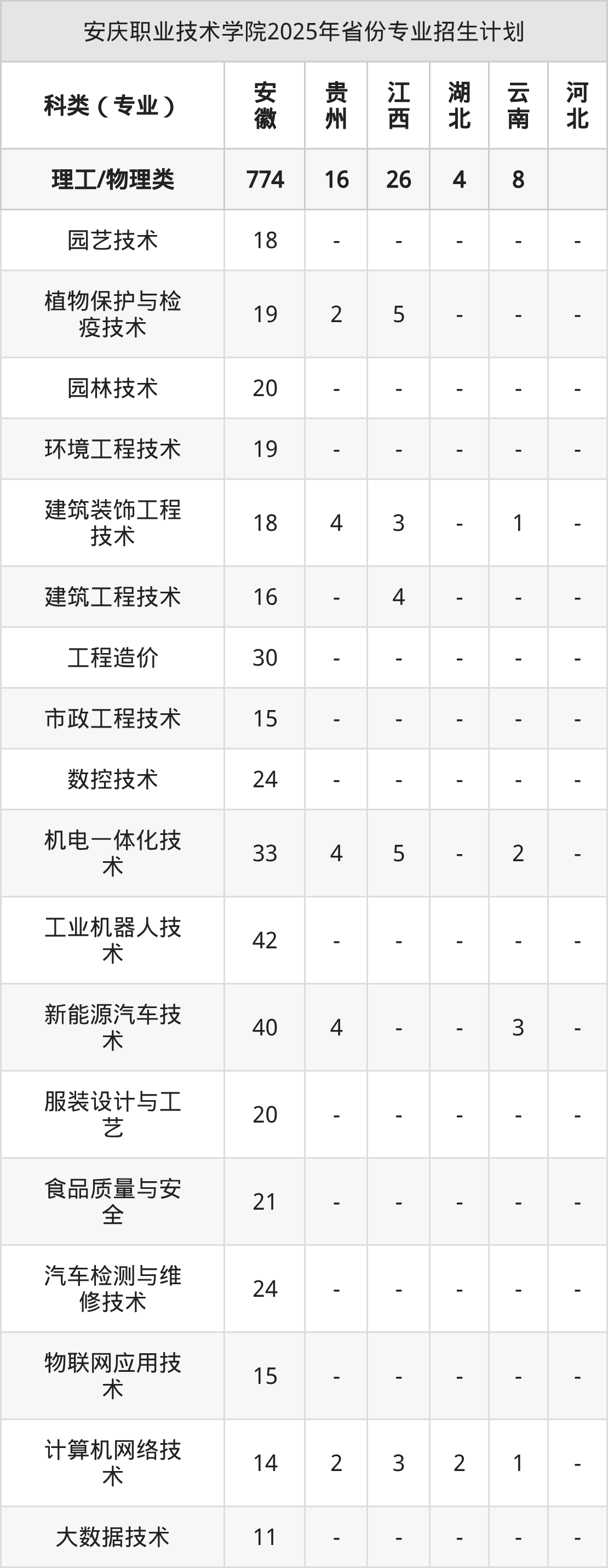 2026年安庆职业技术学院专科招生计划待公布,下面附上2025年数据,暂供参考: