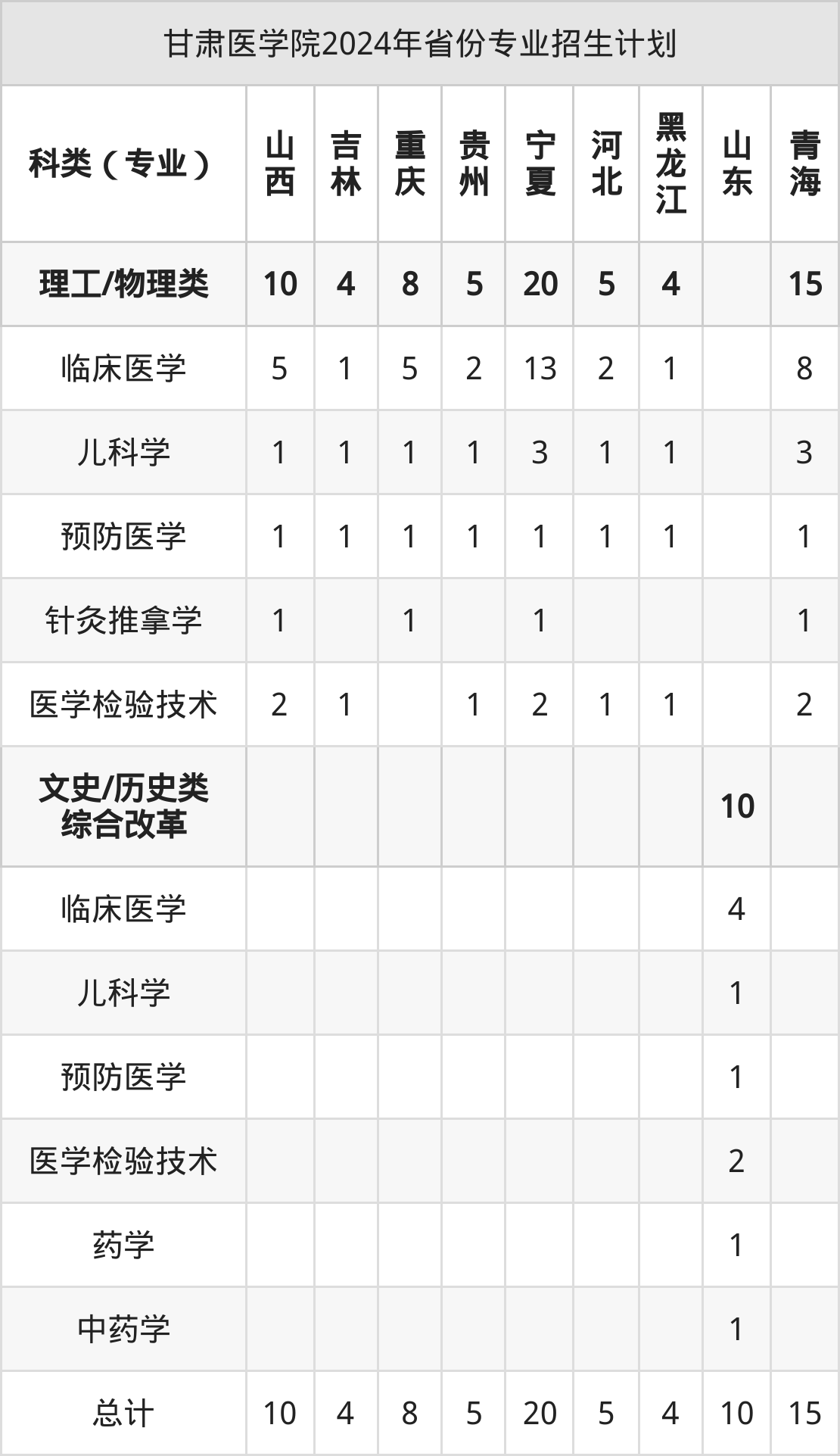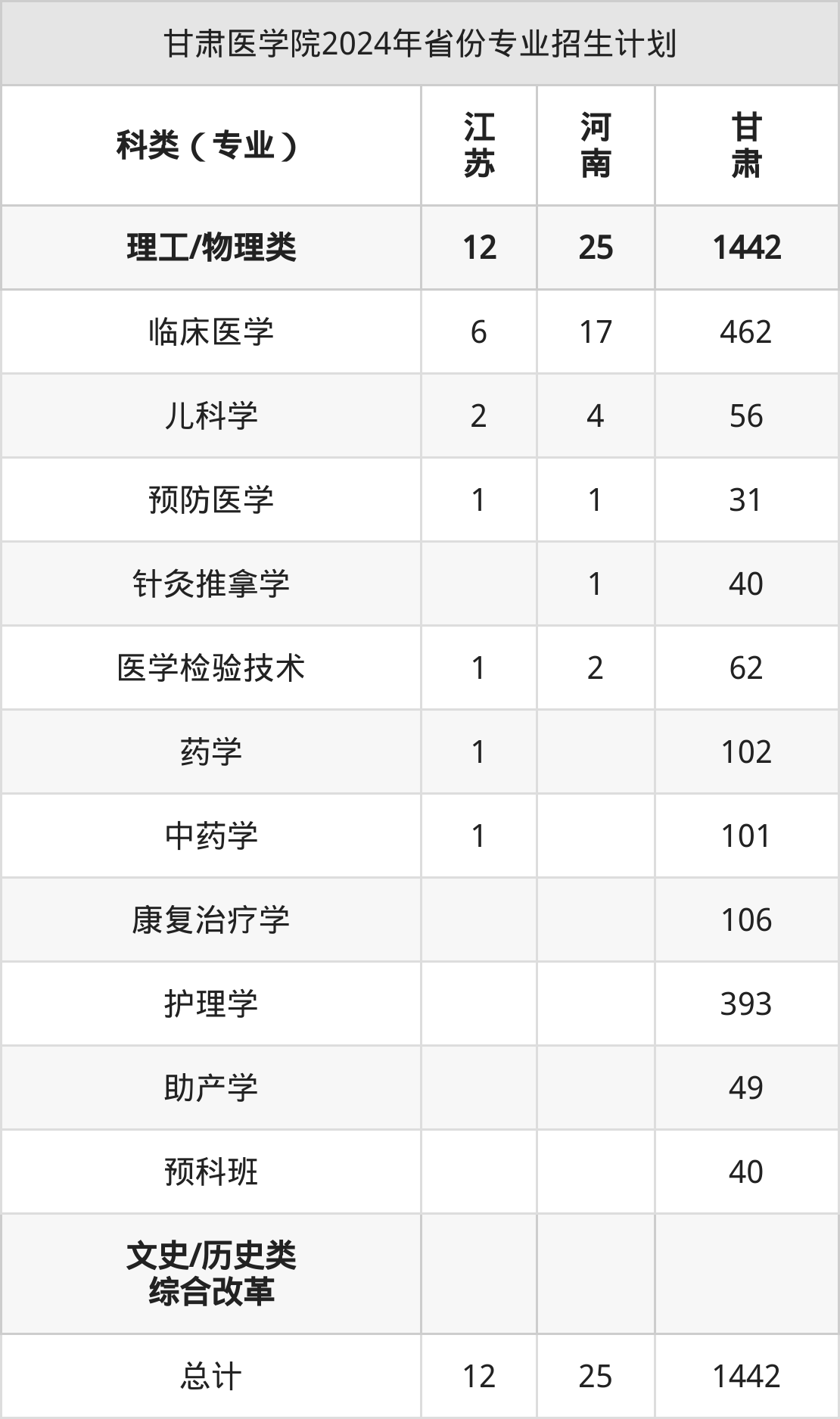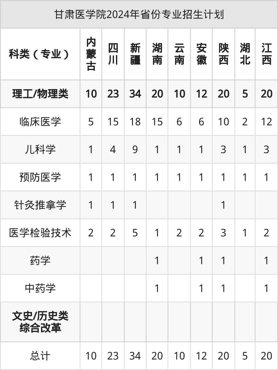 2025年甘肃医学院本科招生计划待公布,下面附上2024年数据,暂供参考: