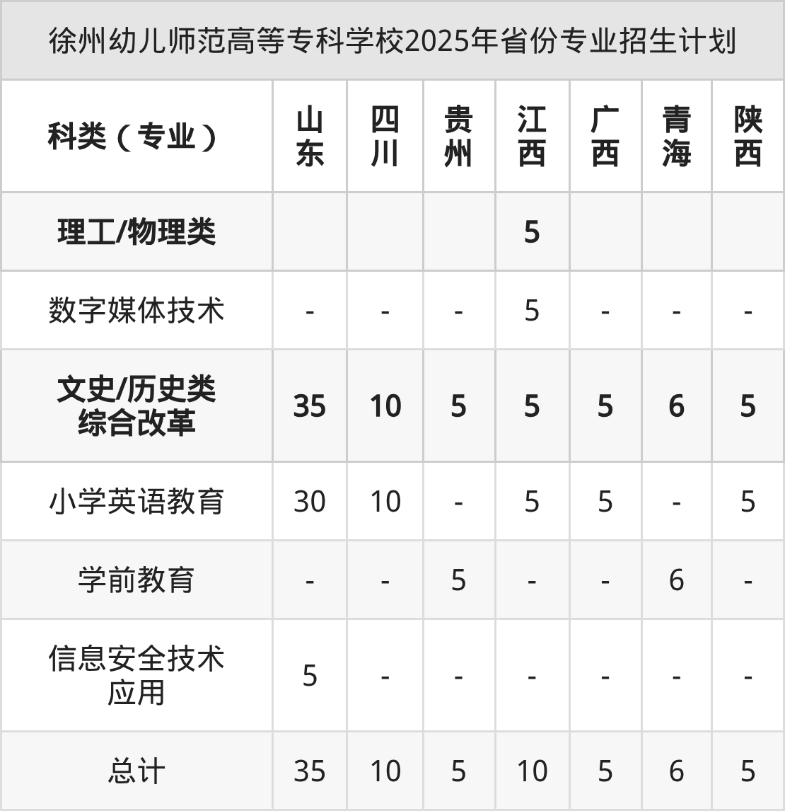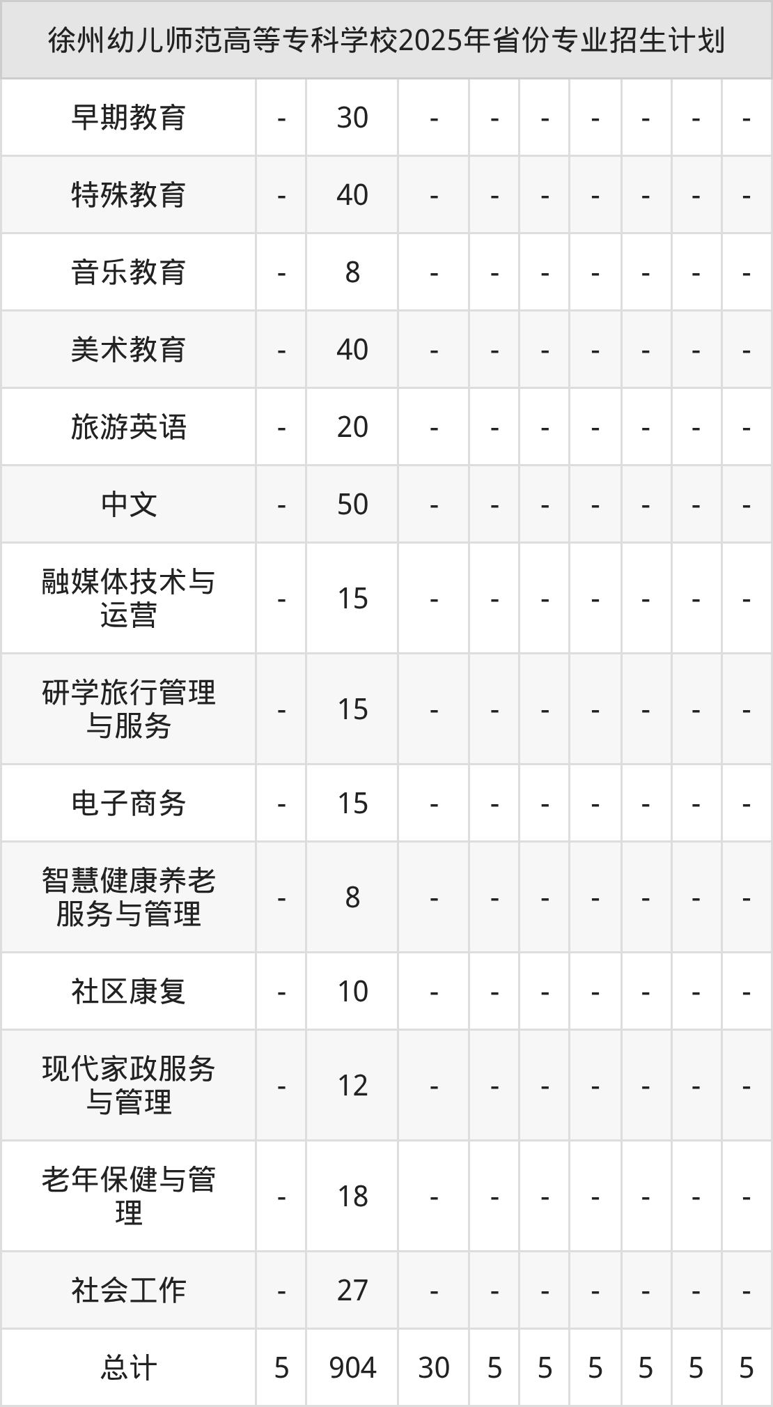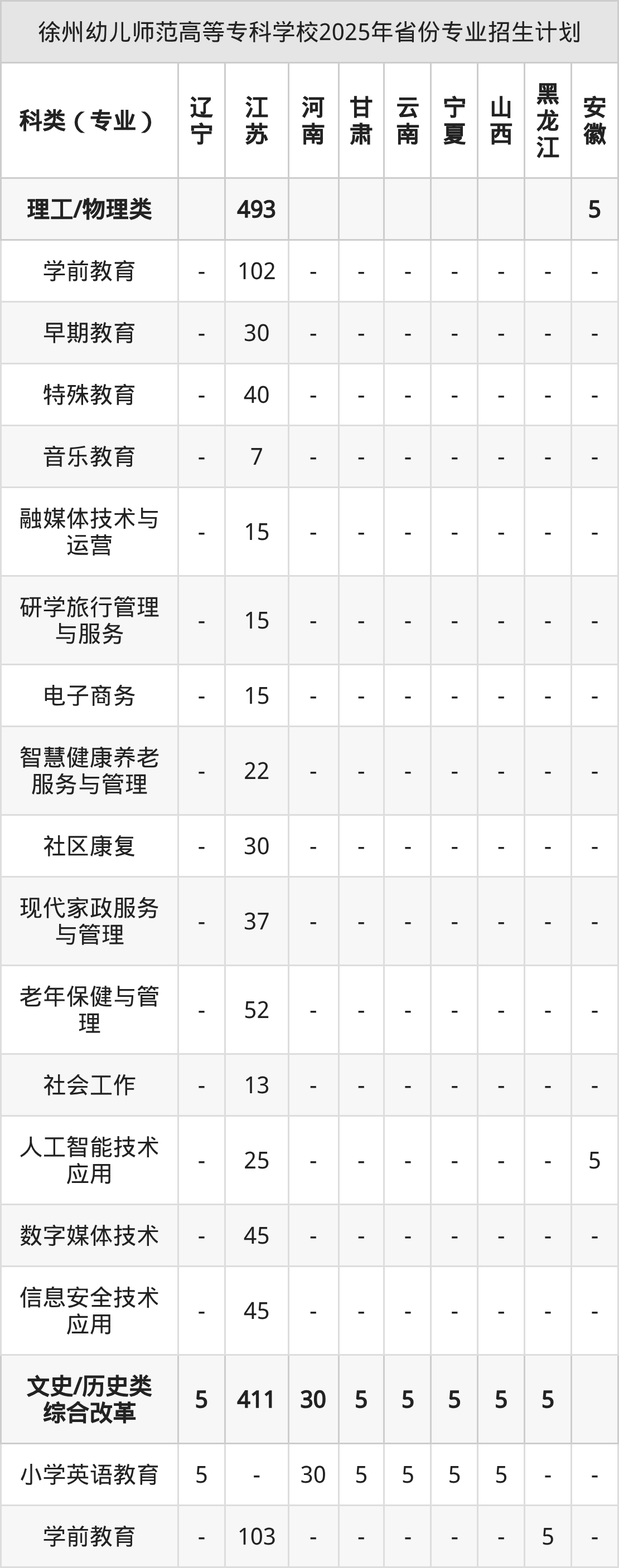 2026年徐州幼儿师范高等专科学校专科招生计划待公布,下面附上2025年数据,暂供参考: