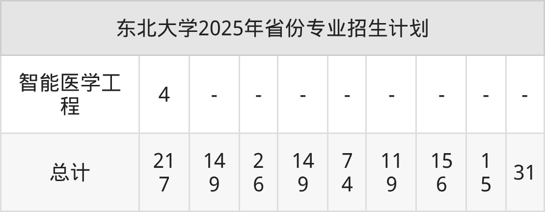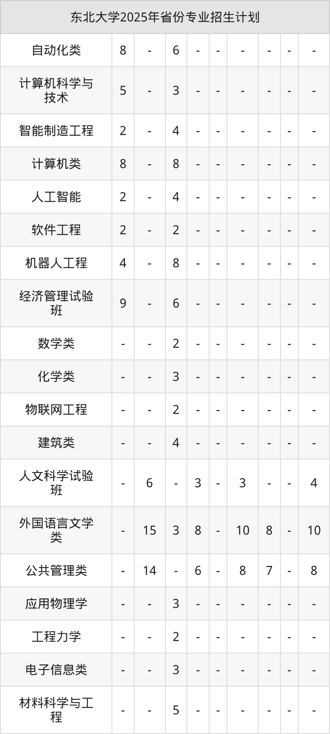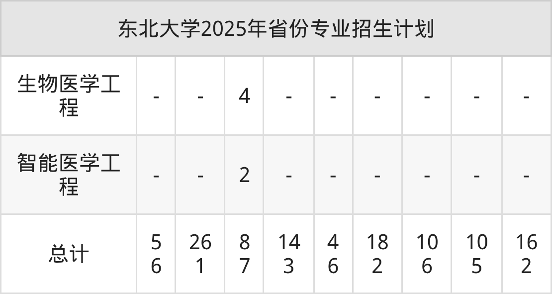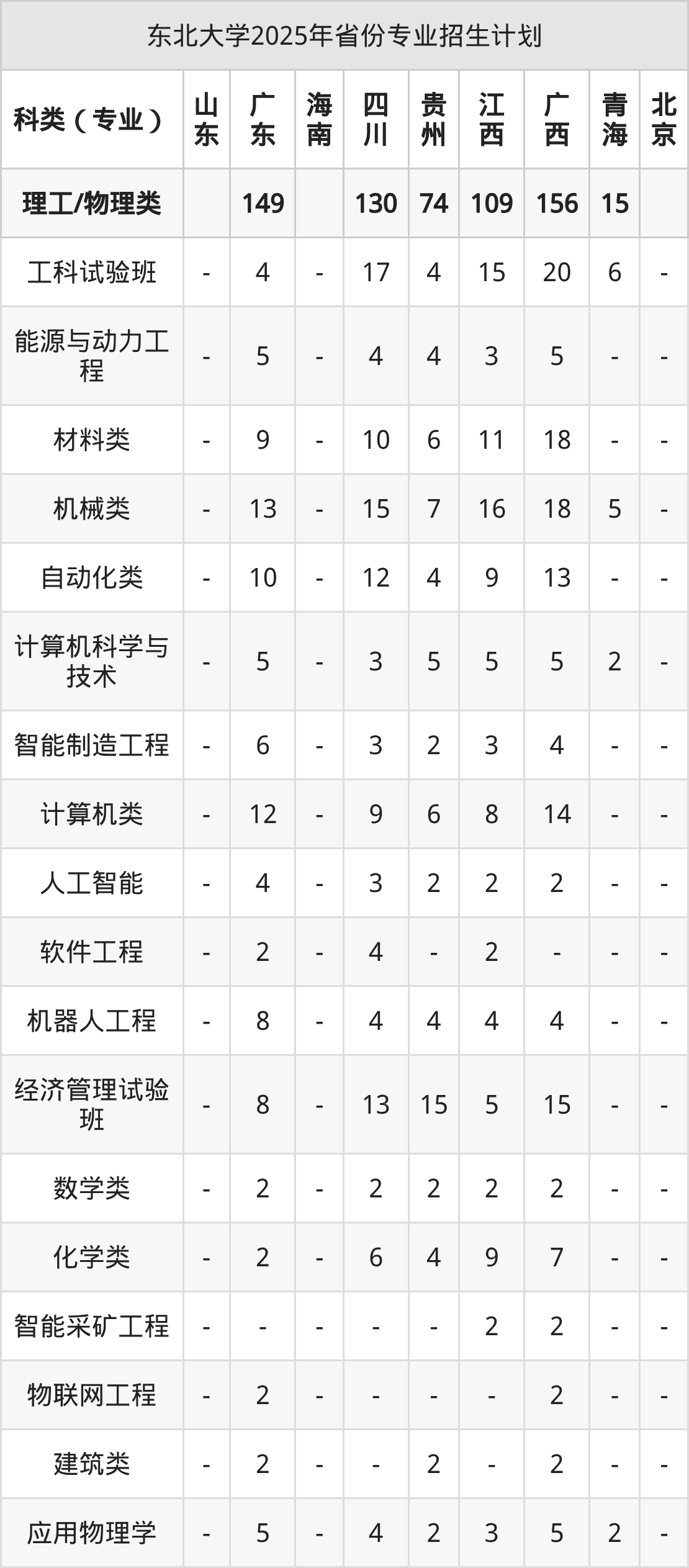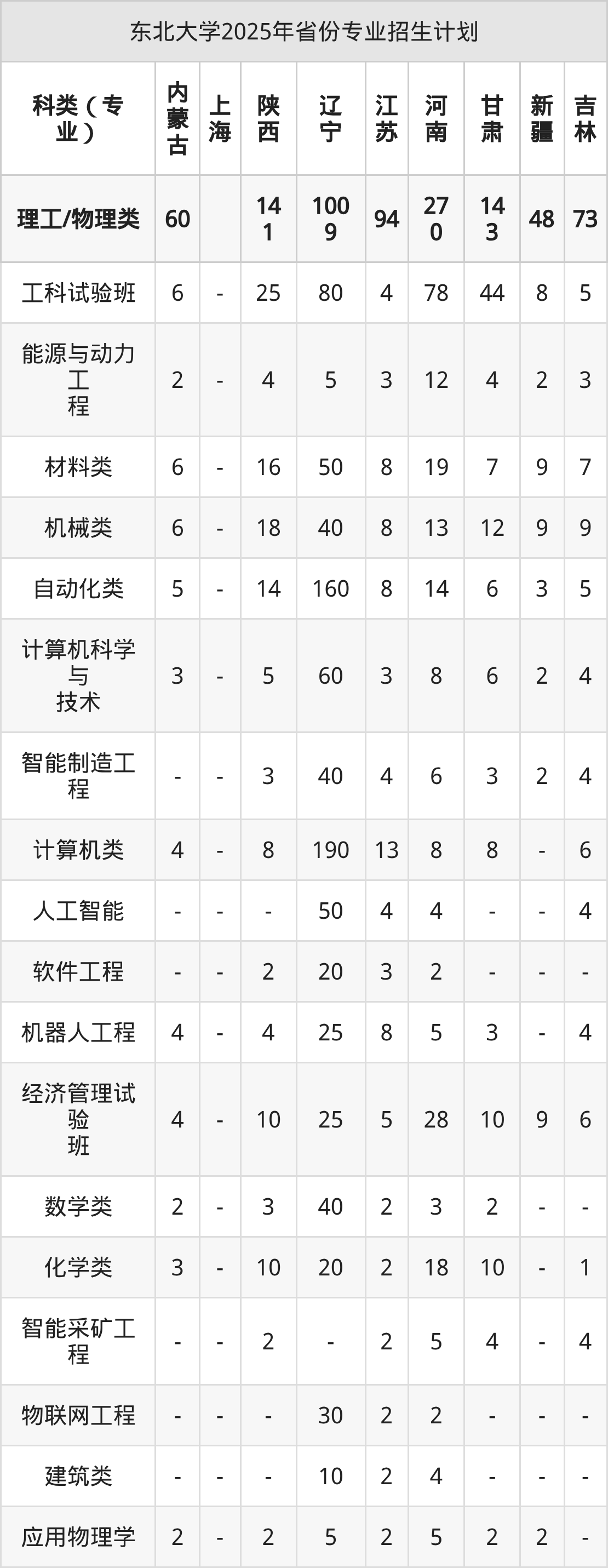 2026年东北大学本科招生计划待公布,下面附上2025年数据,暂供参考: