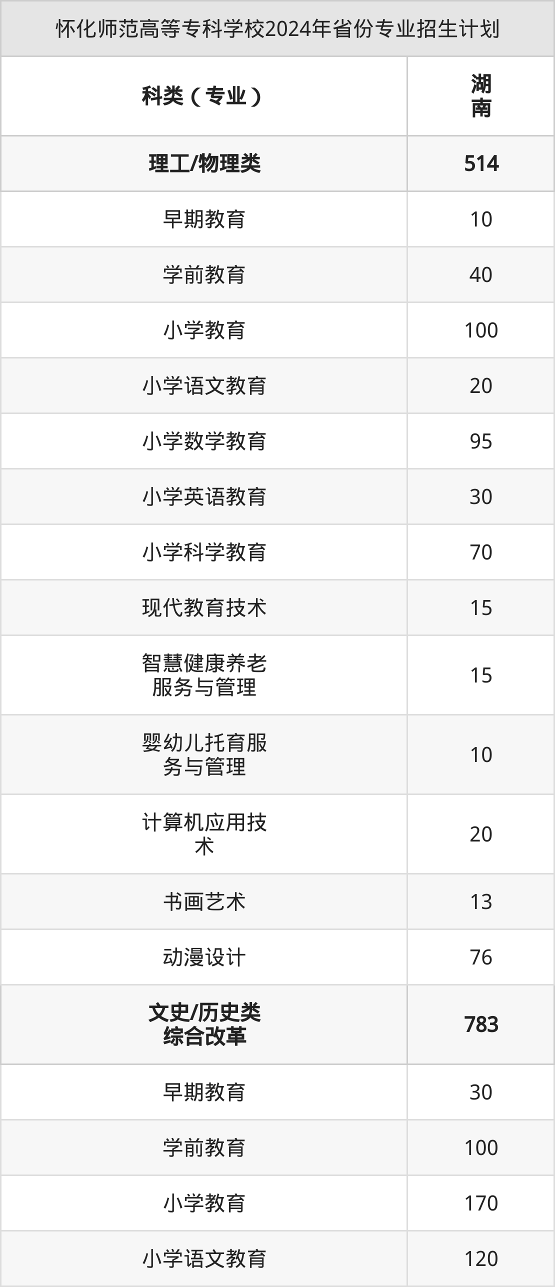 2025年怀化师范高等专科学校专科招生计划待公布,下面附上2024年数据,暂供参考: