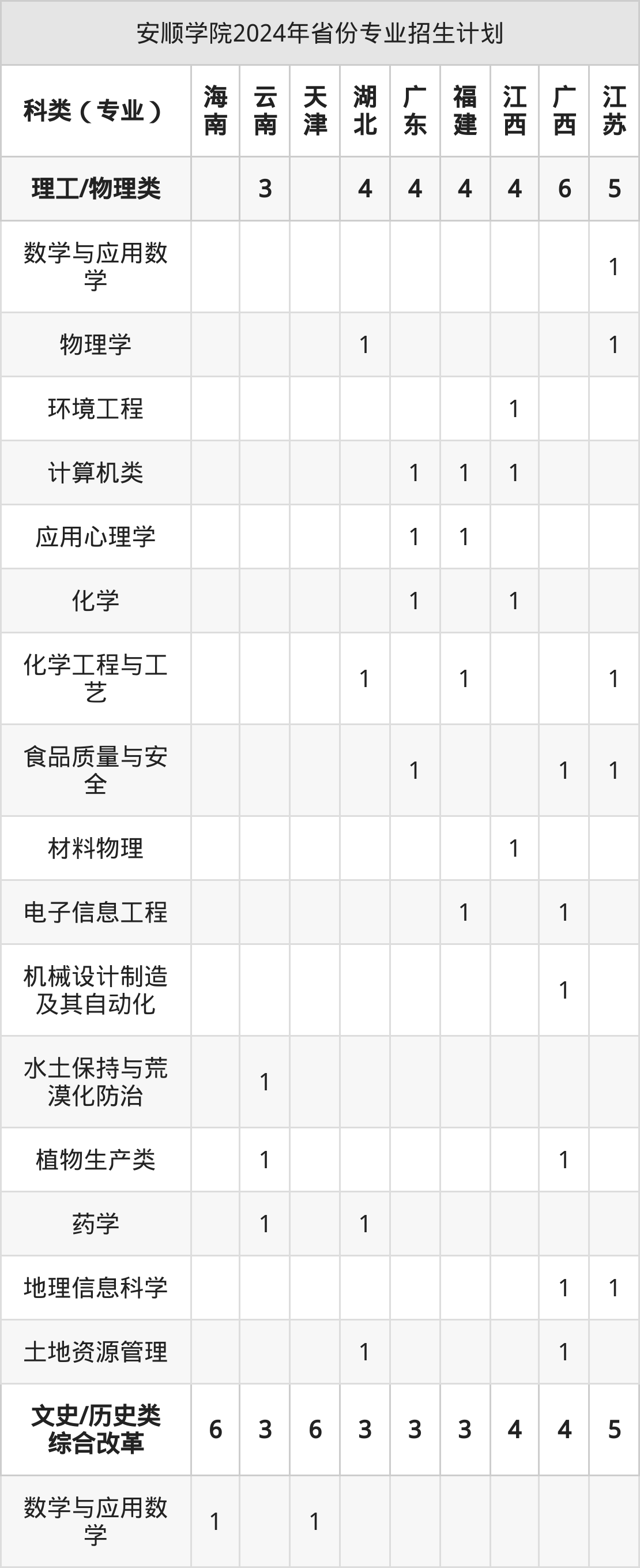2025年安顺学院本科招生计划待公布,下面附上2024年数据,暂供参考: