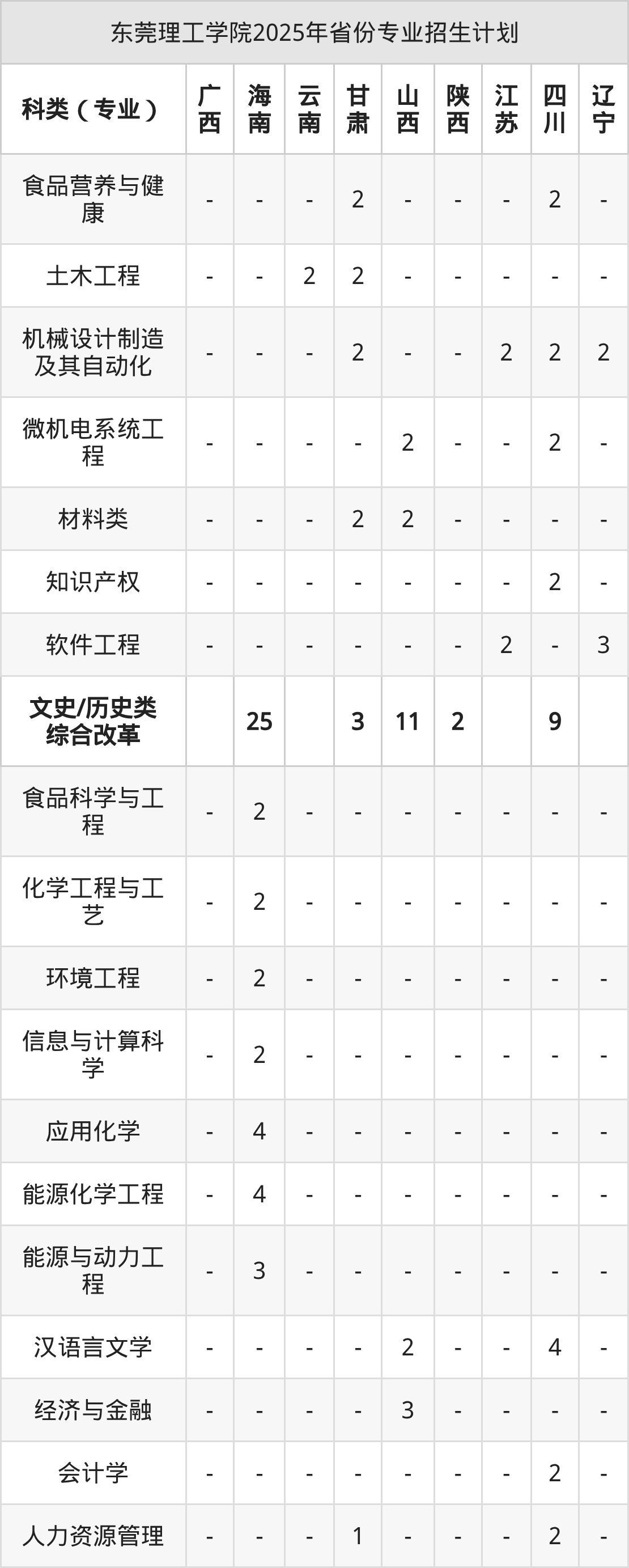 | 东莞理工学院2025年本科最低分汇总 | ||||