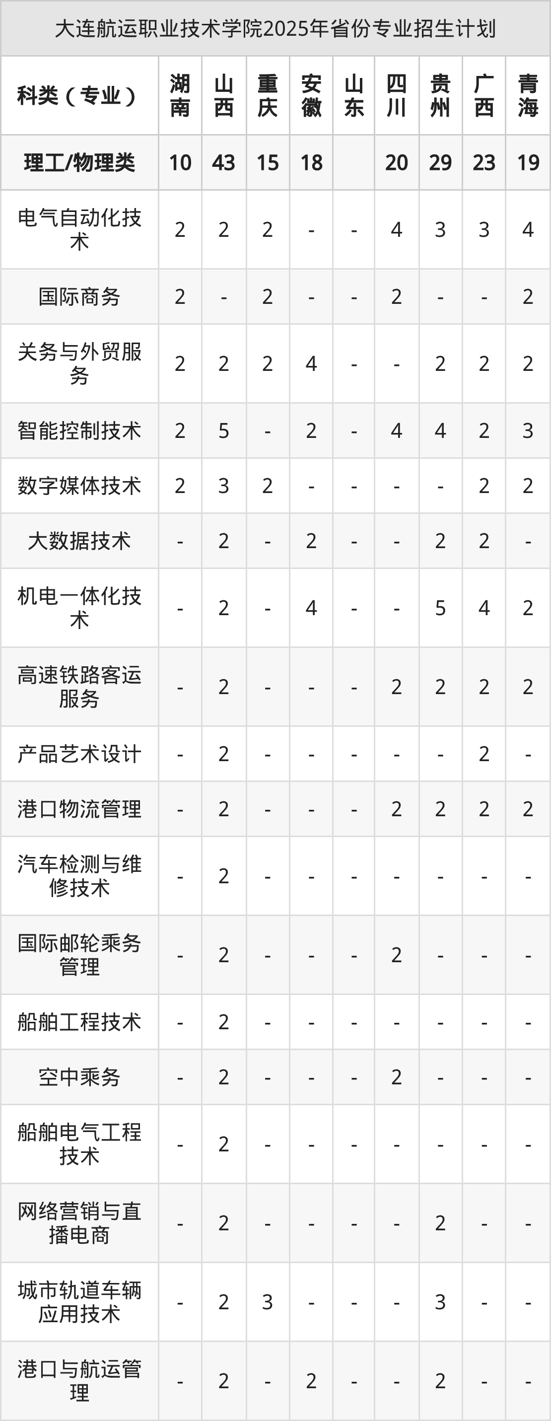 2026年大连航运职业技术学院专科招生计划待公布,下面附上2025年数据,暂供参考: