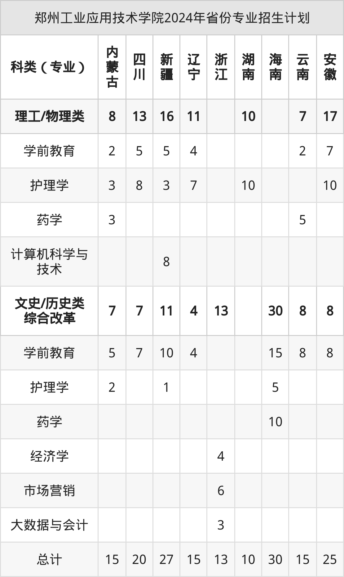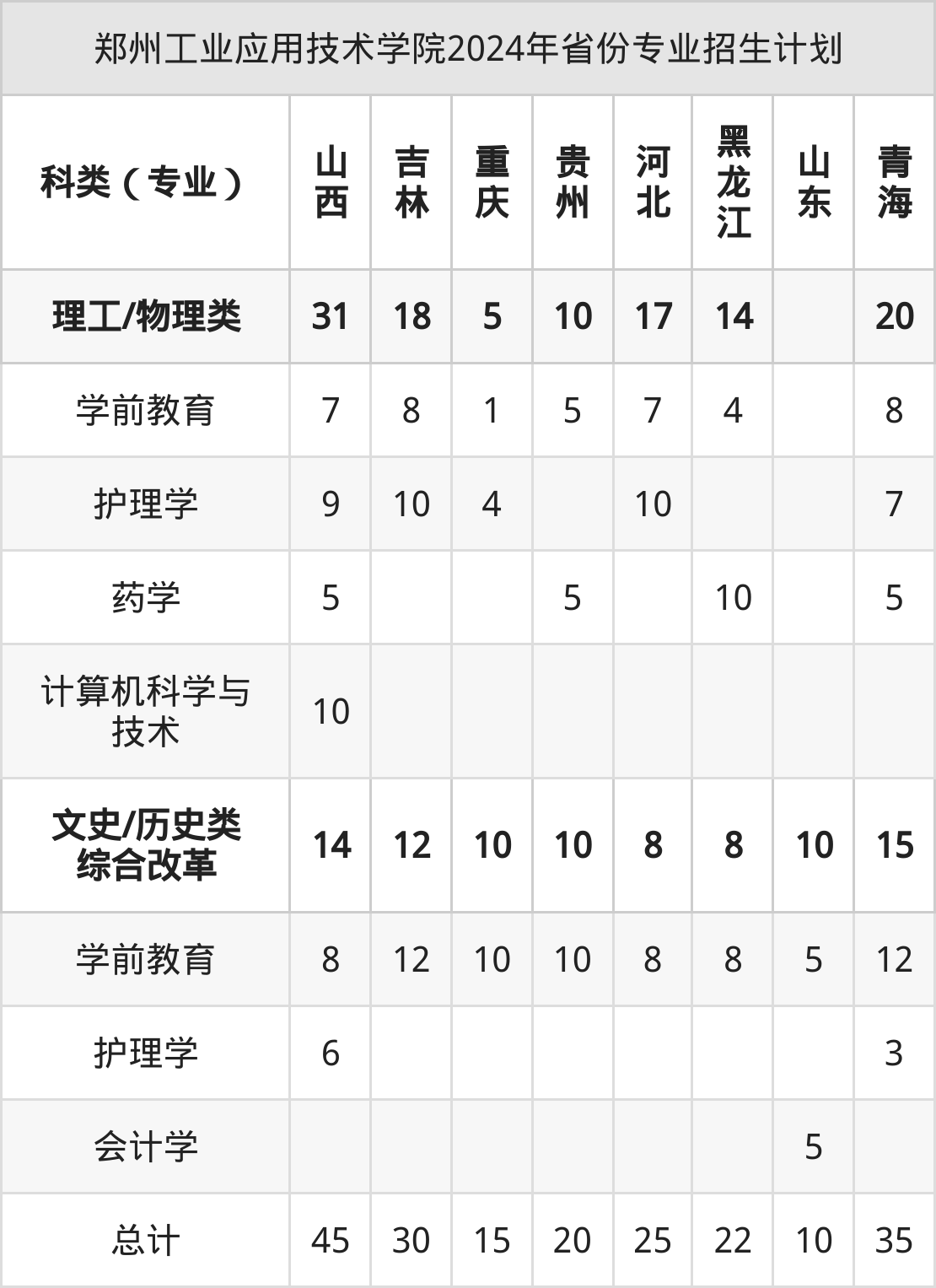 而各省份的招生计划数为内蒙古15人,辽宁15人,陕西25人,宁夏30人,山西45人等。